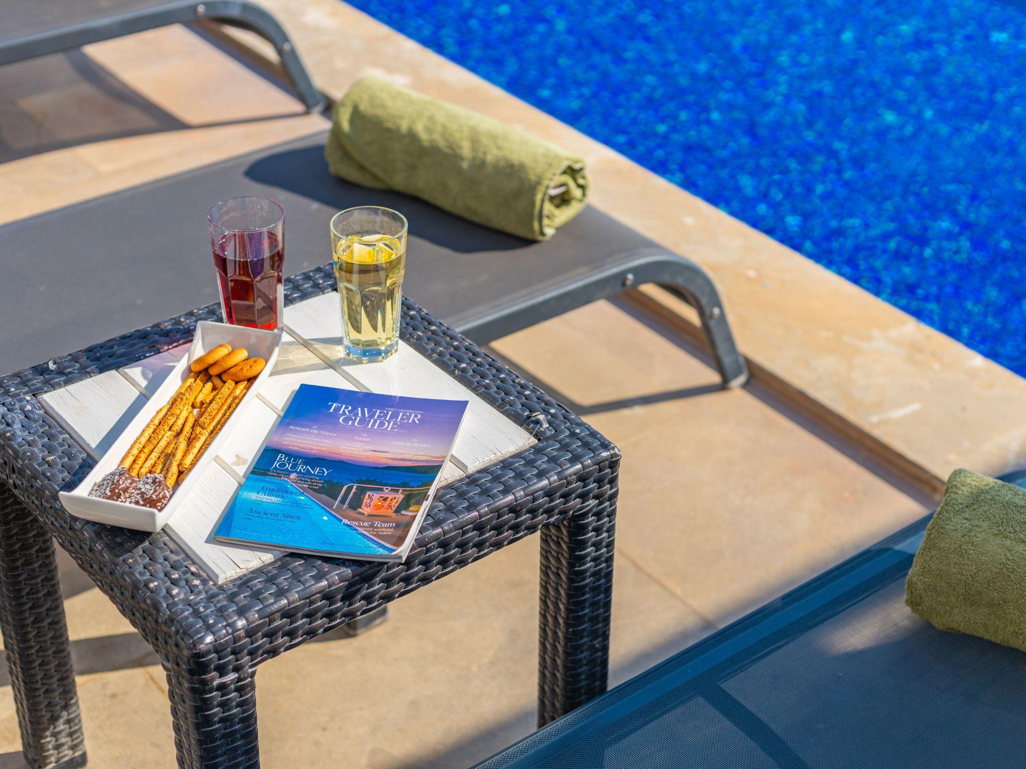 Innen bietet das Haus alles, was Sie für einen komfortablen Aufenthalt benötigen. Jedes der sechs Schlafzimmer verfügt über ein eigenes Badezimmer, was maximale Privatsphäre für alle Gäste sichert. Die Klimaanlage in allen Räumen sorgt für angenehme Temperaturen, unabhängig von der Außentemperatur. Für Ihre Bequemlichkeit sind eine Waschmaschine, ein Gasherd, eine Kaffeemaschine, eine Spülmaschine und ein Wasserkocher vorhanden. Dank Solarenergie ist die Unterkunft zudem energieeffizient gestaltet.