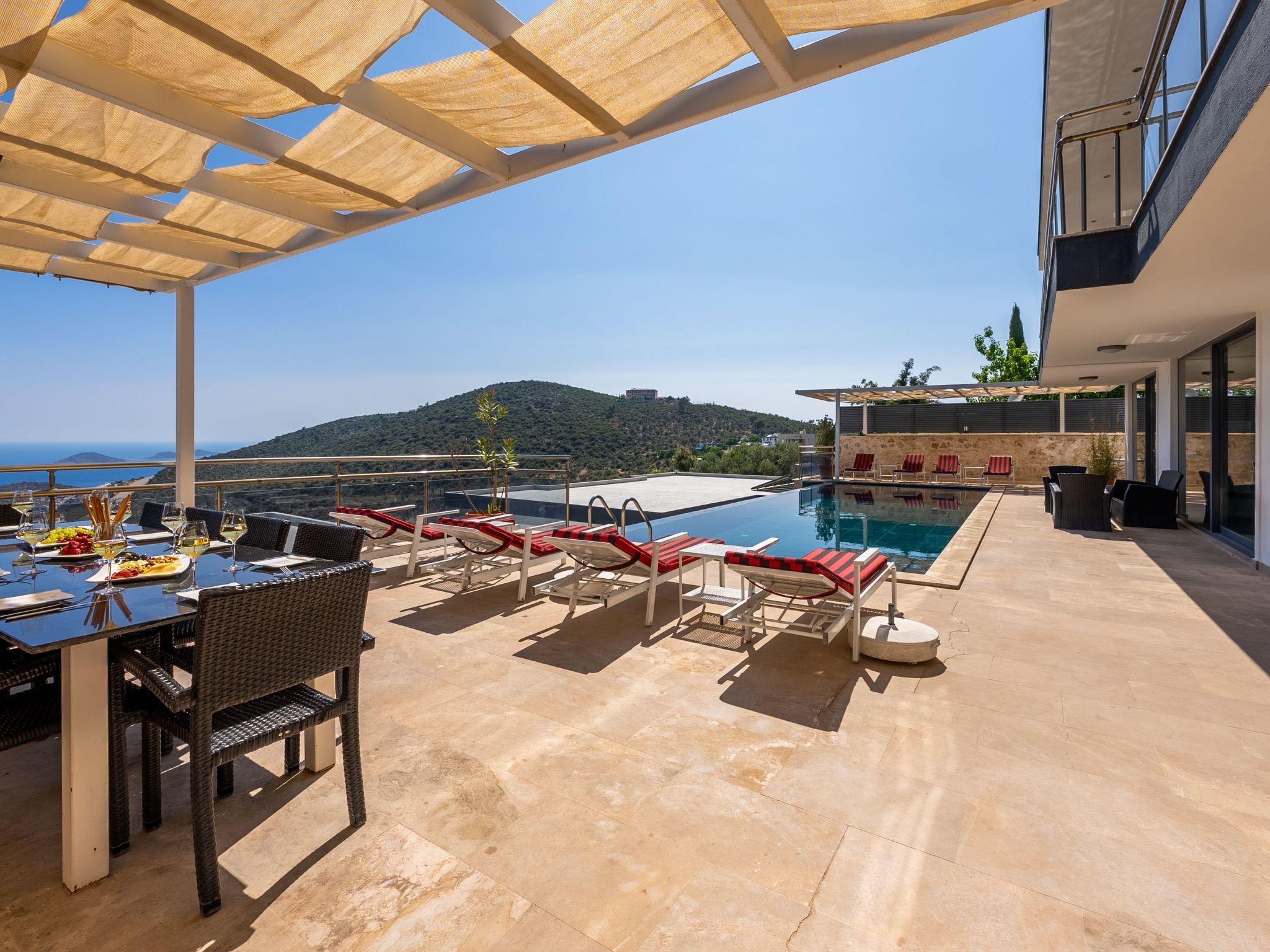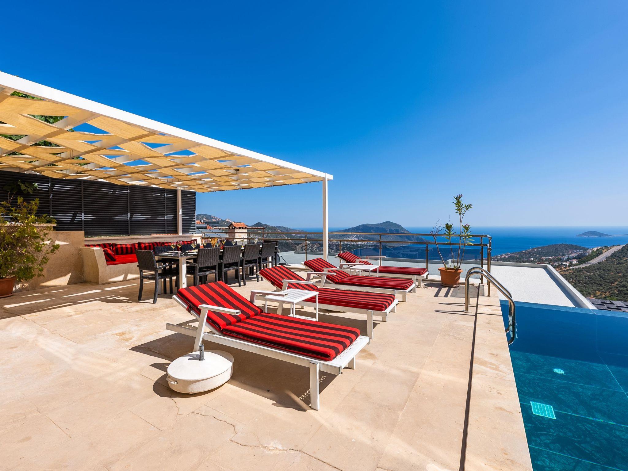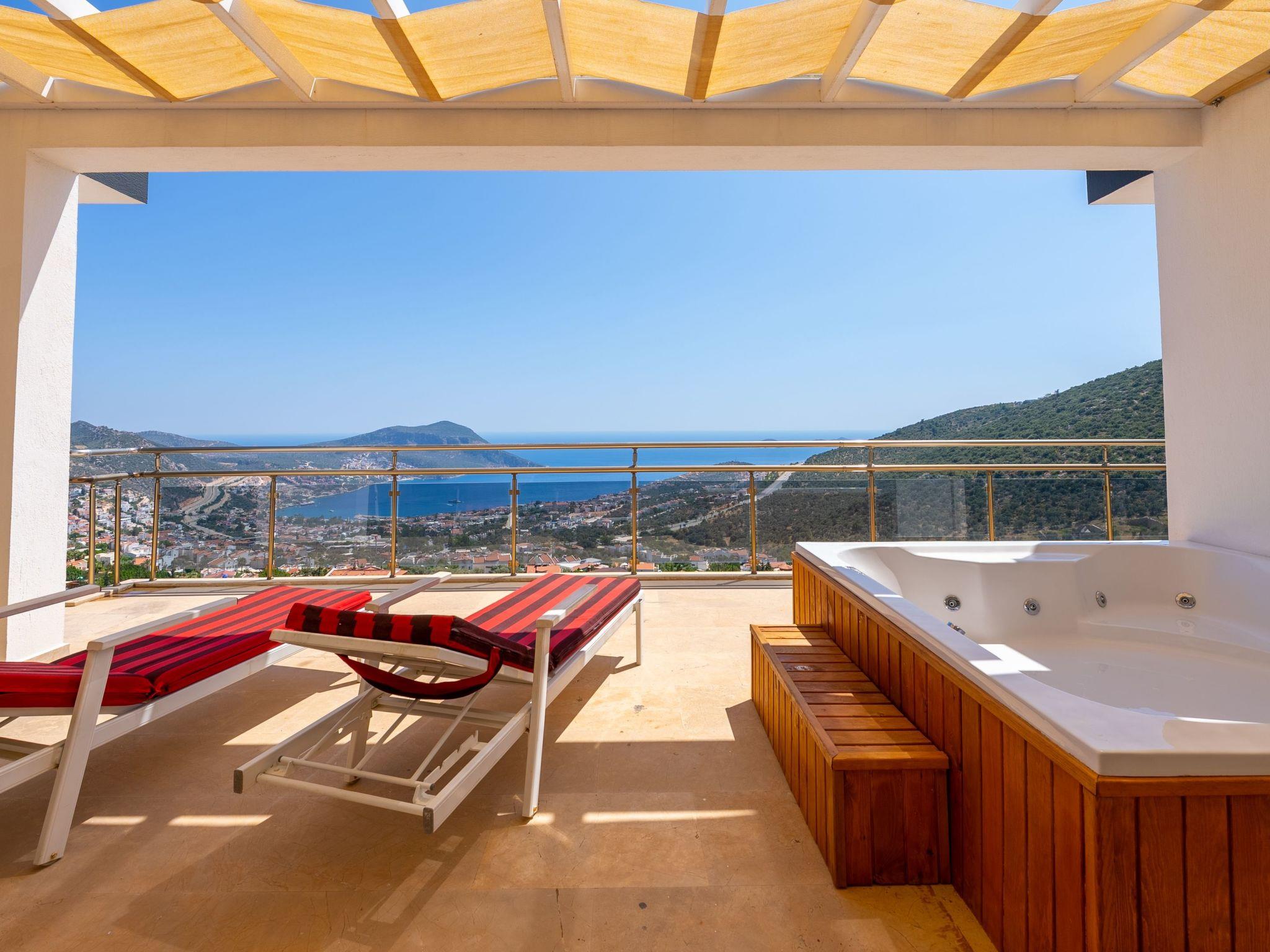 Entdecken Sie das perfekte Ferienhaus für Ihren nächsten Urlaub in Kalkan, Anatolien. Mit genügend Platz für bis zu 12 Personen ist dieses freistehende Ferienhaus der ideale Ort für große Familien oder Freundesgruppen. Genießen Sie in dieser Unterkunft nicht nur den Komfort und die Privatsphäre, sondern auch den atemberaubenden Blick auf das Meer direkt von den Zimmern aus.