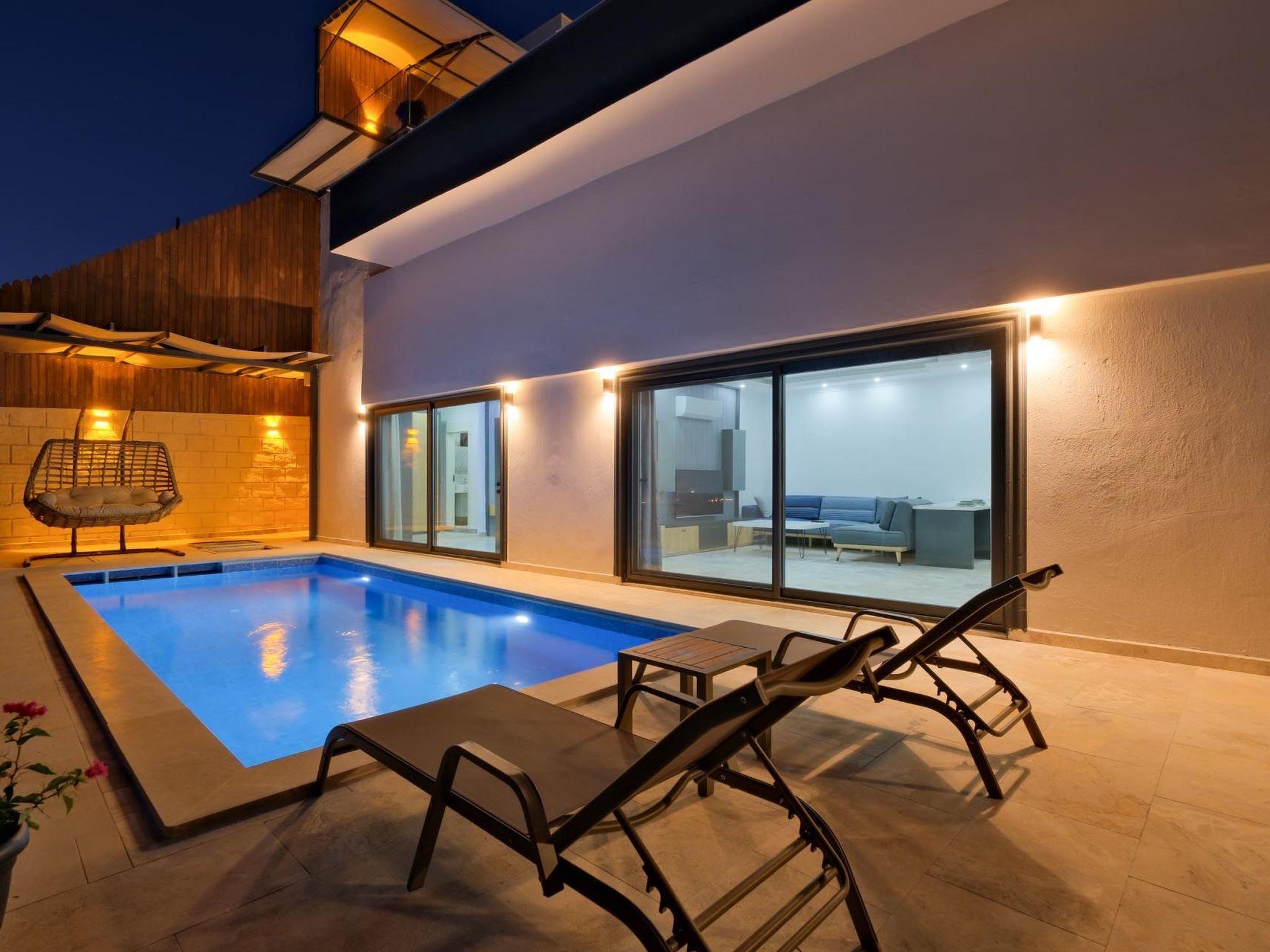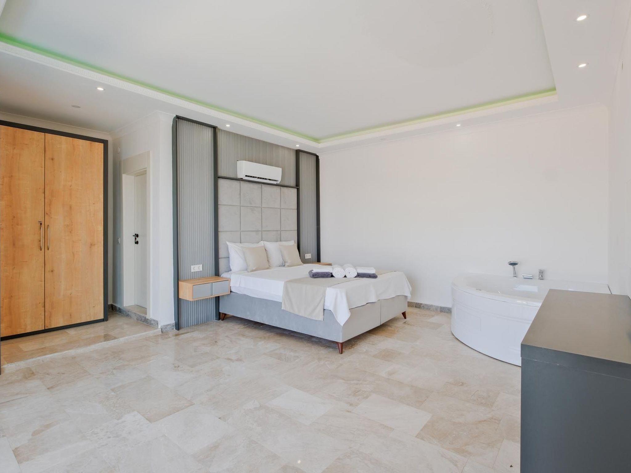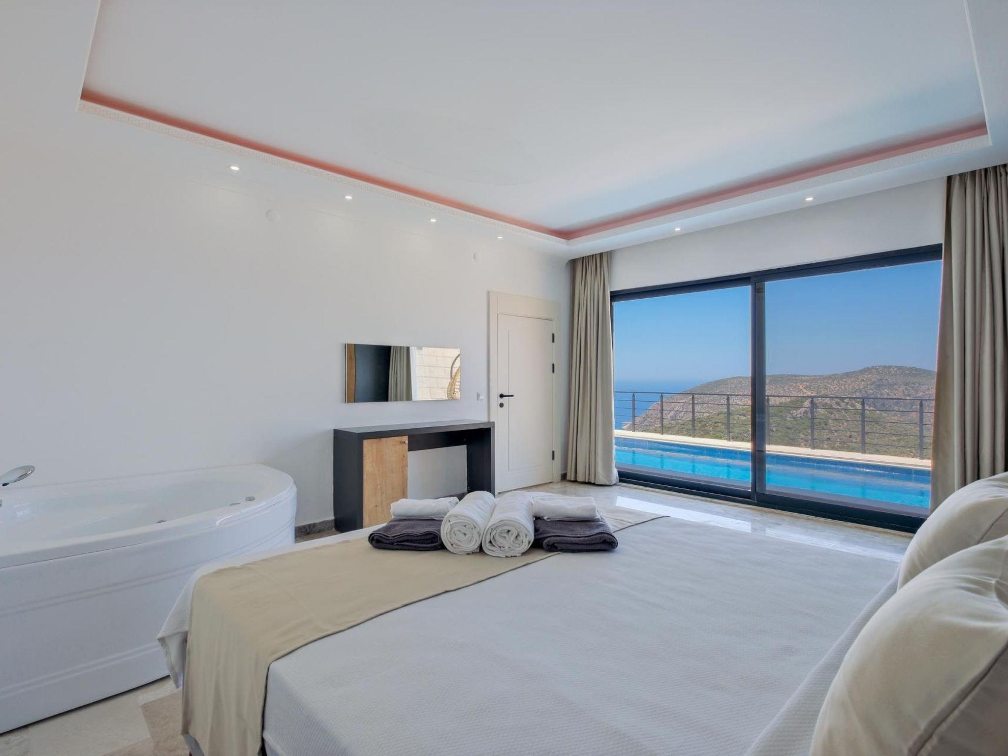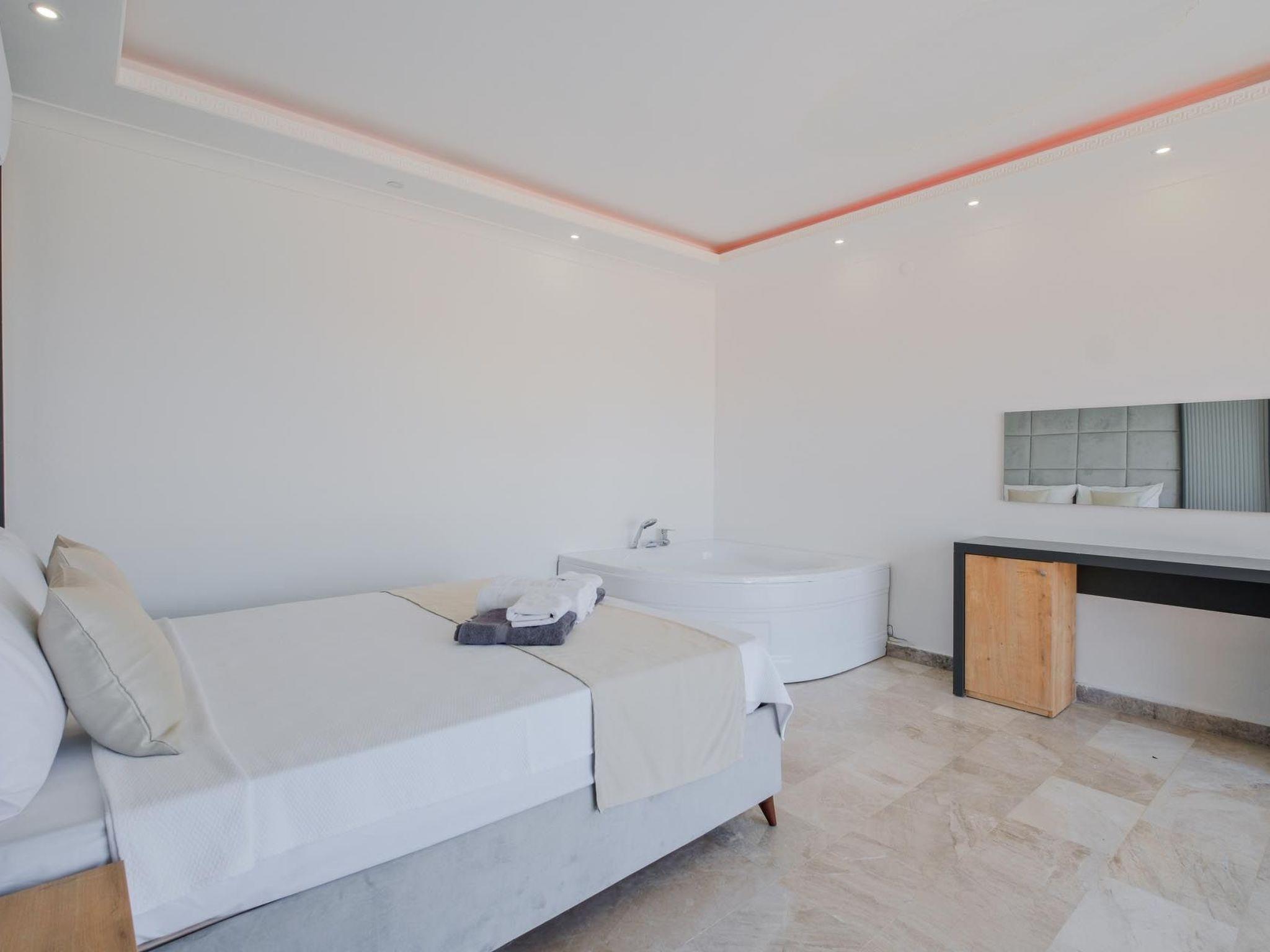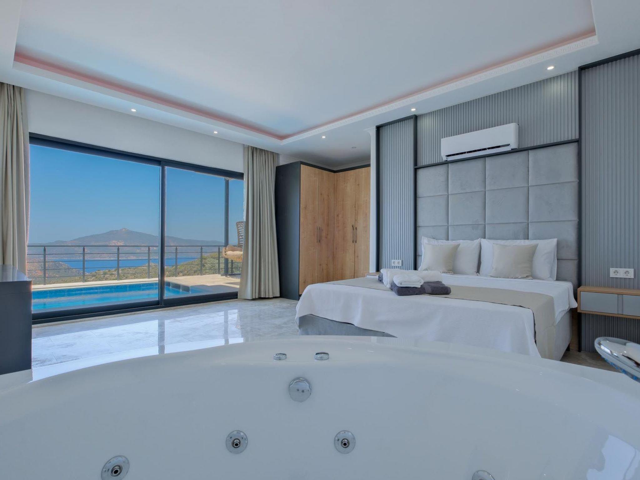 Das romantische Ambiente der Villa ist perfekt auf die Bedürfnisse frisch verheirateter Paare abgestimmt. Elegante Einrichtung, gemütliche Rückzugsorte und romantische Beleuchtung schaffen eine einladende und intime Atmosphäre. Ein besonderes Highlight ist der private Whirlpool, in dem Sie entspannen und die beeindruckende Aussicht genießen können. Das luxuriöse Schlafzimmer verfügt über ein Kingsize-Bett mit hochwertiger Bettwäsche, während das großzügige Badezimmer mit einer freistehenden Badewanne und einer Regendusche ausgestattet ist. Die voll ausgestattete Küche lädt zu kulinarischen Abenteuern ein und der offene Wohnbereich mit Panoramafenstern bietet eine herrliche Aussicht. Die private Terrasse mit komfortablen Sonnenliegen sowie kostenloses WLAN und Klimaanlage runden das luxuriöse Angebot ab.