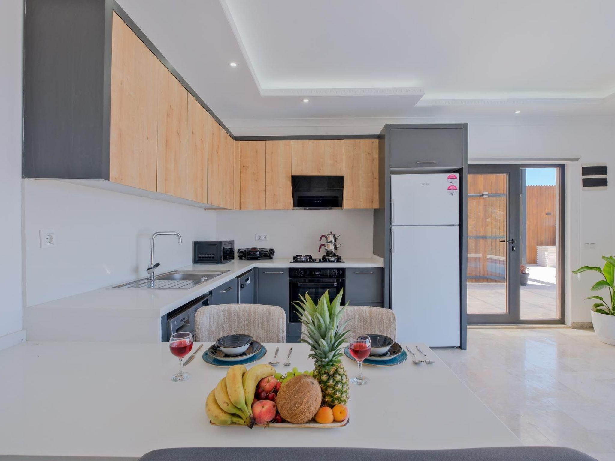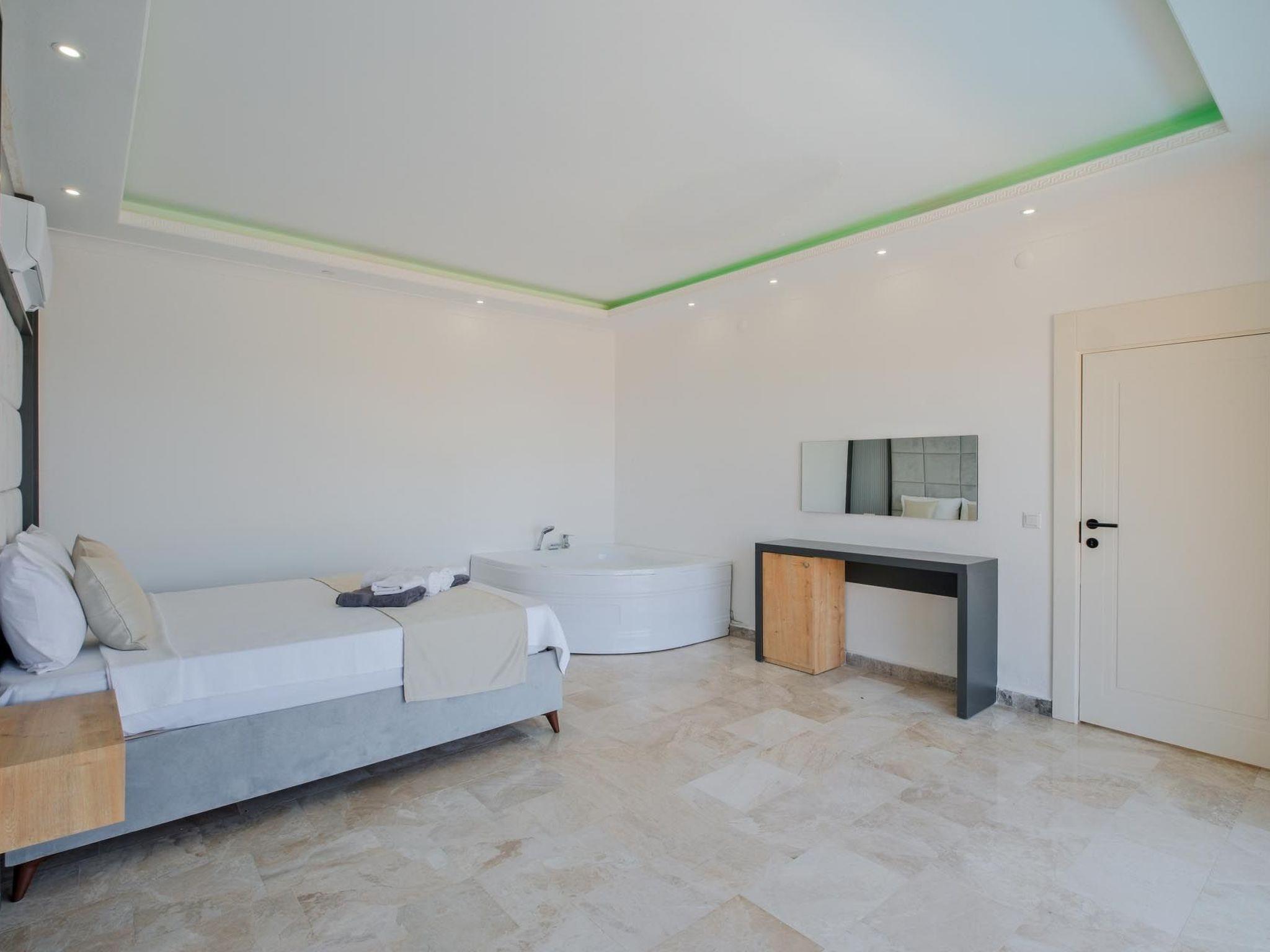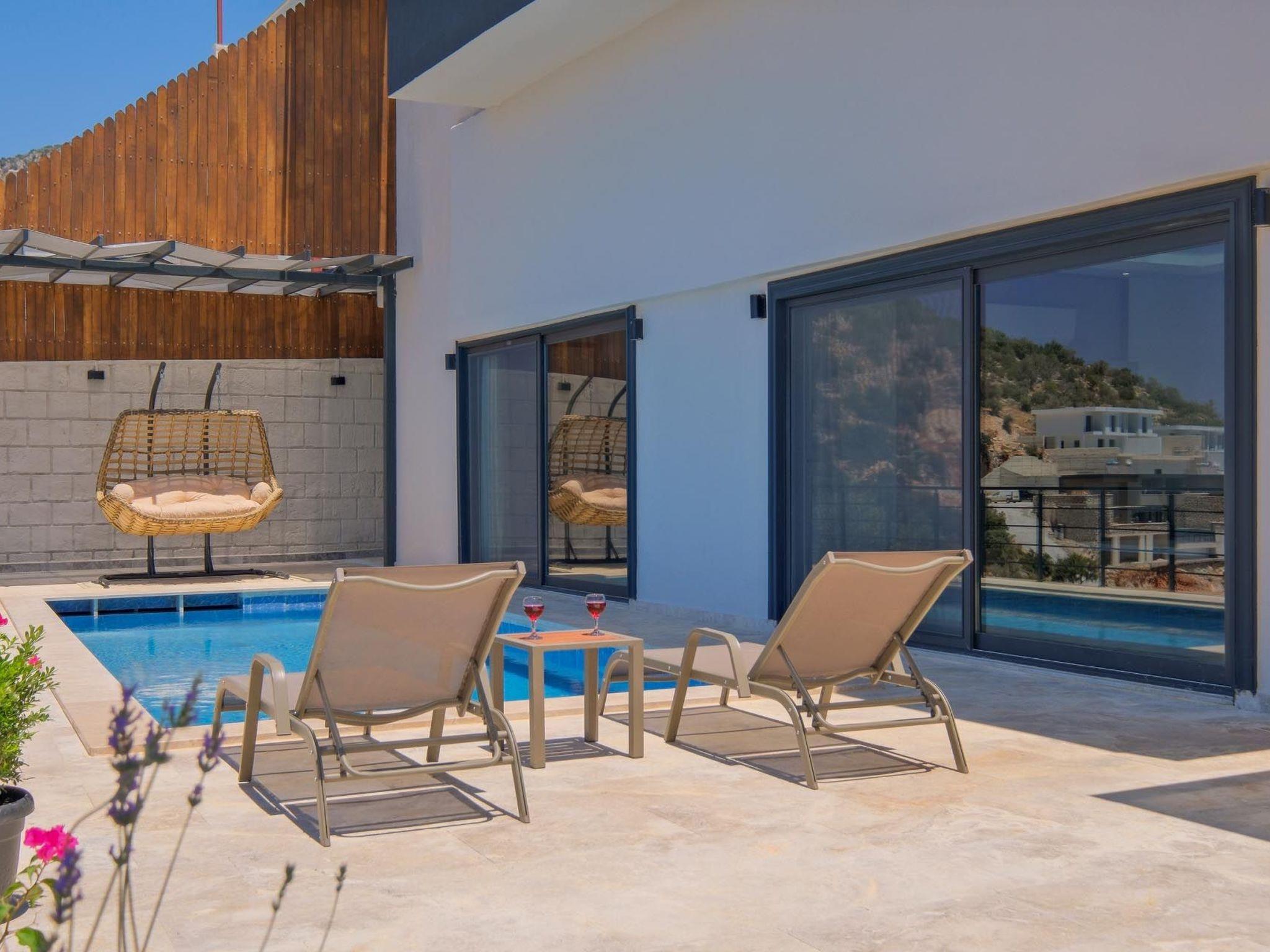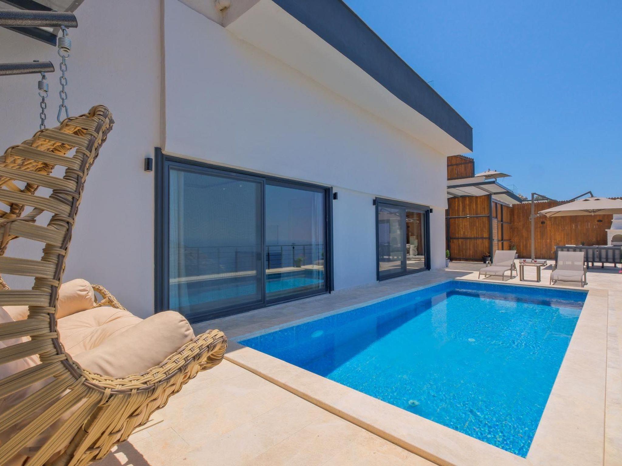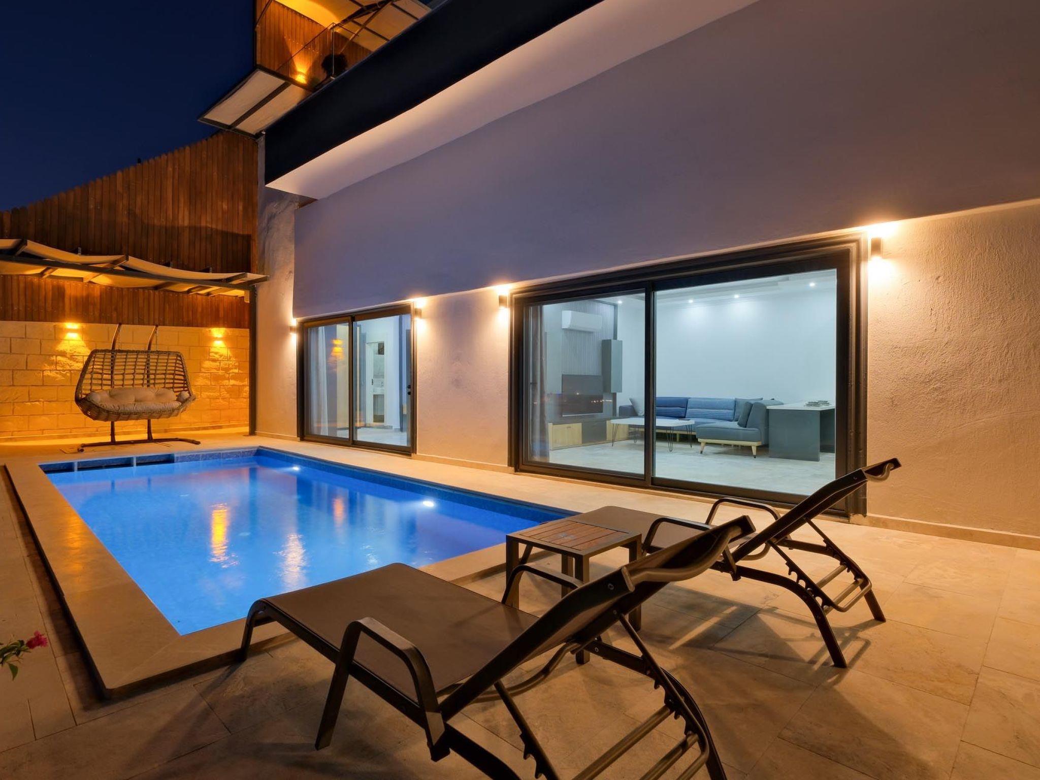 Das romantische Ambiente der Villa ist perfekt auf die Bedürfnisse frisch verheirateter Paare abgestimmt. Elegante Einrichtung, gemütliche Rückzugsorte und romantische Beleuchtung schaffen eine einladende und intime Atmosphäre. Ein besonderes Highlight ist der private Whirlpool, in dem Sie entspannen und die beeindruckende Aussicht genießen können. Das luxuriöse Schlafzimmer verfügt über ein Kingsize-Bett mit hochwertiger Bettwäsche, während das großzügige Badezimmer mit einer freistehenden Badewanne und einer Regendusche ausgestattet ist. Die voll ausgestattete Küche lädt zu kulinarischen Abenteuern ein und der offene Wohnbereich mit Panoramafenstern bietet eine herrliche Aussicht. Die private Terrasse mit komfortablen Sonnenliegen sowie kostenloses WLAN und Klimaanlage runden das luxuriöse Angebot ab.