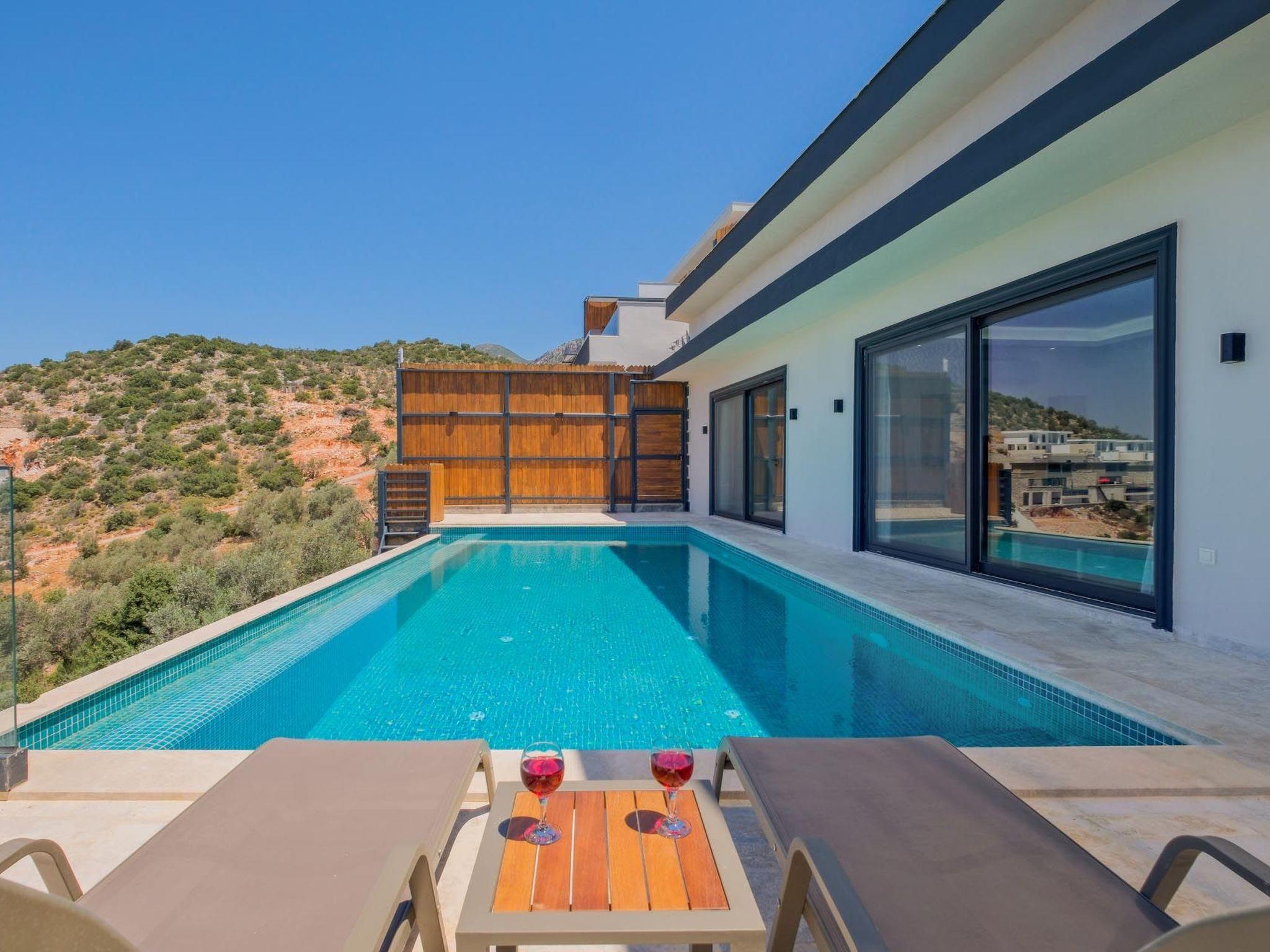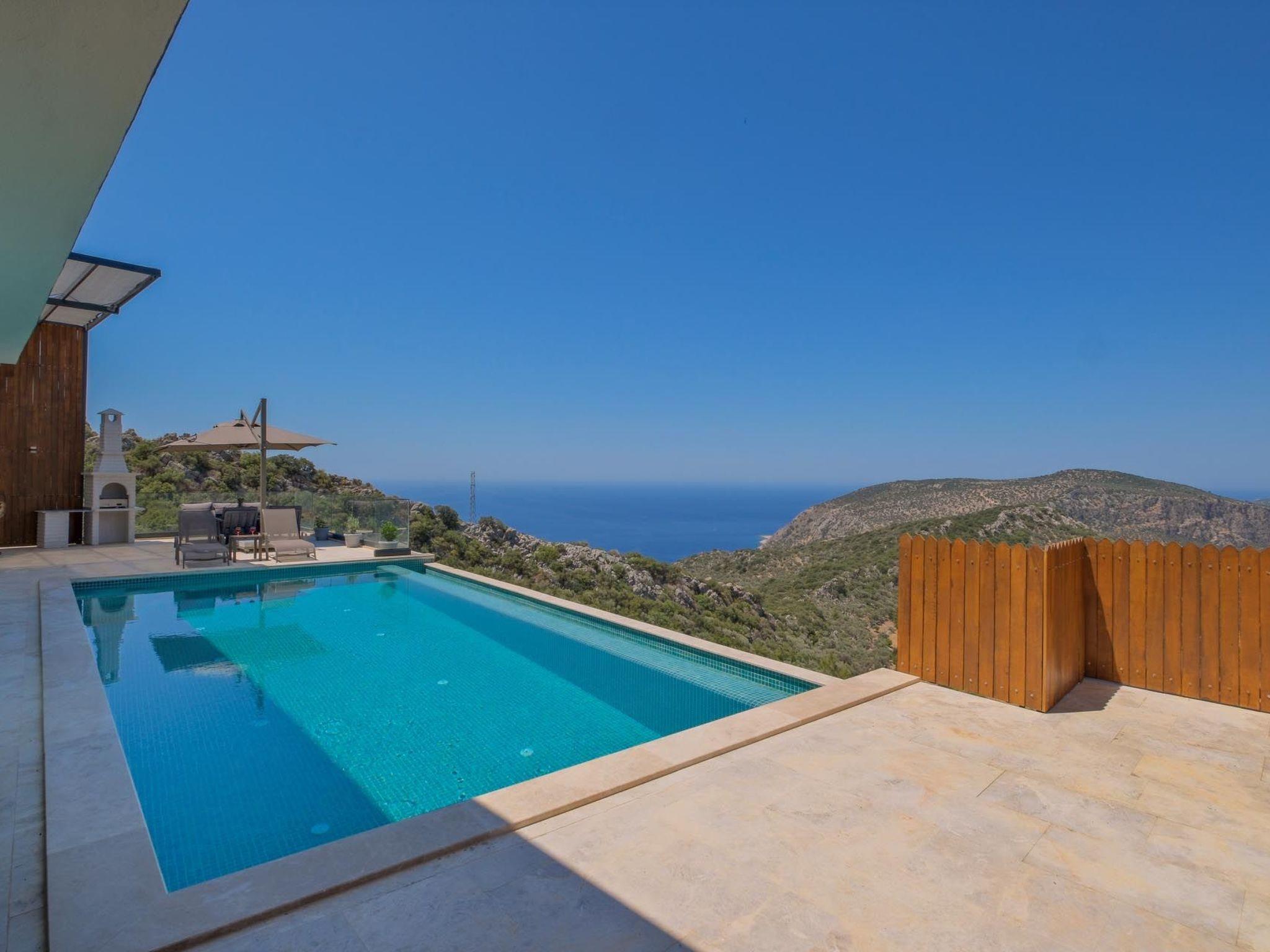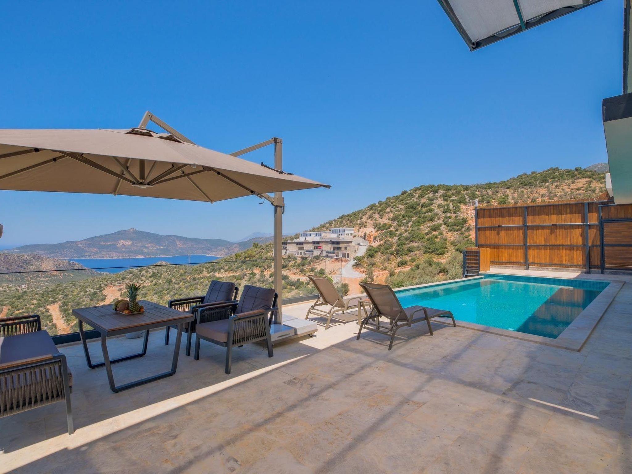 Erleben Sie den ultimativen Luxus und Komfort in unserer exquisiten Villa, die speziell für Paare und romantische Flitterwochen konzipiert ist. Diese idyllische Oase bietet Platz für zwei Personen und besticht durch ihre außergewöhnliche Lage sowie atemberaubende Aussichten. Der glitzernde Infinitypool lädt dazu ein, in sein kristallklares Wasser einzutauchen und die spektakuläre Aussicht zu genießen, die das Gefühl vermittelt, direkt mit dem Horizont zu verschmelzen. Die Villa bietet eine unvergleichliche Aussicht auf majestätische Berge und das tiefblaue Meer, die Sie vom Pool, der Terrasse oder den Wohnbereichen aus bewundern können.