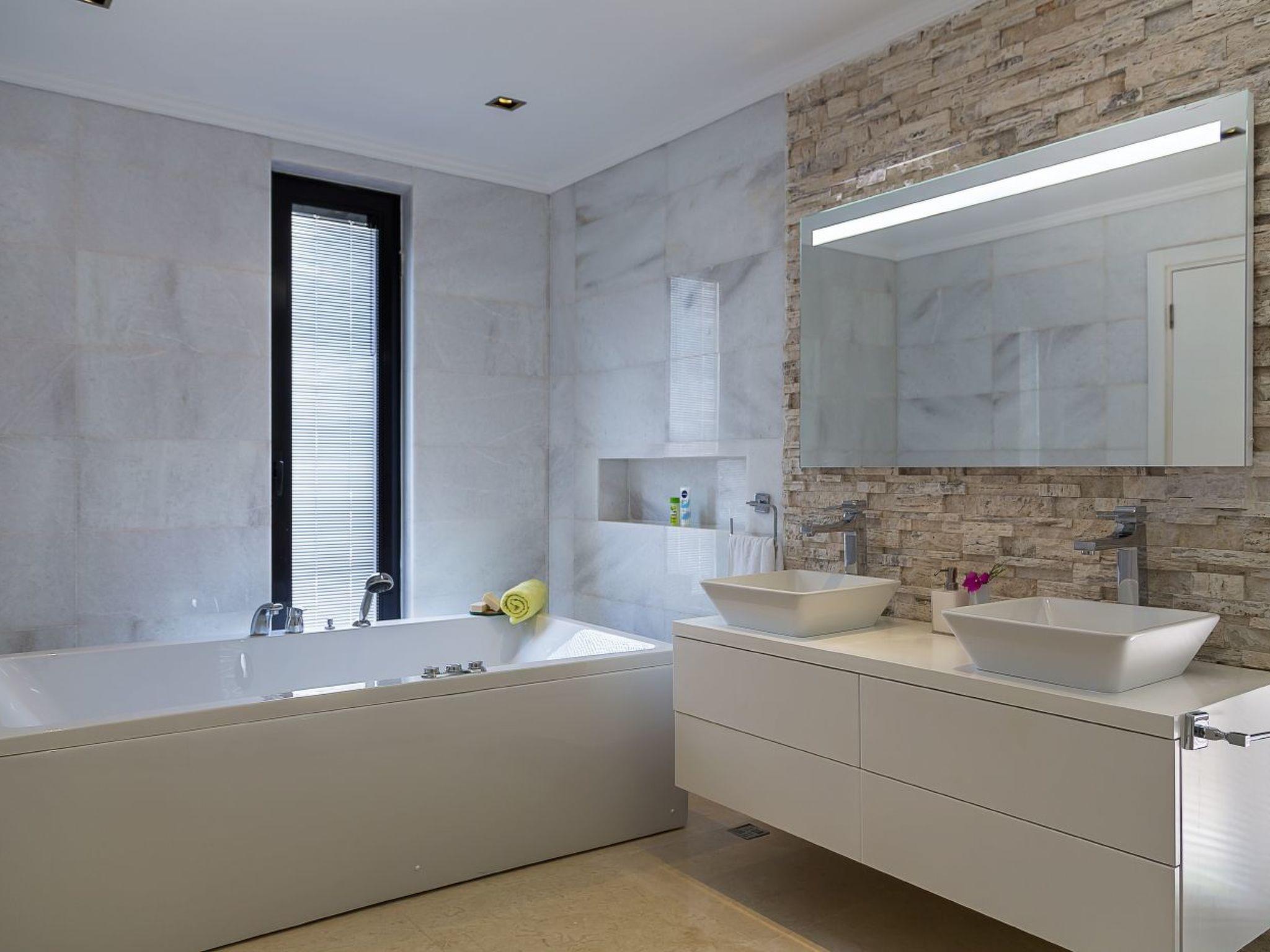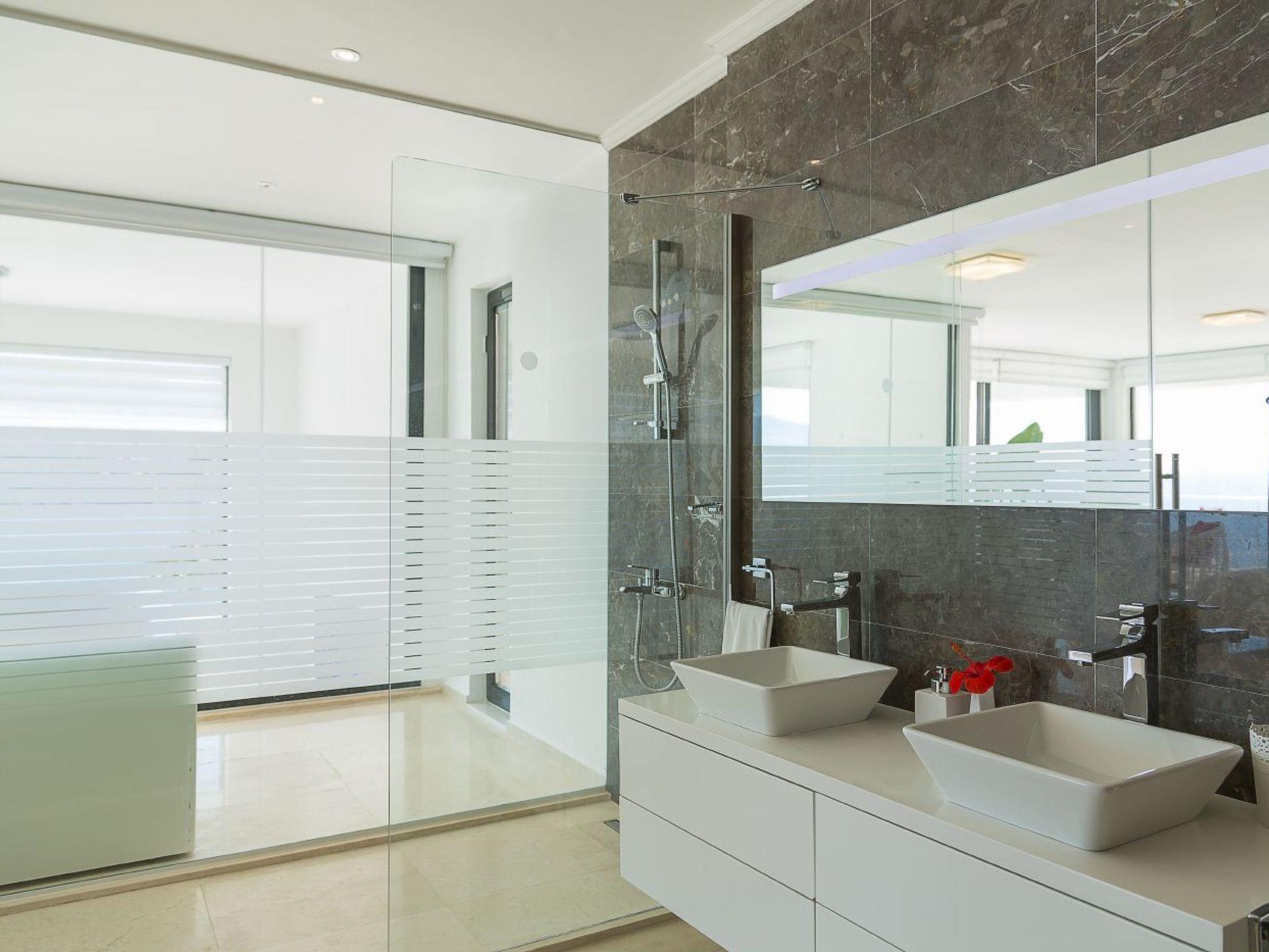 Im Inneren des Hauses sorgt die durchdachte Ausstattung mit Annehmlichkeiten wie Klimaanlage in allen Bereichen, Waschmaschine zur alleinigen Nutzung, Gasherd, Kaffeemaschine, Spülmaschine sowie Wasserkocher für einen sorgenfreien Aufenthalt. Jedes der vier Badezimmer ist gut ausgestattet, um den Bedürfnissen aller Gäste gerecht zu werden, sei es für eine erfrischende Dusche am Morgen oder ein entspanntes Bad am Abend.