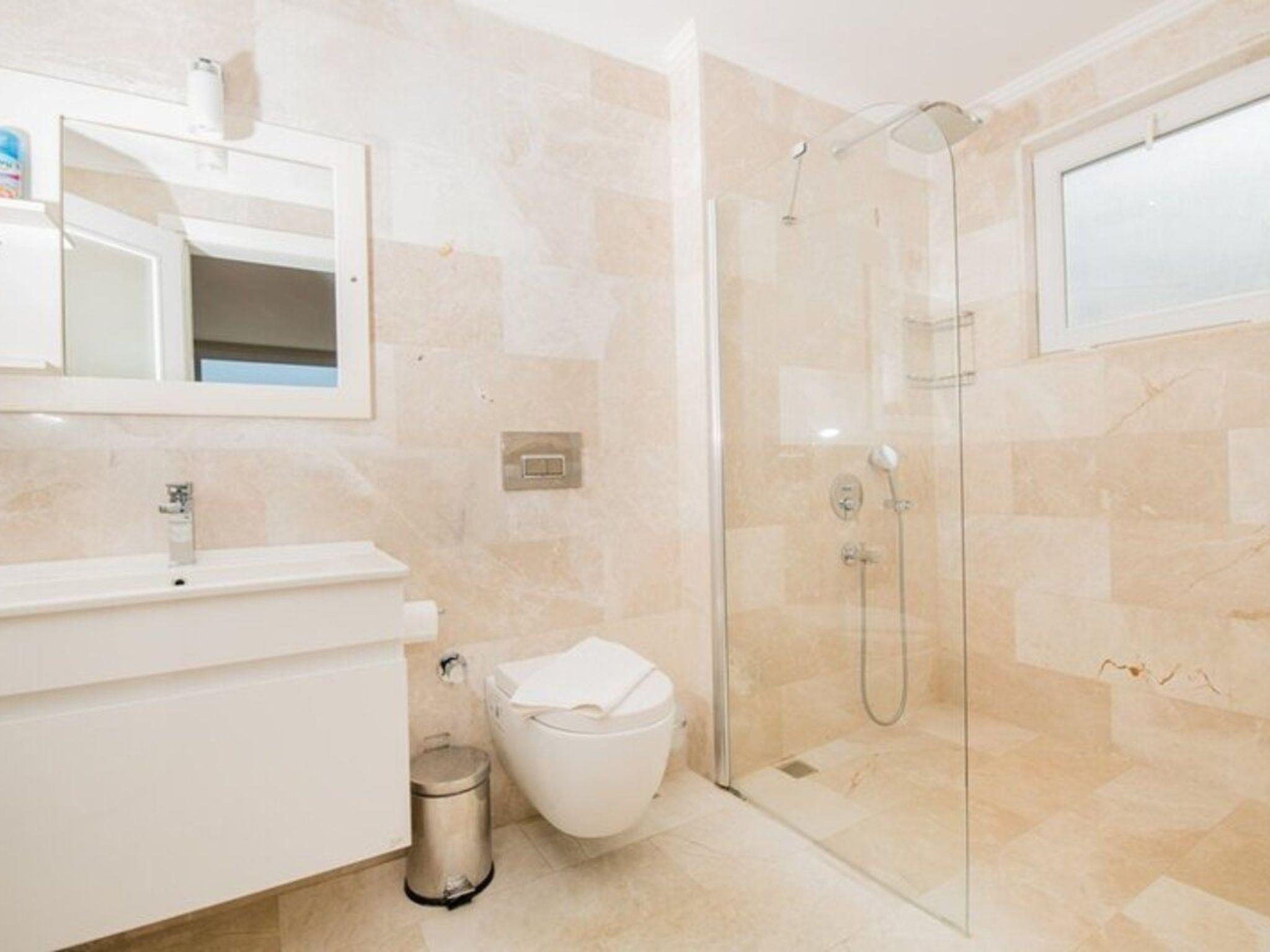 Im Inneren des Hauses erwartet Sie eine vollausgestattete Umgebung, die sicherstellt, dass Sie während Ihres Aufenthalts nichts vermissen werden. Die vorhandene Klimaanlage sorgt in allen Räumen für angenehme Temperaturen, während der Gasherd, die Spülmaschine und der Wasserkocher die Selbstversorgung zum Kinderspiel machen. Eine Waschmaschine steht ebenfalls zu Ihrer alleinigen Nutzung bereit, was den Komfort während Ihres Aufenthalts noch erhöht. Drei Schlafzimmer bieten genügend Privatsphäre für alle Gäste, und die drei Badezimmer, ausgestattet mit Dusche und Badewanne, runden das Angebot ab.