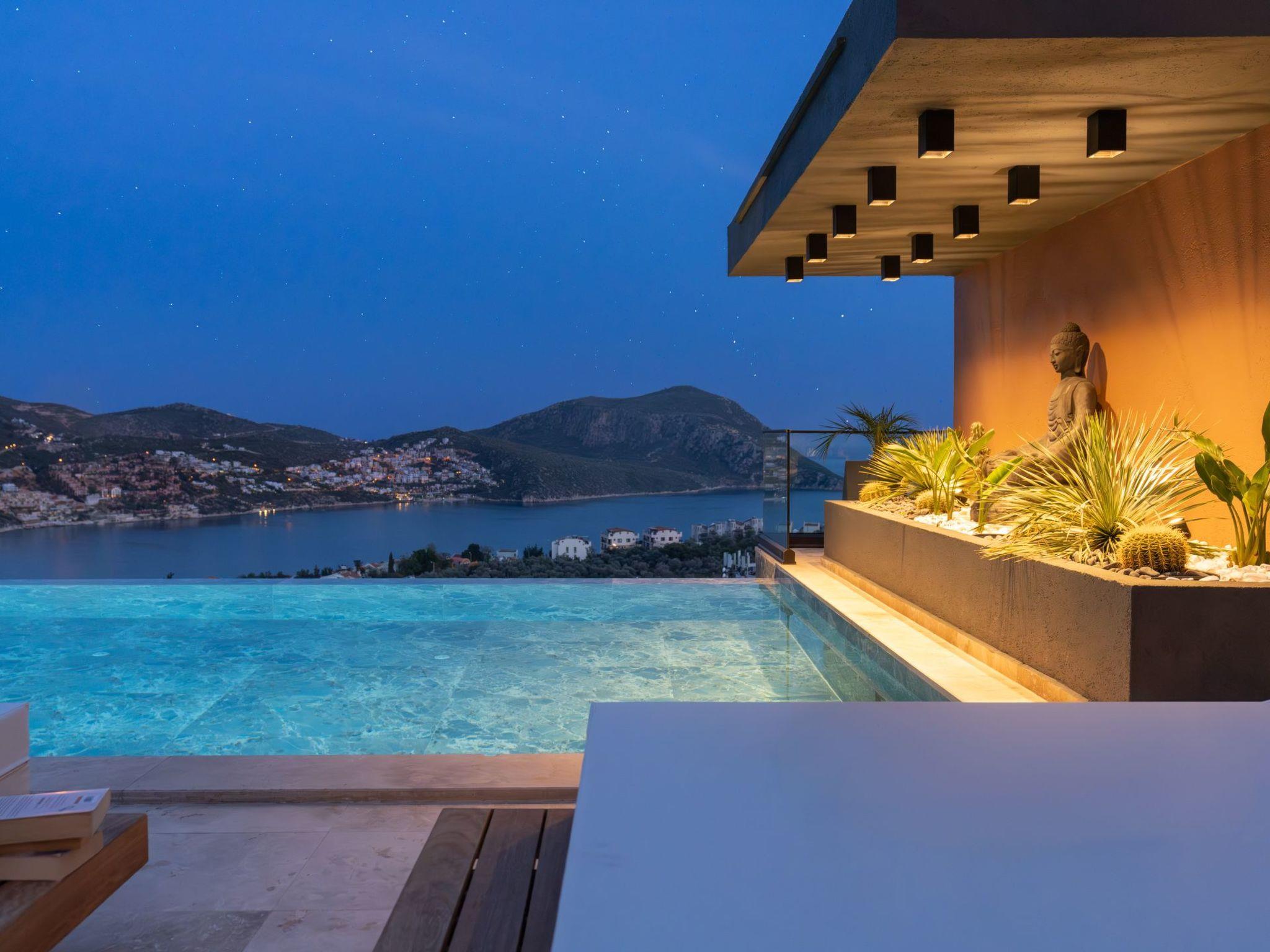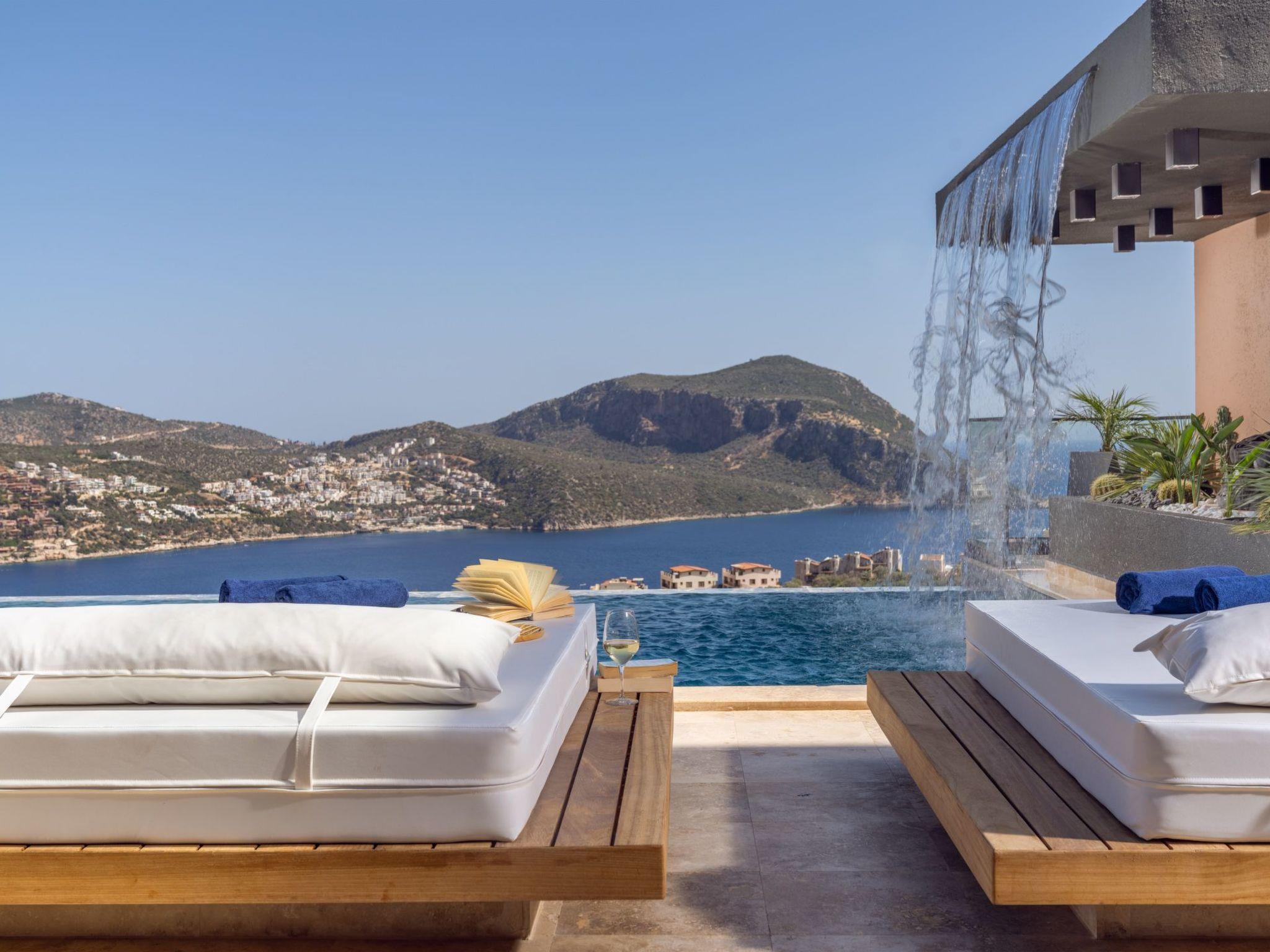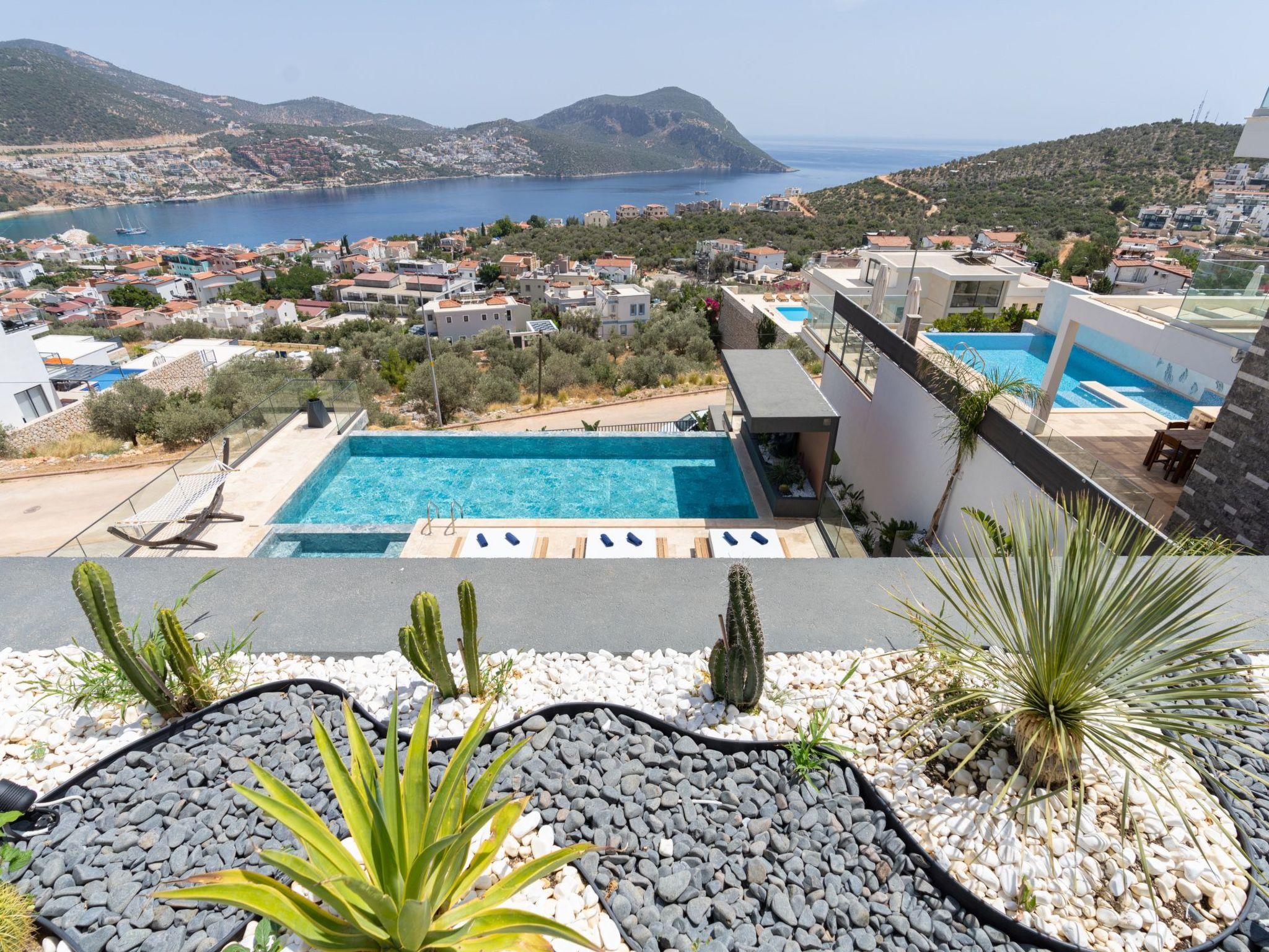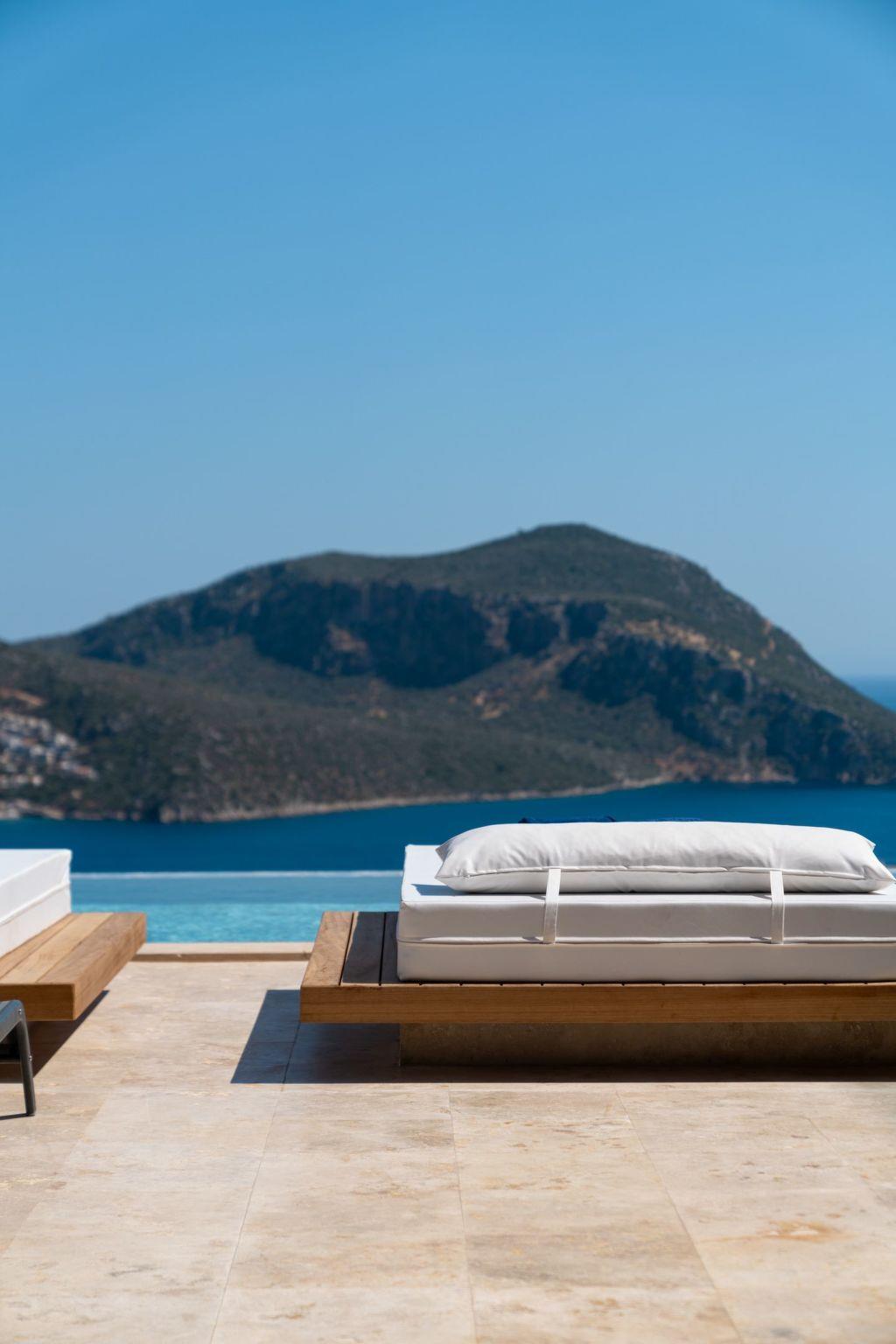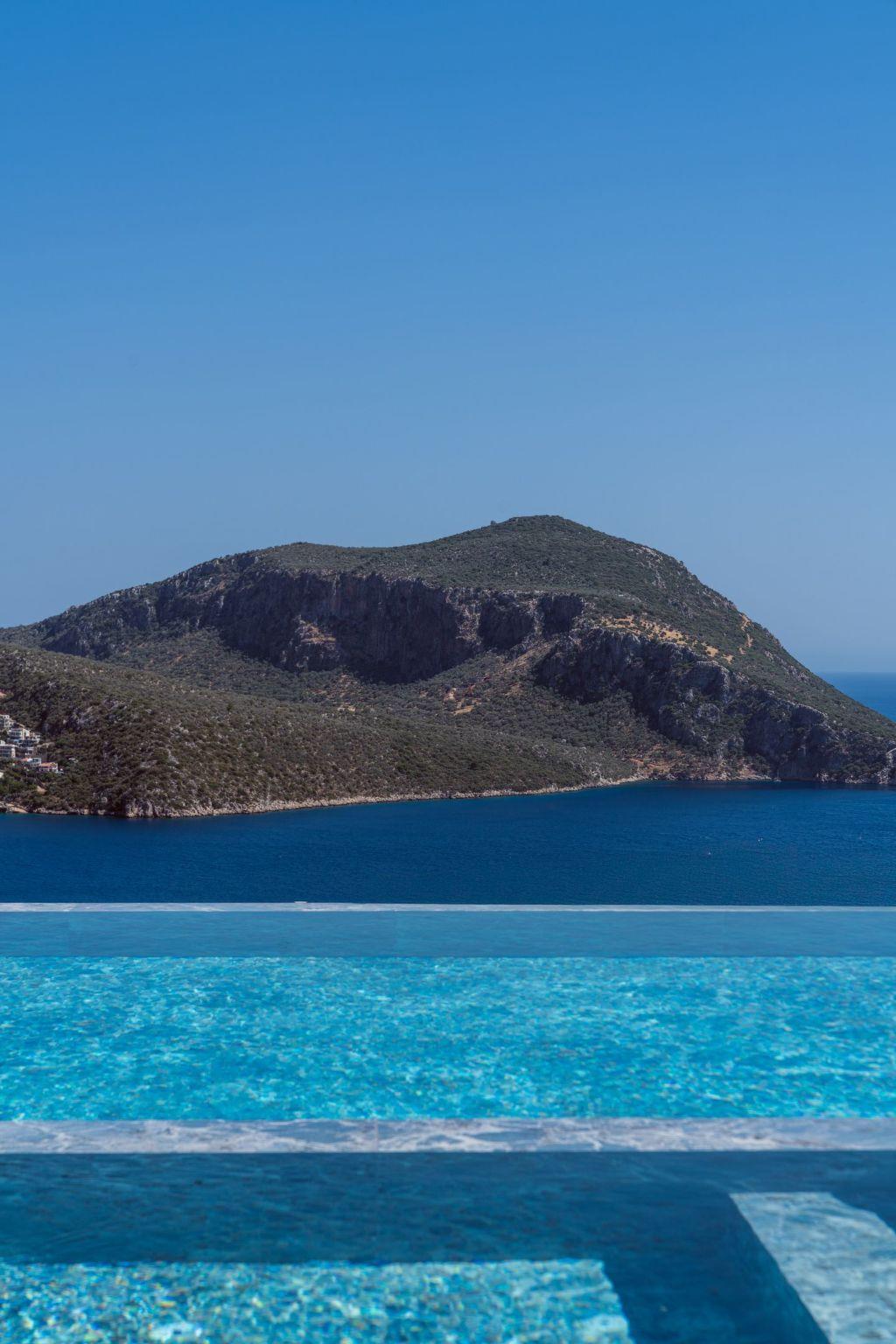 Infinitypool mit Meerblick: Tauchen Sie ein in den glitzernden Infinitypool, der einen nahtlosen Übergang zum endlosen Horizont und dem azurblauen Meer bietet. Genießen Sie die atemberaubende Aussicht auf die malerische Bucht von Kalkan, während Sie sich im erfrischenden Wasser entspannen.