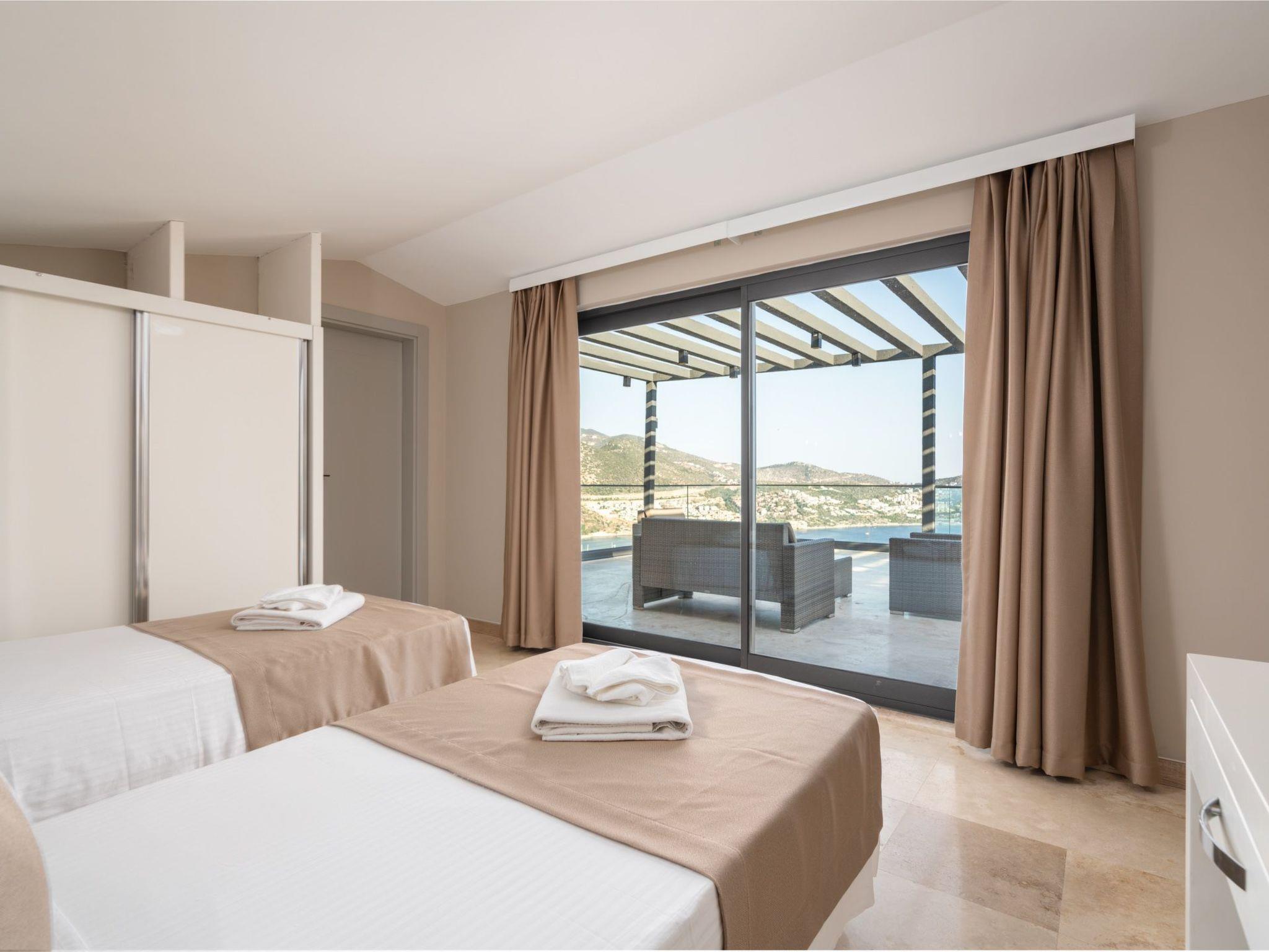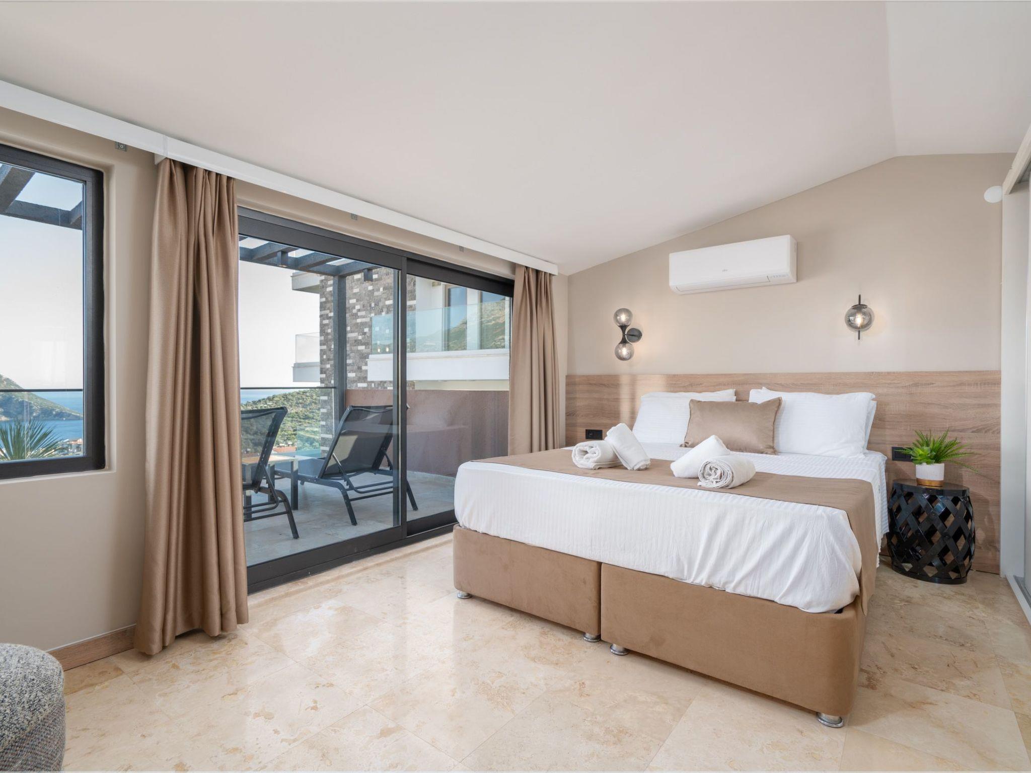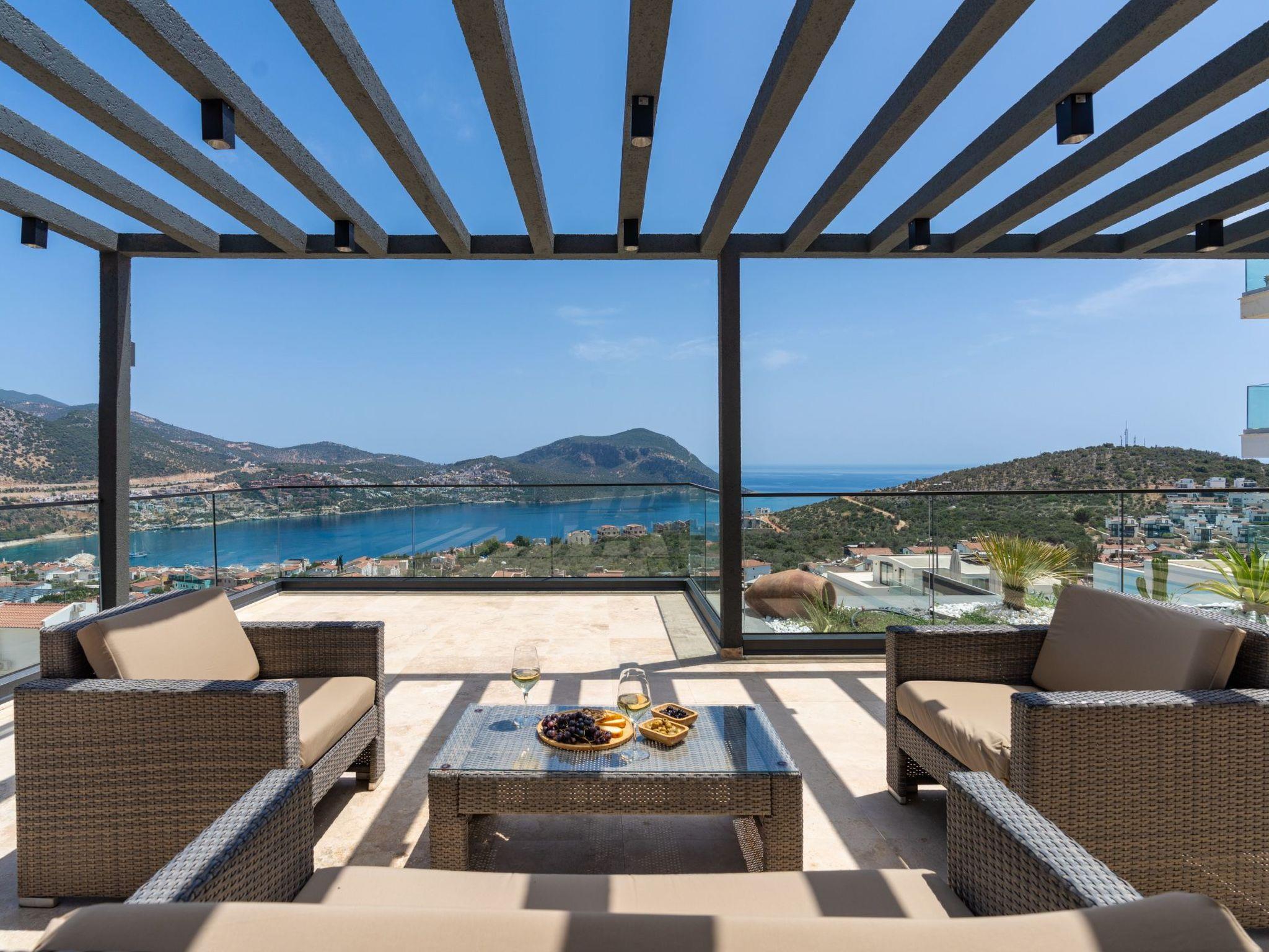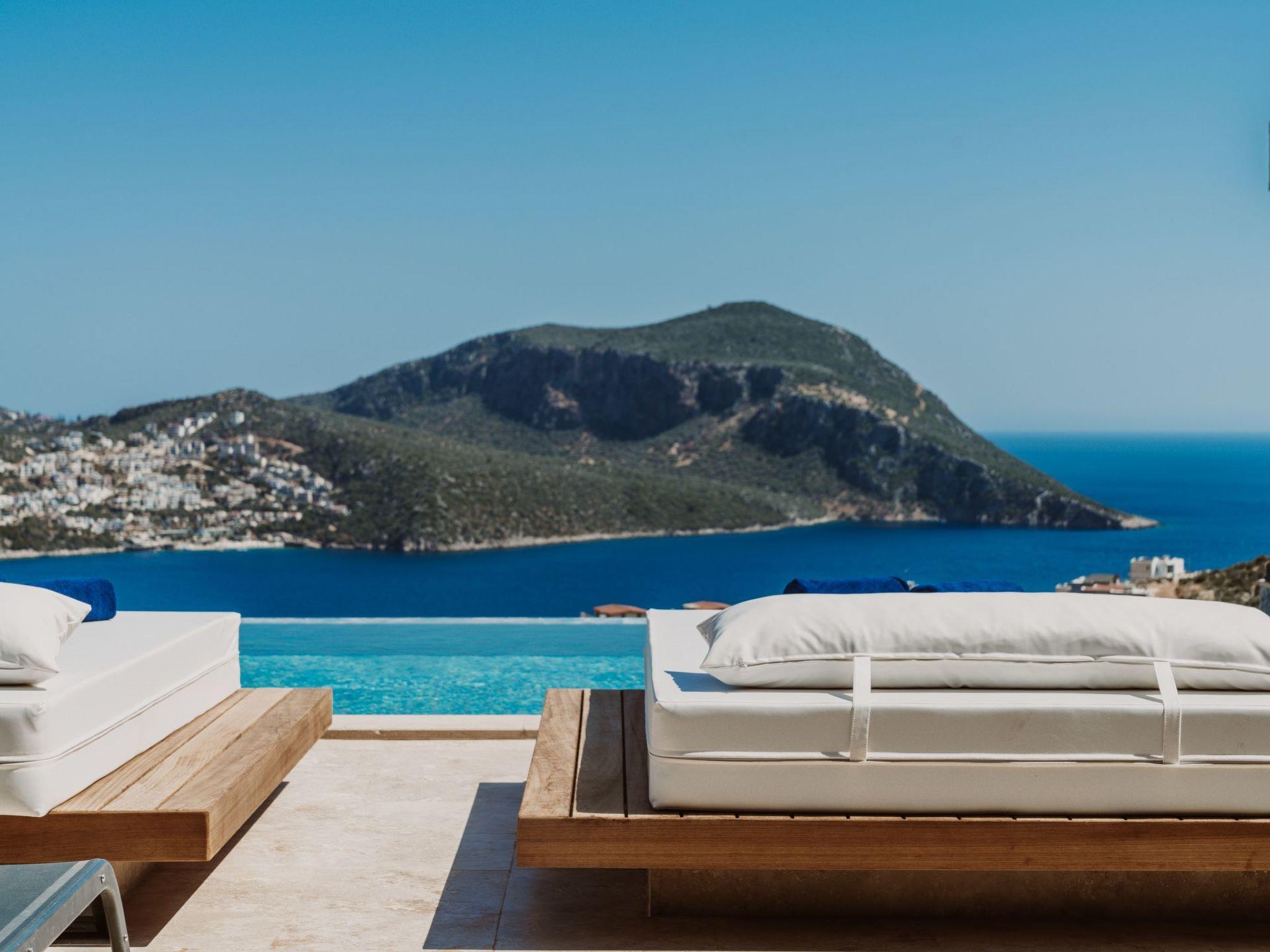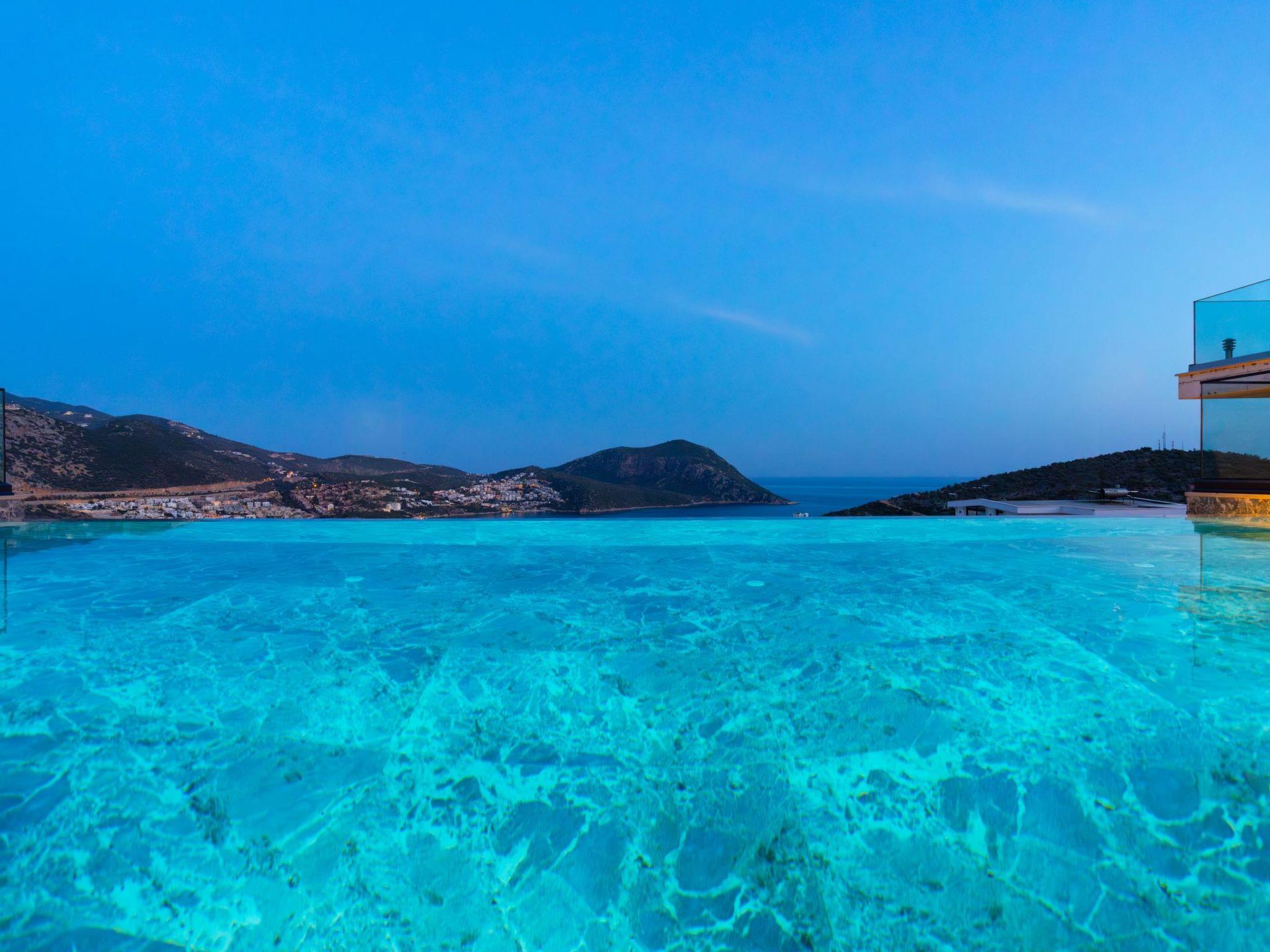 Infinitypool mit Meerblick: Tauchen Sie ein in den glitzernden Infinitypool, der einen nahtlosen Übergang zum endlosen Horizont und dem azurblauen Meer bietet. Genießen Sie die atemberaubende Aussicht auf die malerische Bucht von Kalkan, während Sie sich im erfrischenden Wasser entspannen.