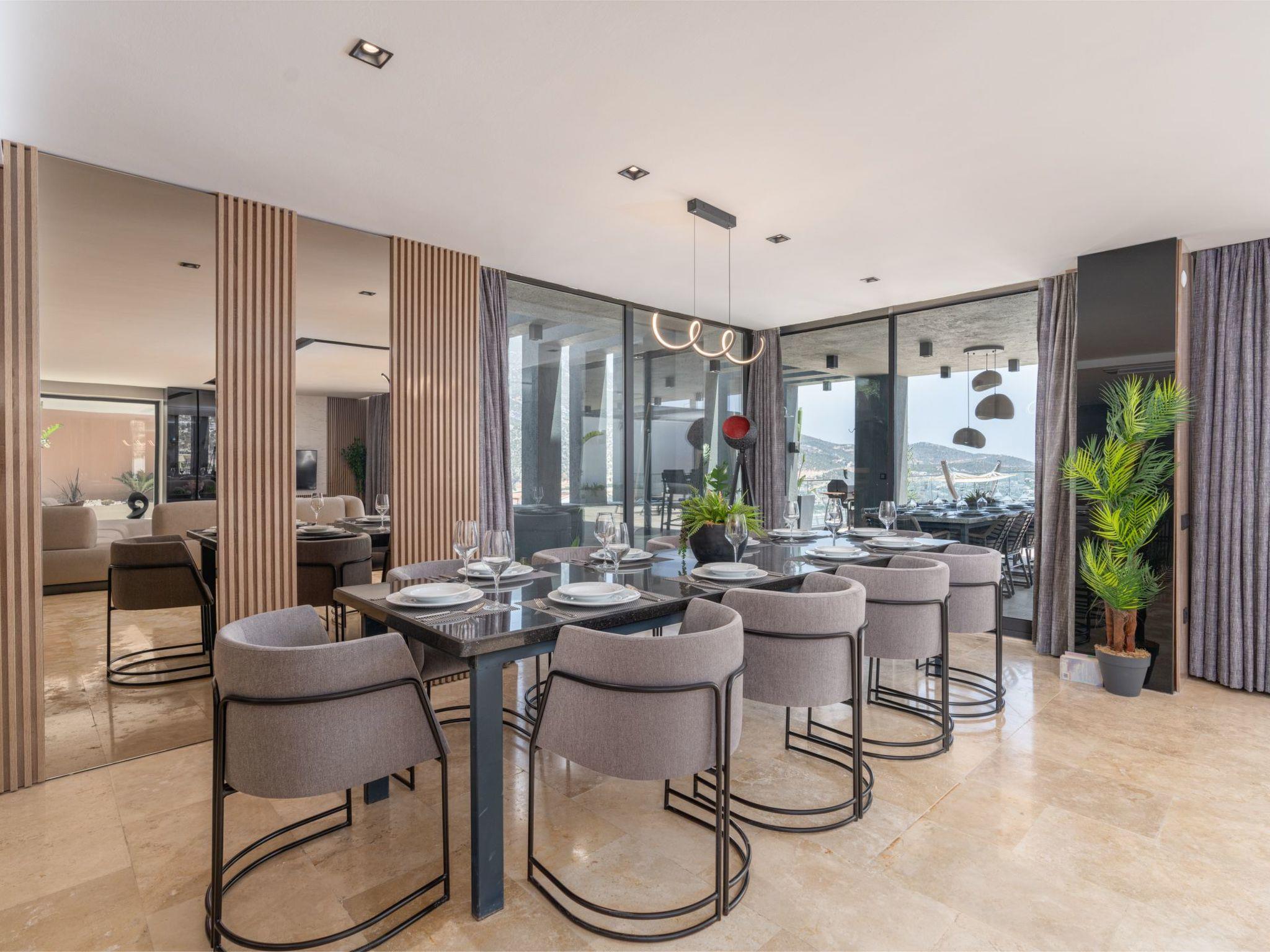 Geräumige Wohnbereiche: Die Villa verfügt über großzügige Wohn- und Essbereiche, die stilvoll mit modernen Möbeln und Dekor gestaltet sind. Große Fensterfronten lassen viel natürliches Licht herein und bieten zu jeder Tageszeit spektakuläre Ausblicke.