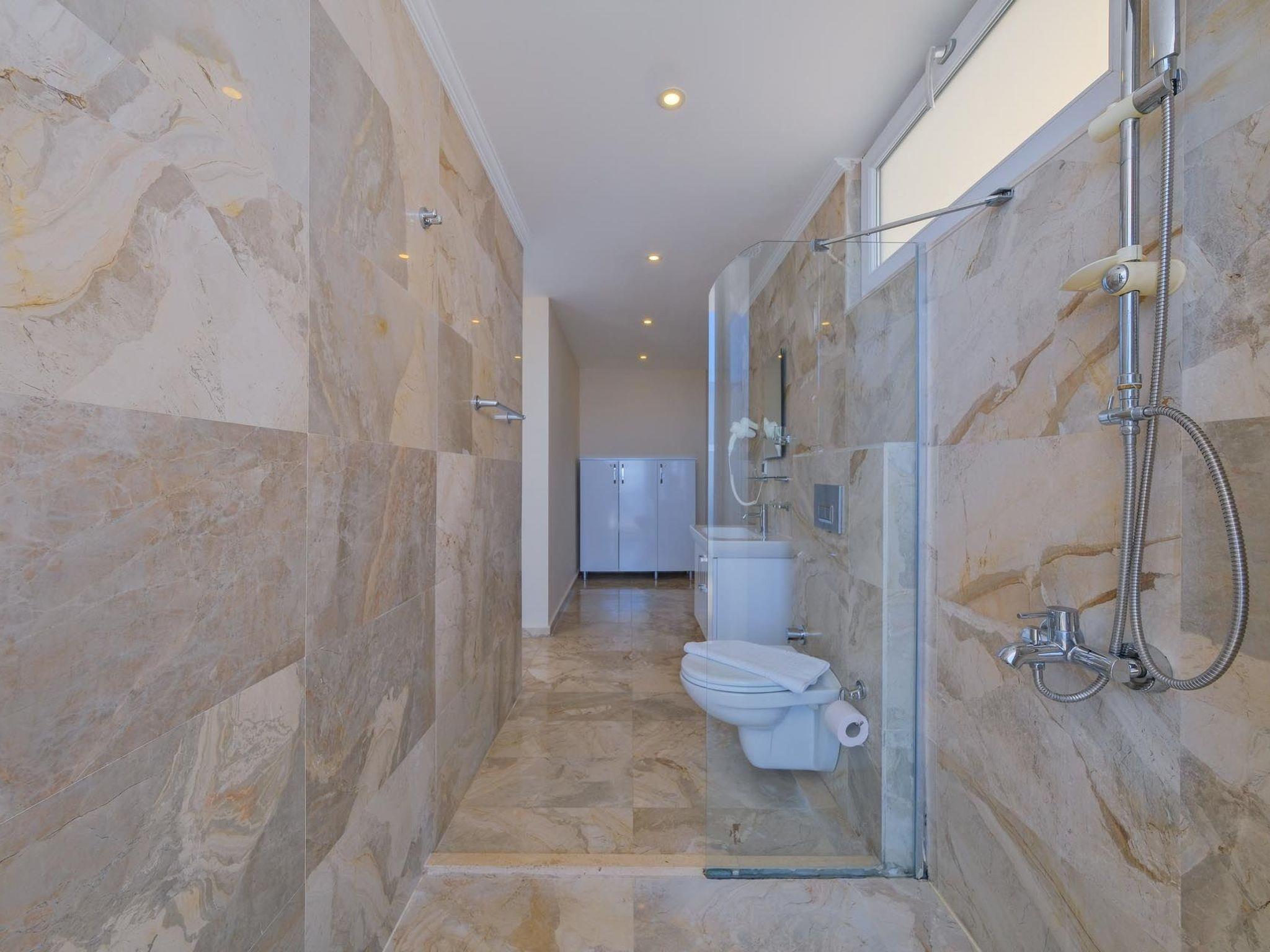 Im Inneren finden Sie vier geschmackvoll eingerichtete Schlafzimmer, von denen jedes über ein eigenes Bad verfügt – ein wahres Zeichen für Privatsphäre und Komfort. Jedes Schlafzimmer kann für eine erholsame Nachtruhe abgedunkelt werden. Die Räumlichkeiten sind überall mit Klimaanlage ausgestattet, sodass für ein angenehmes Raumklima zu jeder Jahreszeit gesorgt ist. Zusätzlich sorgen moderne Annehmlichkeiten wie eine Waschmaschine und eine vollausgestattete Küche mit Spülmaschine und Gasherd dafür, dass Sie während Ihres Aufenthalts keinen Komfort vermissen werden.