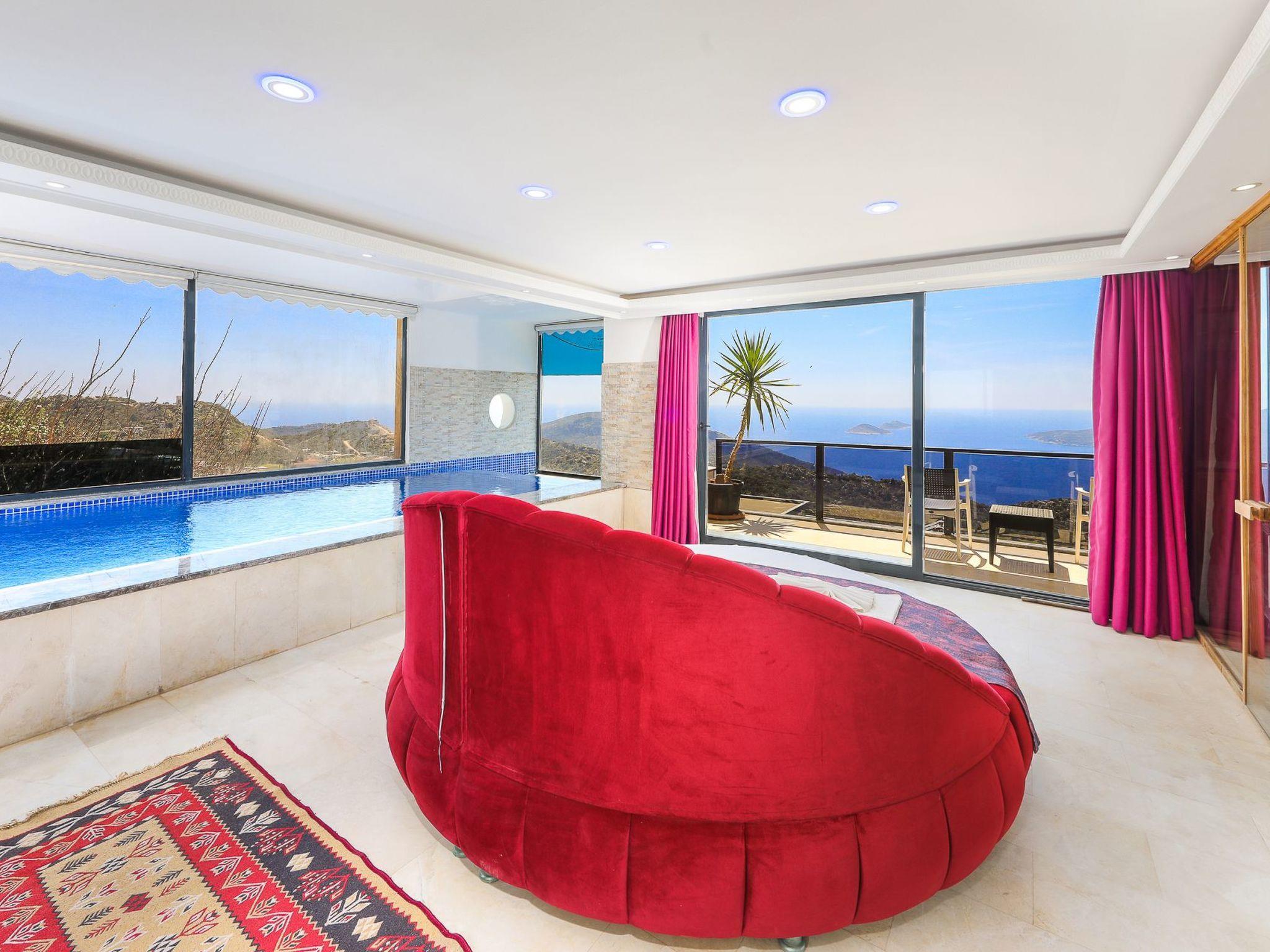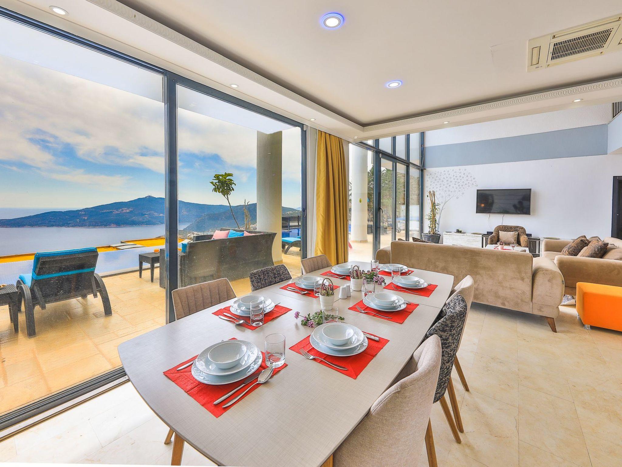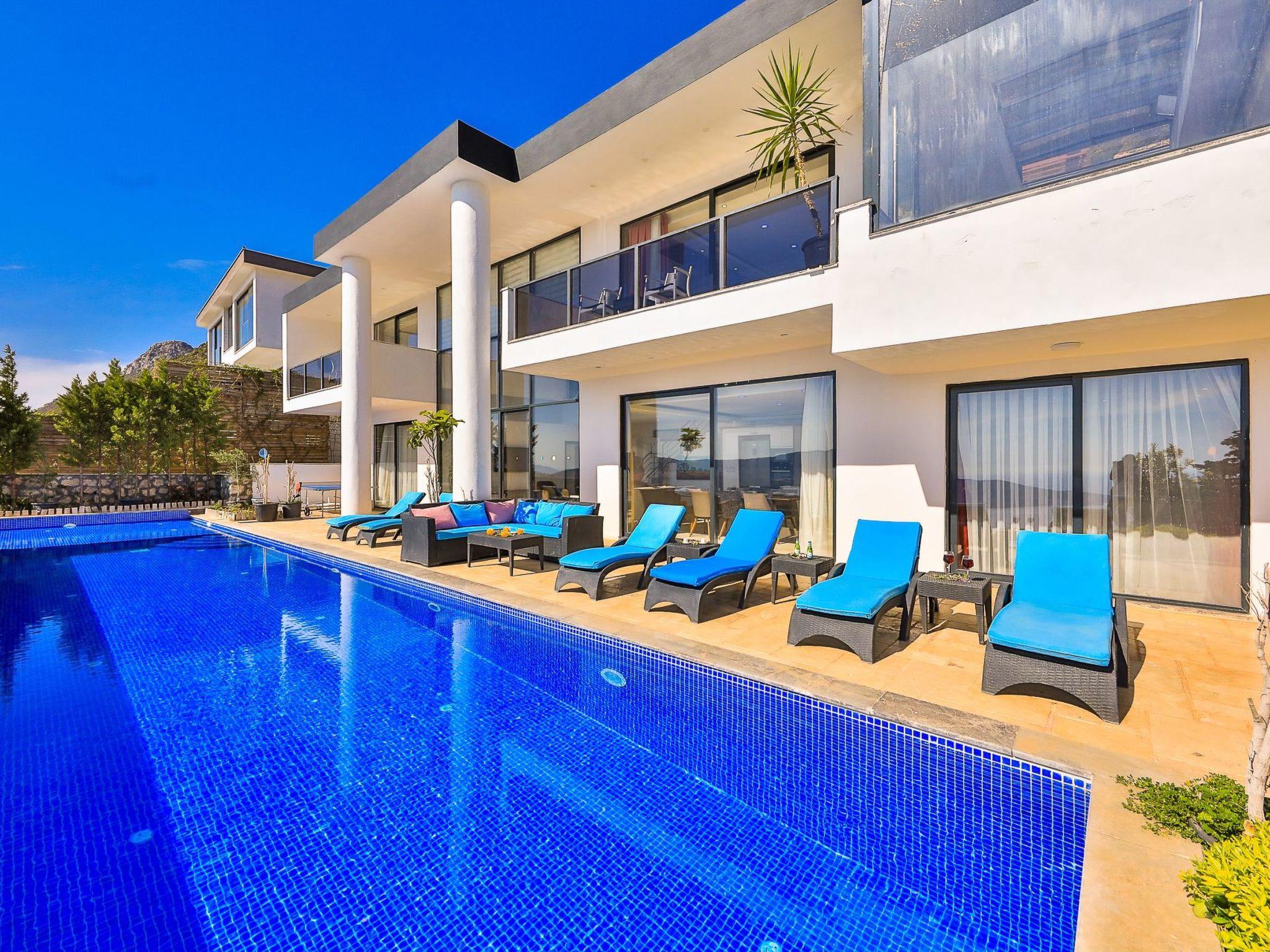 Unsere Villa ist eine luxuriöse Ferienvilla in Kalkan, Kördere, die Platz für bis zu 8 Personen bietet. Die Villa bietet einen atemberaubenden Meerblick und verfügt über einen Infinity-Pool, der für entspannende Badeerlebnisse sorgt. Im Garten der Villa gibt es zudem viel Platz zum Entspannen und Genießen der Aussicht.