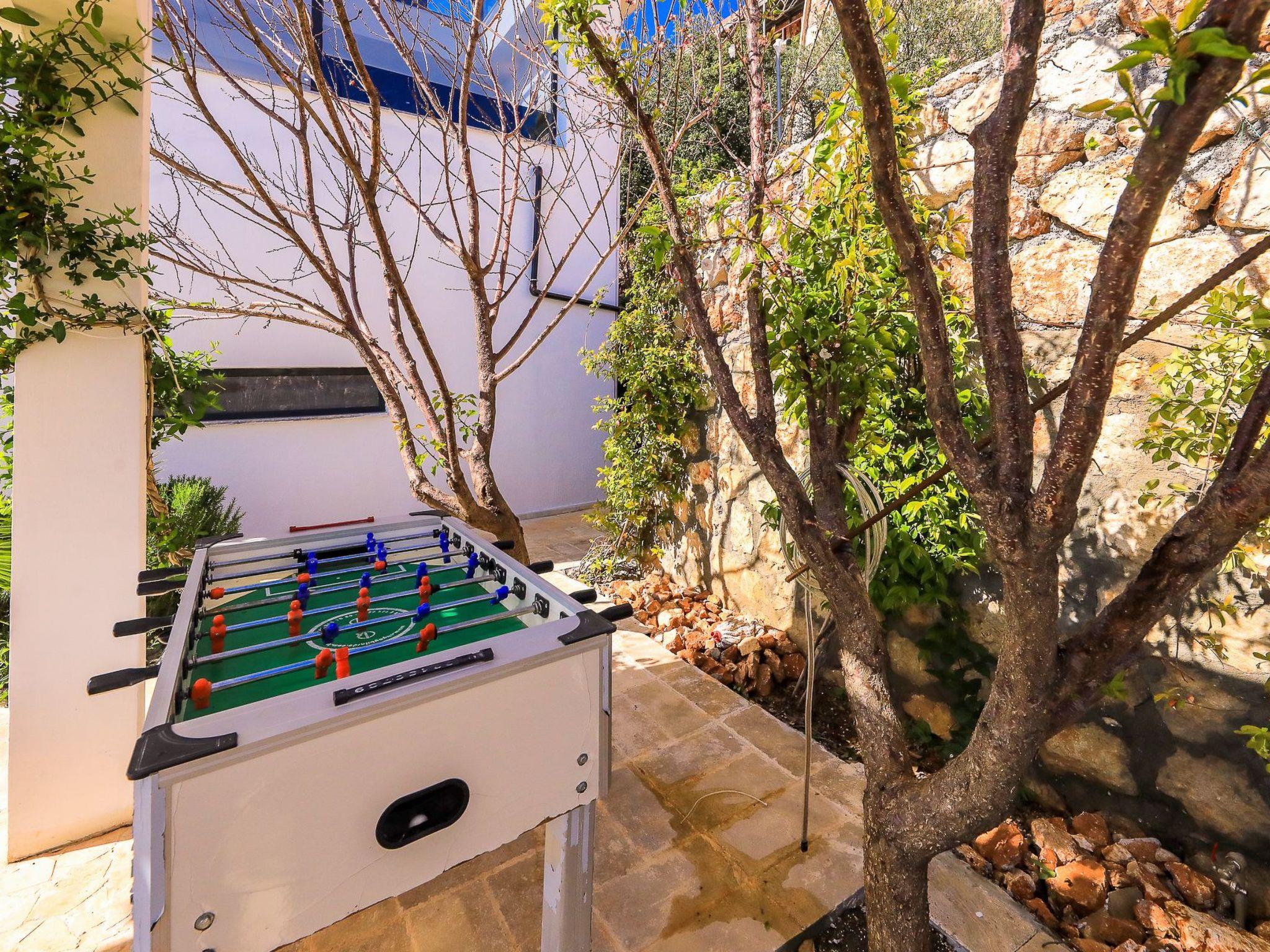 Innen bietet die Villa moderne und komfortable Unterkünfte mit geräumigen Wohnbereichen und Schlafzimmern. Die Küche ist gut ausgestattet und es gibt ausreichend Sitzgelegenheiten im Essbereich und im Wohnzimmer. Von den Terrassen und dem Poolbereich aus haben Sie Zugang zu atemberaubenden Aussichten auf das Meer und die umliegende Landschaft.