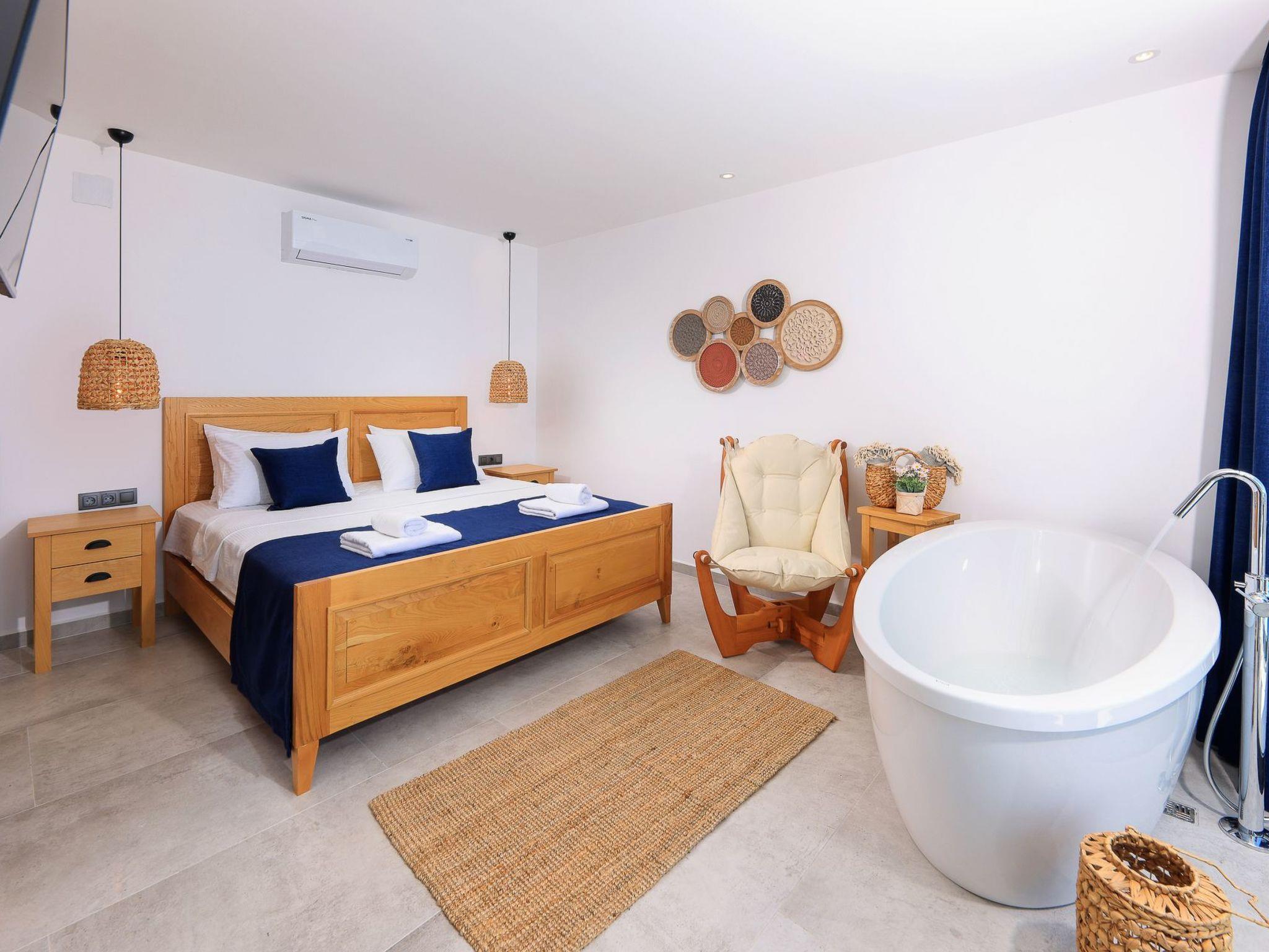 Das Innere des Hauses ist komplett ausgestattet, um Ihren Aufenthalt so angenehm wie möglich zu gestalten. Neben einer klimatisierten Umgebung in allen Räumen stehen Ihnen eine Waschmaschine, eine Kaffeemaschine, ein Wasserkocher und eine Spülmaschine zur alleinigen Nutzung zur Verfügung. Diese Annehmlichkeiten sorgen für komfortable Wohnbedingungen, unabhängig von der Außentemperatur oder der Dauer Ihres Aufenthalts.