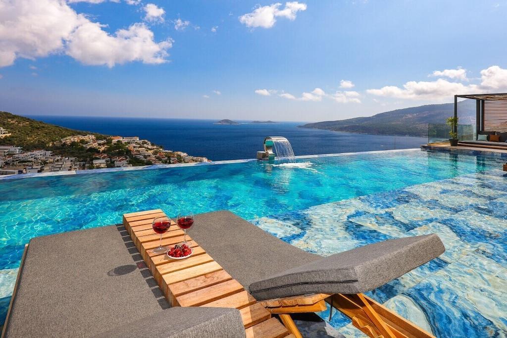 Diese luxuriöse Villa liegt in der exklusiven Kalamar-Bucht, einem der begehrtesten Orte in Kalkan. Mit 6 großzügigen Schlafzimmern bietet sie Platz für bis zu 12 Personen. Wie bei einigen unserer anderen Premium-Villen genießen Sie von jedem Zimmer aus einen atemberaubenden Panoramablick auf das Meer von Kalkan. Ein dekorativer Infinity-Pool rundet das exklusive Urlaubserlebnis perfekt ab