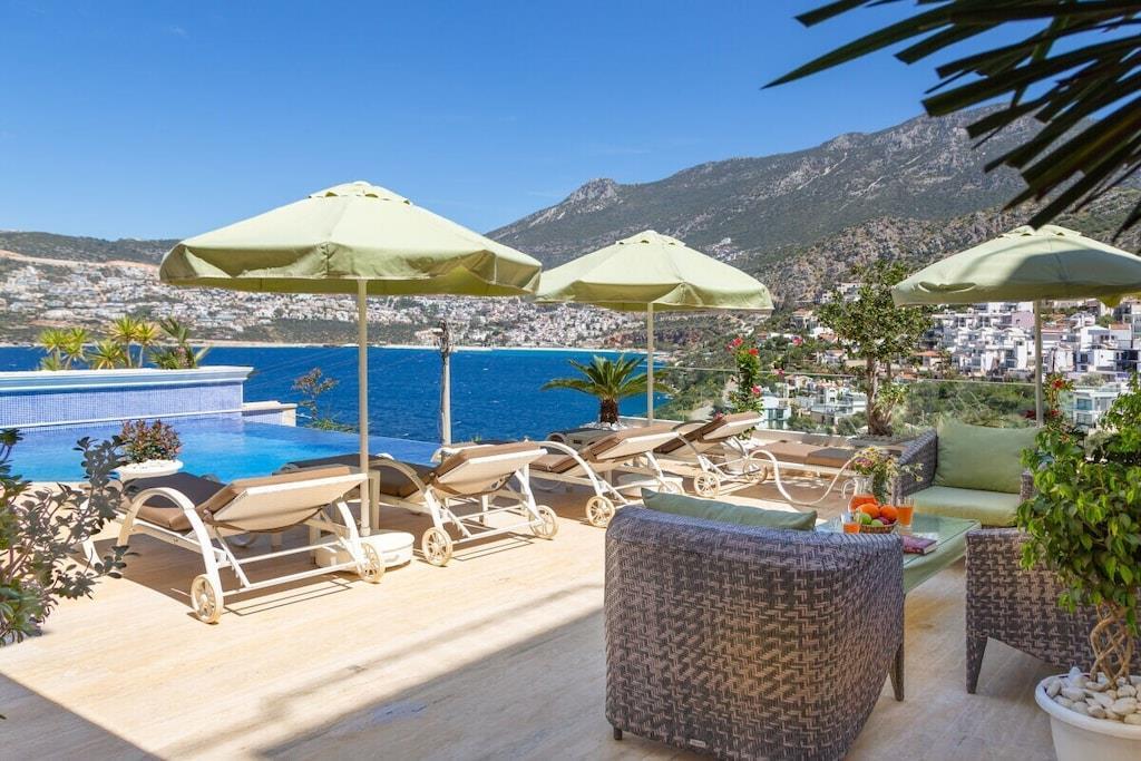 Villa Bluewhite ist eine wunderschöne Villa mit einer atemberaubenden Aussicht, die sich in Kalkan-Kisla befindet. Unsere zur Vermietung stehende Villa Bluewhite liegt in Gehweite zum Meer und bietet einen herrlichen Blick auf die Stadt und die Bucht. Die Villa verfügt über insgesamt 5 Schlafzimmer und bietet Platz für 10 Personen.