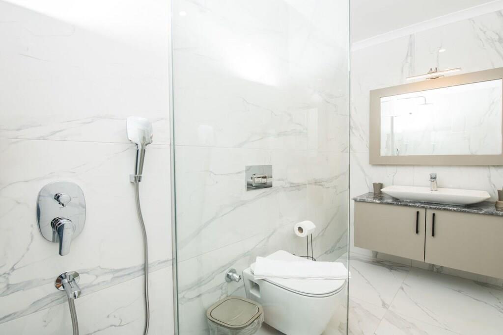 Villa Niro ist eine Villa in Kalkan Incebel, die Platz für bis zu 6 Personen bietet. Die Villa bietet einen atemberaubenden Meerblick und befindet sich inmitten von wunderschöner Natur. Das Wohnzimmer ist geräumig und bietet genügend Platz für alle Gäste. Von hier aus haben Sie Zugang zu einer großen Terrasse mit Meerblick, die perfekt für gemeinsame Mahlzeiten oder zum Entspannen bei einem Glas Wein ist. Die Villa verfügt über eine voll ausgestattete Küche mit allem, was Sie für die Selbstverpflegung benötigen. Es gibt auch einen Esstisch, an dem Sie gemeinsam Mahlzeiten genießen können. Villa Niro bietet eine wunderschöne Aussicht auf das Meer und befindet sich inmitten von wunderschöner Natur. Sie werden die ruhige Lage der Villa genießen können.