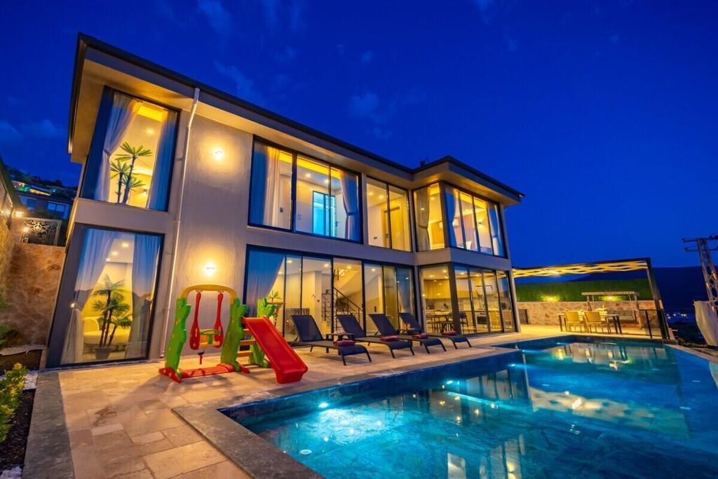 Diese private Villa, die im Jahr 2025 erbaut wurde, befindet sich im ruhigen Stadtteil Yesilköy von Kas Kalkan in Antalya. Mit einer Gesamtkapazität für 4 Personen verfügt unsere Villa über 2 komfortable Schlafzimmer, die jeweils mit einem eigenen Badezimmer ausgestattet sind. Durch ihre moderne Architektur und sorgfältig ausgewählte luxuriöse Möbel bietet sie den Gästen einen stilvollen und zugleich komfortablen Aufenthalt. Inmitten der Natur und in einer ruhigen Atmosphäre gelegen, verspricht die Villa mit einem privaten Pool und großzügigen Wohnbereichen einen unvergesslichen Urlaub. Ideal für Flitterwochenpaare und Kleinfamilien – jedes Detail dieser Villa wurde mit Blick auf Ihren Komfort gestaltet. WICHTIGE HINWEISE: Ein Mietwagen wird dringend empfohlen. Zusätzlich kann es in den Sommermonaten aufgrund hoher Temperaturen vereinzelt zu Stromausfällen kommen.