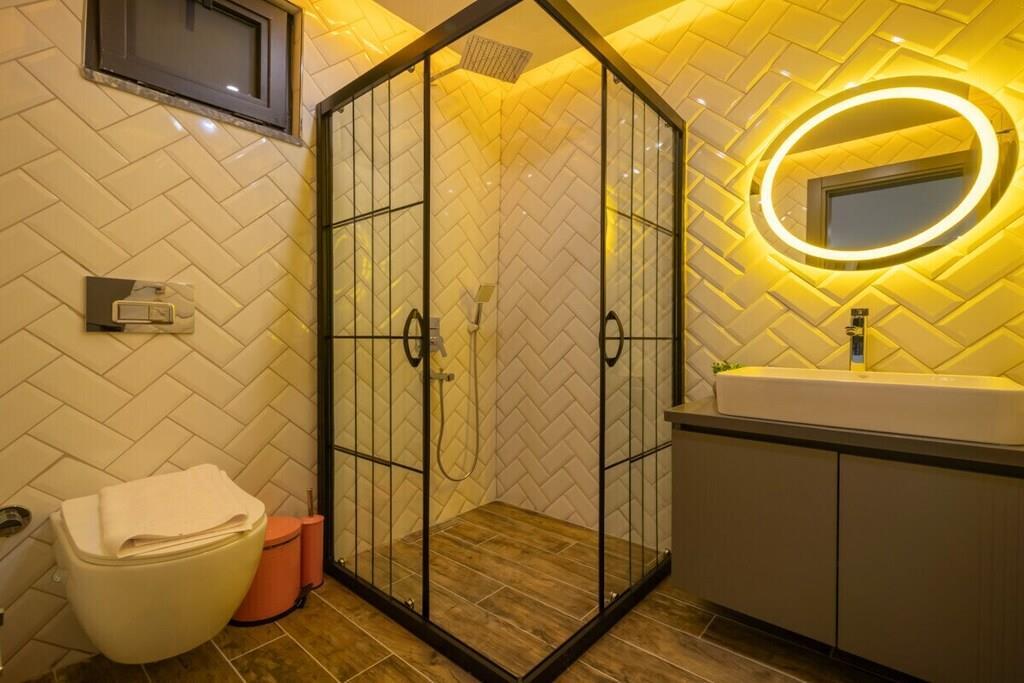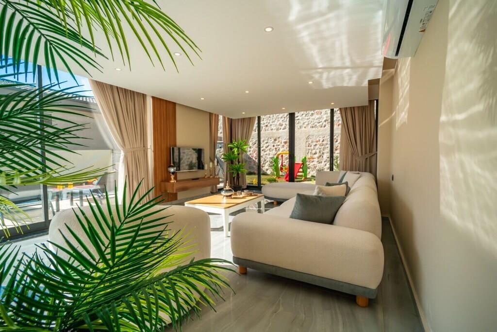 Diese exklusive Villa, die im Jahr 2025 erbaut wurde, befindet sich im ruhigen Stadtteil Yesilköy von Kas Kalkan in Antalya. Die Villa bietet Platz für insgesamt 4 Personen und verfügt über 2 komfortable Schlafzimmer, jeweils mit eigenem Badezimmer. Mit ihrer modernen Architektur und sorgfältig ausgewählten luxuriösen Möbeln bietet sie den Gästen ein stilvolles und zugleich komfortables Urlaubserlebnis. Eingebettet in die Natur und in einer ruhigen Umgebung gelegen, verspricht die Villa mit einem privaten Pool und großzügigen Wohnbereichen einen unvergesslichen Urlaub. Ideal für Flitterwochenpaare und Kleinfamilien – jedes Detail dieser Villa wurde mit Blick auf Ihren Komfort gestaltet. WICHTIGE HINWEISE: Ein Mietwagen wird dringend empfohlen. Zusätzlich kann es in den Sommermonaten aufgrund hoher Temperaturen vereinzelt zu Stromausfällen kommen.