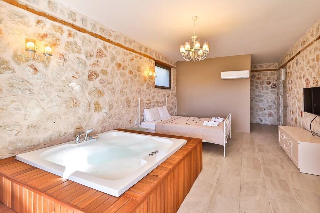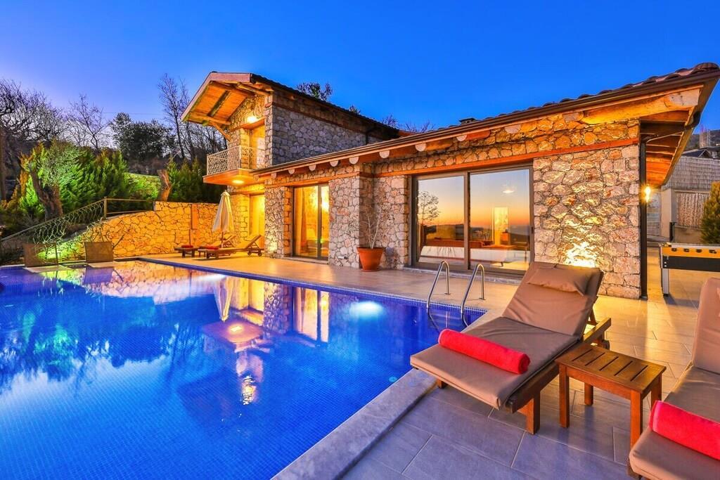 Die Mietvilla Ime befindet sich im Stadtteil Islamlar von Kalkan und bietet einen einzigartigen Blick auf die Natur. Die aus Naturstein erbaute Villa Horizont bietet mit ihrem beeindruckenden Innendesign und komfortablen Aufbau eine angenehme Urlaubsmöglichkeit. Sie verfügt über 3 Schlafzimmer und ist für bis zu 6 Personen ausgelegt. Umgeben von natürlichen Bäumen, ist sie abgeschirmt und bietet Privatsphäre. Daher ist sie ideal für konservative Familien und Freundesgruppen geeignet. Villa Ime erwartet ihre Gäste mitten im Grünen mit einem atemberaubenden Blick auf die Inseln – perfekt, um den Sonnenaufgang zu genießen. WICHTIGE HINWEISE: Ein Mietwagen wird dringend empfohlen. Die Straßen in Kalkan sind teilweise hügelig und uneben. Zusätzlich kann es in den Sommermonaten aufgrund hoher Temperaturen vereinzelt zu Stromausfällen kommen.
