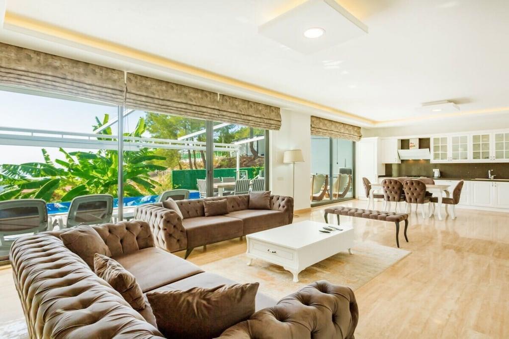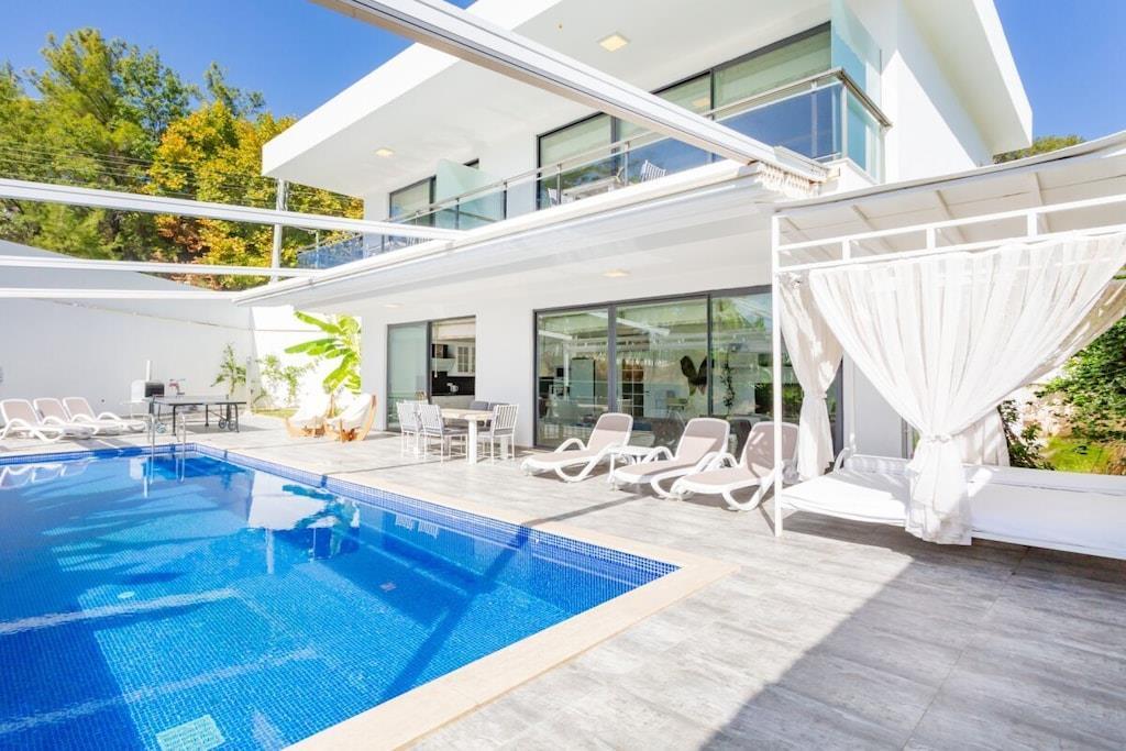 Villa Gra Sky ist eine luxuriöse Unterkunft mit Platz für bis zu 4 Personen, die sich in einer ruhigen Gegend befindet und einen atemberaubenden Blick auf das grüne Tal bietet. Die Villa verfügt über zwei geräumige Schlafzimmer mit bequemen Betten und eigenen Badezimmern. Das Wohnzimmer bietet genügend Platz für entspannte Abende und ist mit bequemen Sofas ausgestattet. Die Küche ist voll ausgestattet und bietet alles, was man für das Kochen benötigt. Im Außenbereich gibt es zusätzlich zum Pool einen Hamam, eine Sauna und einen Sportraum, in denen man sich nach einem anstrengenden Tag entspannen oder Sport treiben kann. Islamlar ist ein malerischer Ort in der Türkei, der für seine grünen Täler und die ruhige Atmosphäre bekannt ist. Die Villa Grande Sky wurde von France24 zur besten Privatvilla des Jahres gewählt und bietet alles, was man für einen luxuriösen Urlaub benötigt.