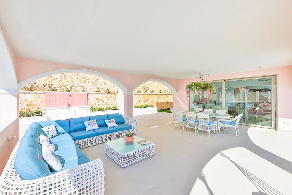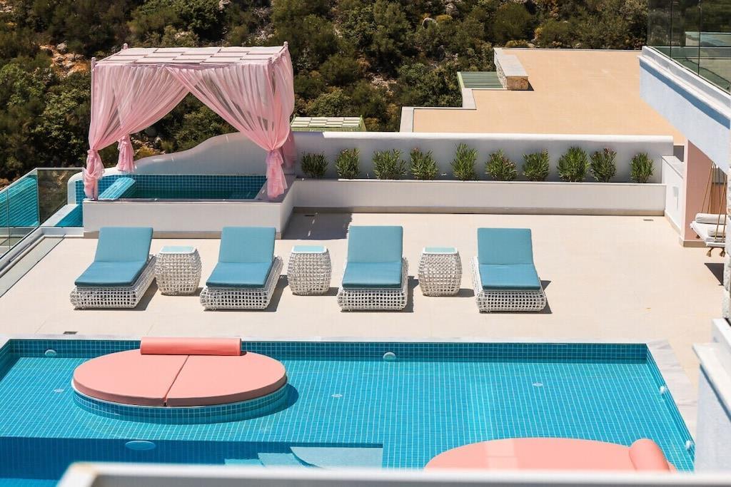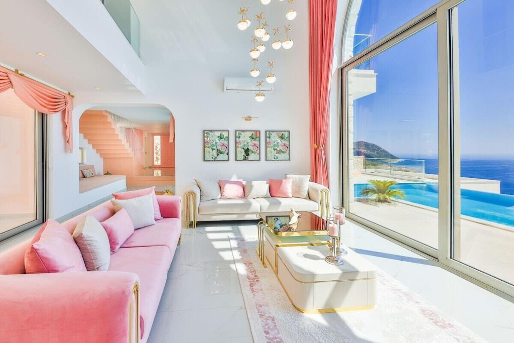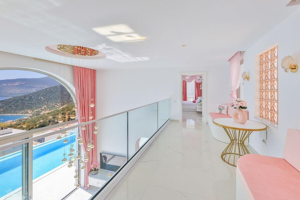 Villa Roz ist eine luxuriöse Villa im beliebten Kalamar-Viertel von Kalkan, Antalya. Mit 4 Schlafzimmern und einer Kapazität für 8 Personen bietet sie einen atemberaubenden Meerblick und ist dank ihrer modernen und eleganten Architektur die perfekte Wahl für große Familien und Freundesgruppen. Im großzügigen Garten der Villa befindet sich ein privater Pool mit Blick aufs Meer, Sonnenliegen, Sonnenschirme, eine gemütliche Sitzecke, ein Grill und ein Esstisch. Im Innenbereich sorgen stilvolle Akzente sowie ein Jacuzzi und ein Billardtisch für zusätzlichen Komfort und Vergnügen. Auf der Dachterrasse der Villa können Sie die Sonne inmitten der Natur genießen und im Jacuzzi bei einzigartiger Aussicht entspannen. Die harmonische Kombination aus Weiß und Blau verleiht der Villa eine frische Atmosphäre, wobei jedes Detail sorgfältig durchdacht wurde, um Ihren Urlaub so angenehm wie möglich zu gestalten.