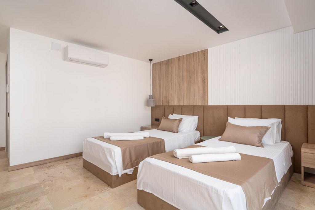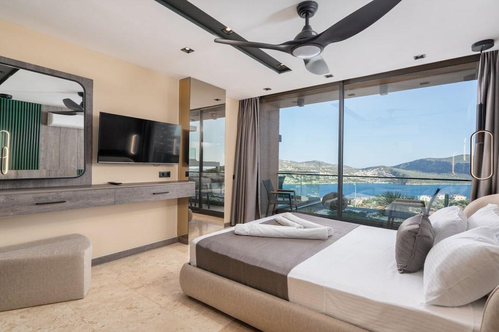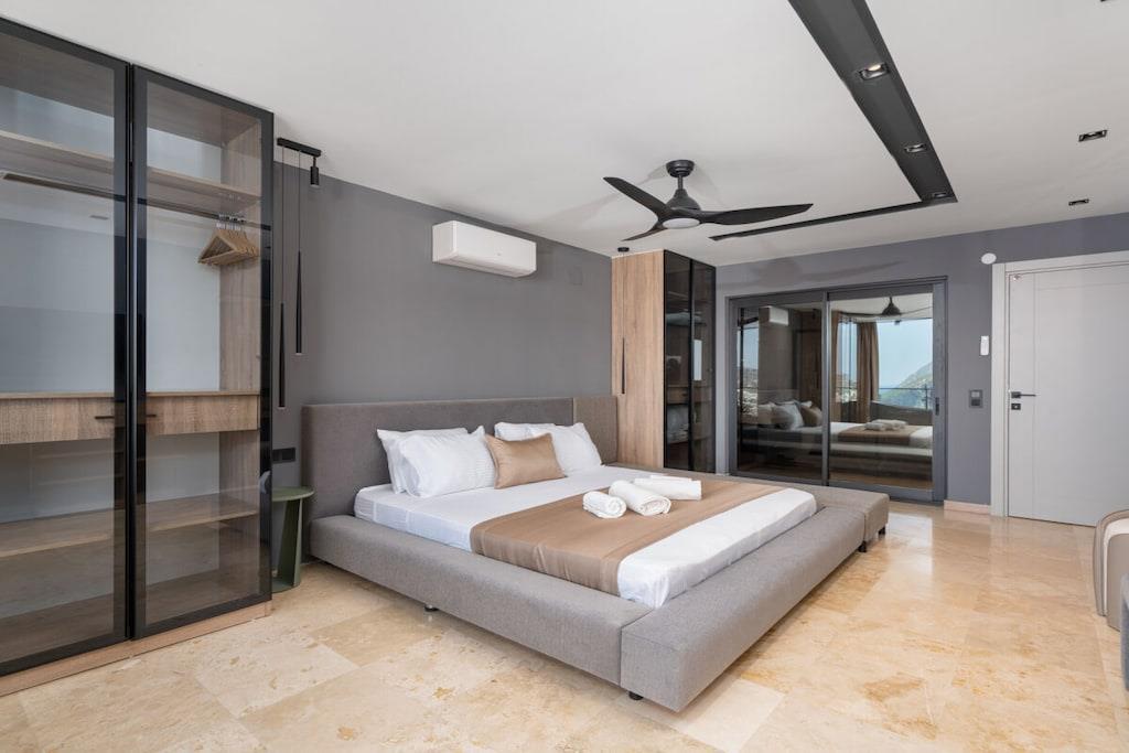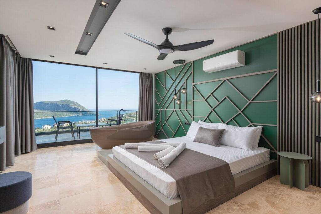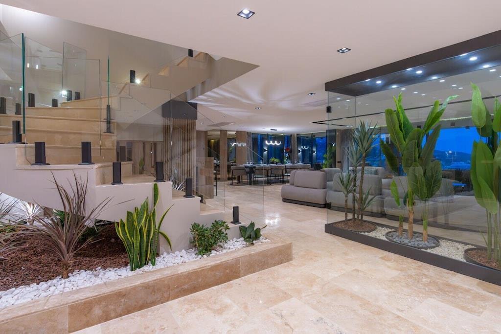 Villa Du ist eine luxuriöse Unterkunft in Kalkan, die Platz für bis zu 12 Personen bietet. Die Villa verfügt über 6 Schlafzimmer und ist somit ideal für Familien oder größere Gruppen. Sie befindet sich im Stadtteil Kalamar, der für seine wunderschönen Buchten und seine Nähe zum Zentrum von Kalkan bekannt ist. Von der Villa aus genießen Sie einen atemberaubenden Meerblick auf die Inseln und können sich im eigenen Kinderpool erfrischen. Die Villa ist modern und luxuriös ausgestattet und bietet alles, was Sie für einen unvergesslichen Urlaub benötigen. Beheizbarer Pool gegen Aufpreis außerhalb der Saisonmonate.