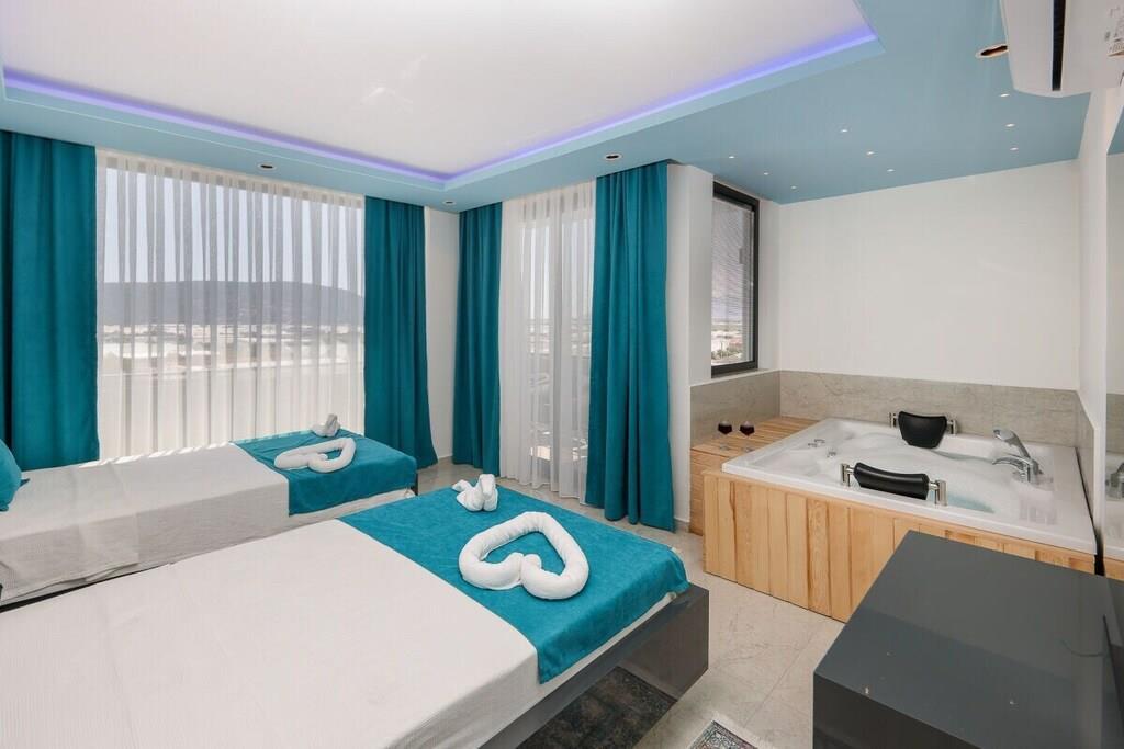 Villa Liv Du befindet sich in der Gegend Yesilköy in Antalya Kalkan und ist unsere Ferienvilla mit einer Kapazität von 4 Personen. Die Villa liegt inmitten der Natur und verfügt über einen Whirlpool und eine Sauna für Ihr Wohlbefinden.