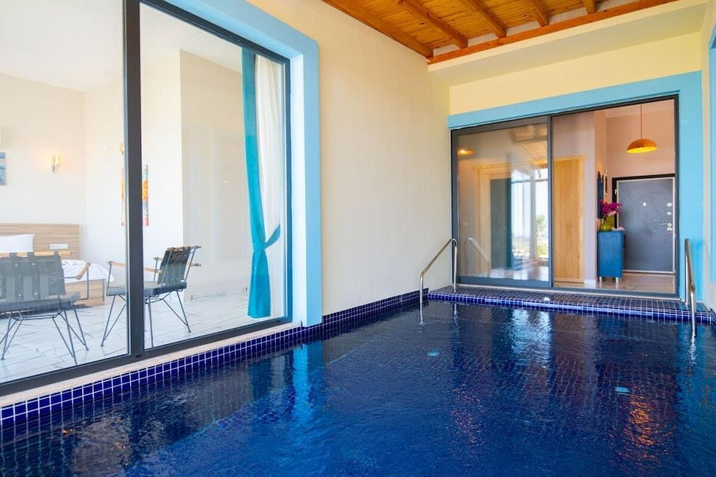 Villa Sil befindet sich in der Gegend Yesilköy in Kalkan. Sie bietet Platz für bis zu 4 Personen und verfügt über 2 Schlafzimmer. Die Villa ist mit einem Innenpool für die Wintermonate und einer Sauna ausgestattet. Alle notwendigen Annehmlichkeiten für den täglichen Gebrauch sind vorhanden. Genießen Sie Ihren Urlaub auf der Poolterrasse mit Blick auf die Natur.