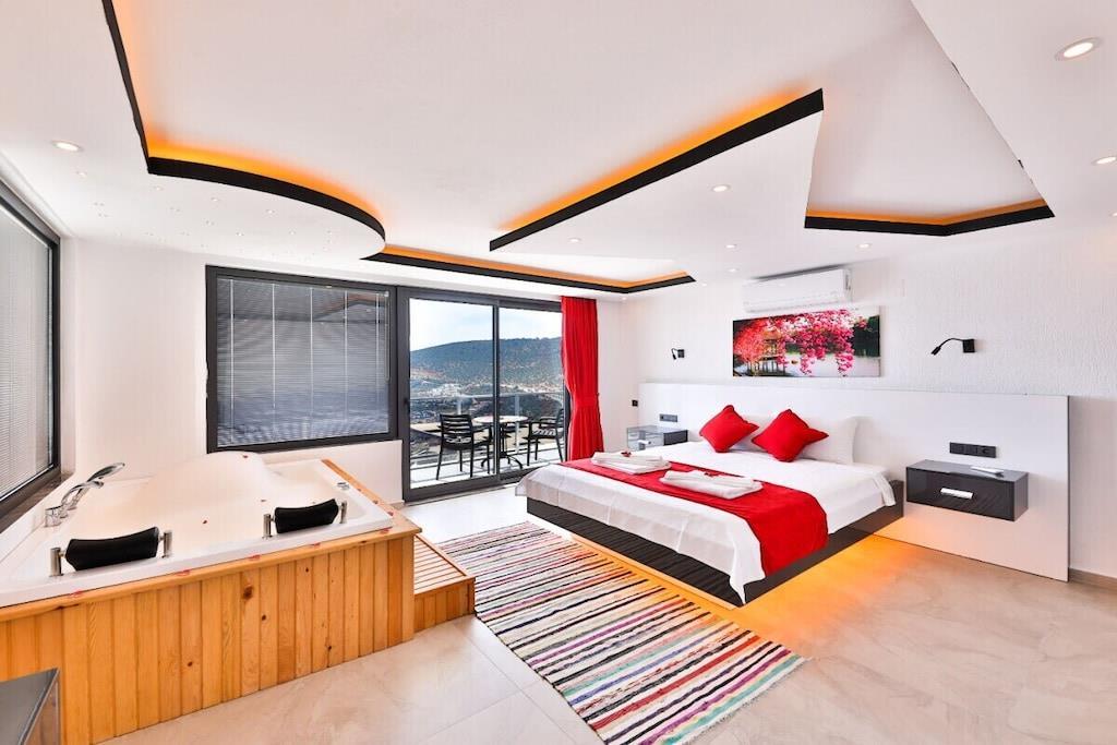 Villa Jul ist eine luxuriöse Villa mit Platz für bis zu 10 Personen in Kalkan Kiziltas. Die Villa liegt in der Nähe des Zentrums und des Meeres und bietet einen atemberaubenden Meerblick. Sie verfügt über moderne Annehmlichkeiten und ist der perfekte Ort für große Familien oder Freundegruppen, die die Schönheit der türkischen Riviera genießen möchten. Die Villa befindet sich in einer ruhigen Gegend und bietet genügend Privatsphäre und Sichtschutz für Gäste. Sie ist der ideale Rückzugsort, um sich zu entspannen und die Seele baumeln zu lassen.
