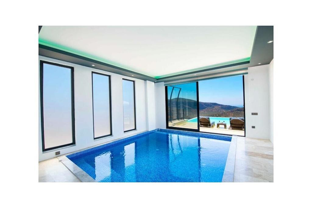 Villa Plu ist eine luxuriöse Unterkunft, die Platz für bis zu 6 Personen bietet und über einen atemberaubenden Meerblick in der Stadt Antalya Kalkan verfügt. Sie verfügt über einen Infinitypool und einen Indoorpool, die für Badespaß sorgen. Im Inneren der Villa gibt es auch einen Billardtisch, an dem Sie mit Freunden und Familie spielen können. Auf dem Dach der Villa befindet sich ein beheizbarer Jacuzzi mit Musik, der eine entspannende Atmosphäre bietet. Es gibt auch eine Küche auf dem Dach, die perfekt für Mahlzeiten draußen geeignet ist. Der Grill befindet sich am Pool, so dass Sie während des Schwimmens köstliche Mahlzeiten genießen können. Für Ihr Auto gibt es einen Parkplatz und für den Fall, dass der Strom ausfällt, gibt es auch einen Stromgenerator. Kalkan ist eine Stadt an der türkischen Mittelmeerküste im Bezirk Kas der Provinz Antalya, die für ihre malerische Lage am Fuße von Bergen und ihre historischen Gebäude bekannt ist.