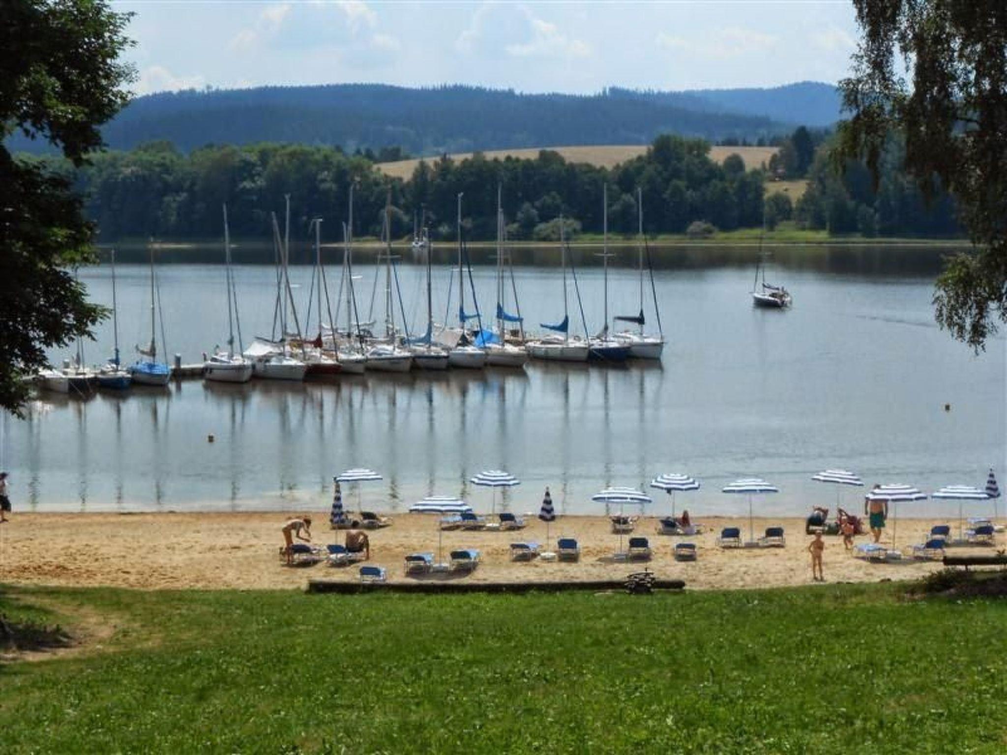 Das im Jahr 2006 erbaute Ferienhaus liegt am Rande einer kleinen, idyllischen Ferienhaussiedlung, außerhalb des flairvollen Ortes Frymburk.