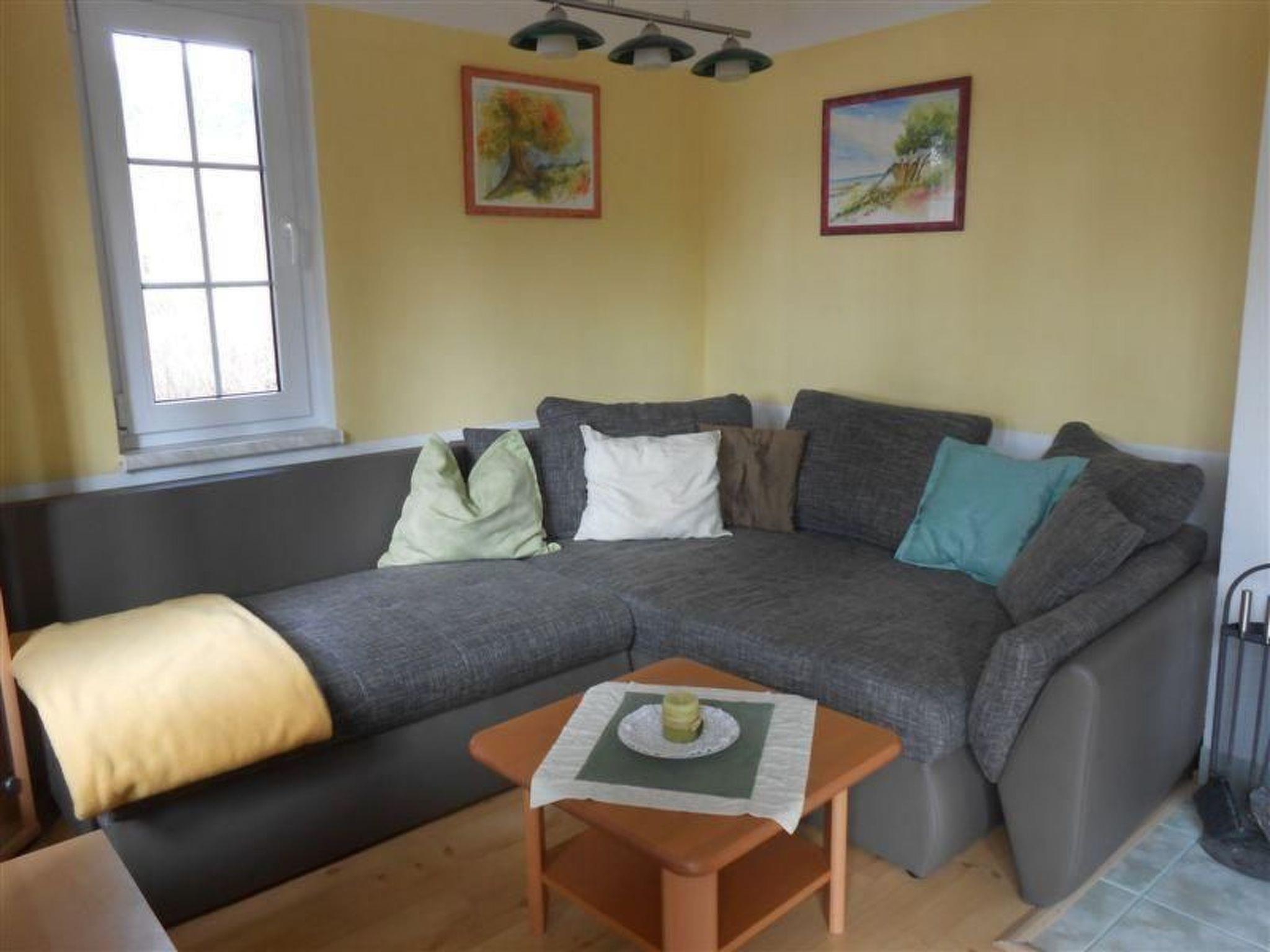 Im Erdgeschoss befindet sich seeseitig ein großer, heller Raum mit einer sehr gut ausgestatteten Küche, in nettem Design sowie dem Wohnzimmer, das neben einem SAT-TV mit einer gemütlichen und viel platzbietenden Couch möbliert ist. Die Küche beinhaltet ein Ceranfeld (vier Platten), einen Backofen, einen Geschirrspüler, geräumigen Kühlschrank, Wasserkocher, einen Minibackofen, eine Filter-Kaffeemaschine, einen Toaster und neben allem Geschirr, Töpfen und Pfannen, etc... auch viele nützliche Kochutensilien. In diesem Raum befindet sich auch ein einfach zu bedienender Kaminofen, der - bitte um Beachtung - auch die einzige Heizquelle darstellt. (Anmerkung: für den ersten Tag stellen wir Ihnen Holz zur Verfügung, bei weiterem Bedarf obliegt die Anschaffung beim Mieter - so ist es in dieser Region allgemein Brauch; es gibt keine Heizkörper od. eine Zentralheizung).