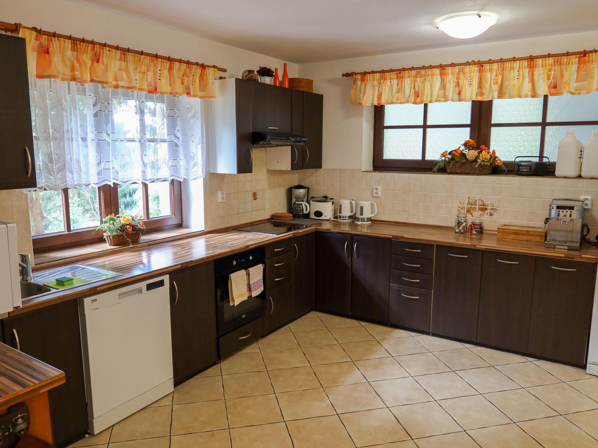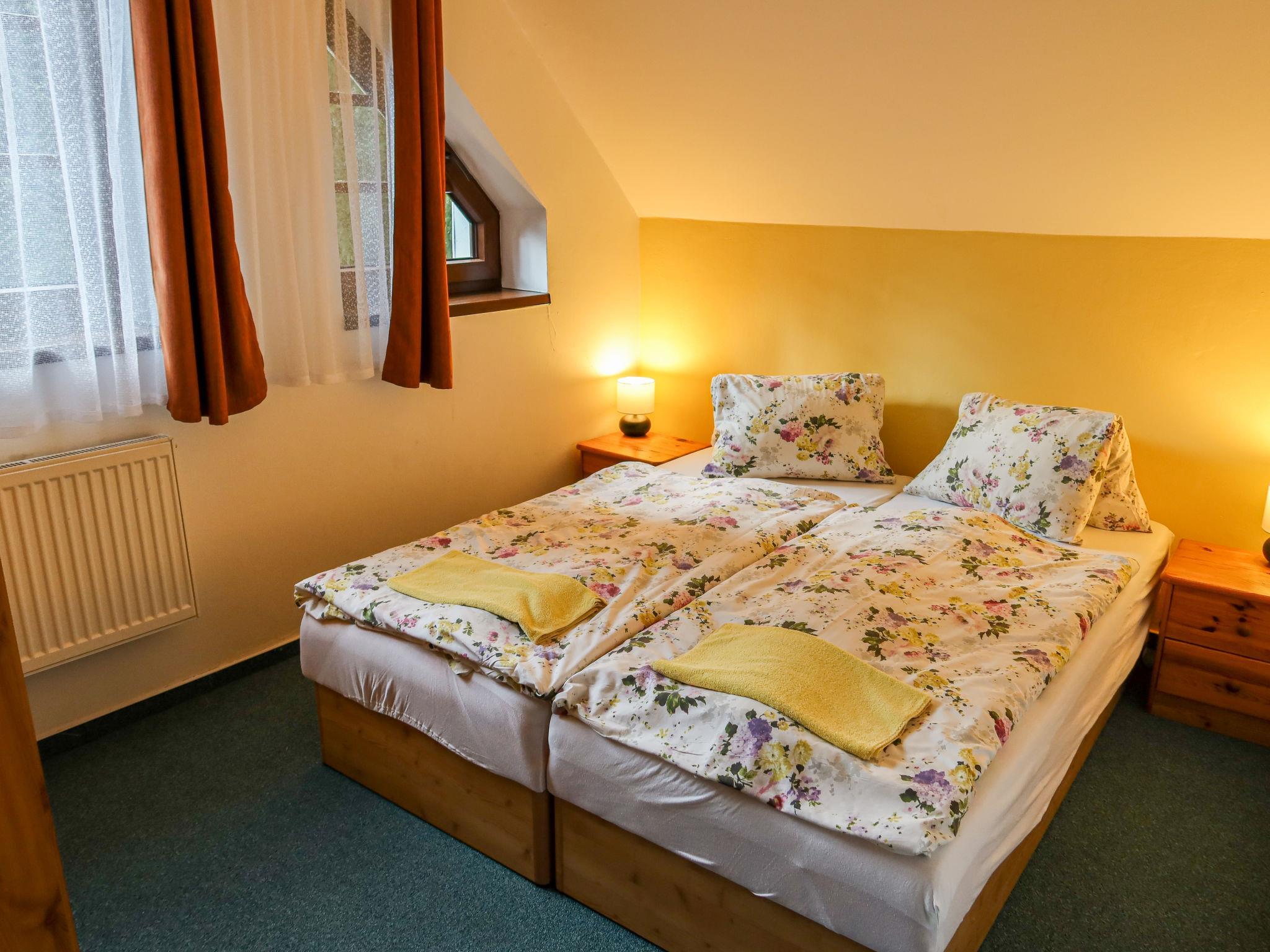 Gemütliches Landhaus "Labaika", auf 3 Stockwerken, einseitig angebaut, umgeben von Bäumen. 500 m vom Zentrum von Harrachov, ruhige, erhöhte Lage, direkt am Waldrand, 400 m vom Skigebiet. Zur Mitbenutzung: Grundstück. Gartenmöbel, Grill, Feuerstelle. Im Hause: Skiraum, Zentralheizung. Im Winter bis 300 m. Parkplatz beim Haus, im Winter 400 m. Einkaufsgeschäft, Supermarkt 500 m, Restaurant, Bushaltestelle "Harrachov, centrum" 500 m, Bahnstation "Harrachov" 3 km, Freibad 1.4 km. Tennis 2 km, Tennishalle 1.4 km, Skilift 400 m, Sessellift, Skipisten, Skiverleih, Skischule, Kinderskischule, Langlaufloipe 10 m. Nahe gelegene Sehenswürdigkeiten: Bobová dráha 600 m, Muzeum skla 1 km, Skokanské mustky Harrachov 1 km, Mumlavský vodopád 2 km, Vosecká bouda, Dvoracky, Hutský vodopád 9 km, Vodopád Kamienczyka, Szklarki (PL) 12 km, Jablonec nad Nisou 27 km, Liberec 39 km. Bekannte Skigebiete sind gut erreichbar: Certova hora 400 m, Zákoutí 1,4 km, Ryžovište 2 km, Korenov 7 km, Rokytnice nad Jizerou 15 km. Bekannte Seen in der Umgebung sind gut erreichbar: Vodní nádrž Souš 15 km. Wandergebiete: Western City(Pl) 40 km, Karpacz Wang,Park miniatury Kowary (Pl) 44 km, Giganteria Piechowice 23km, Dinopark(Pl) 15 km. Bitte beachten: Der Besitzer wohnt im selben Haus. Im Winter kann das Gepäck nur bei entsprechender Schneelage am Haus ein-/ausgeladen werden. Im Winter wird die Zufahrtsstraße (400 m) nicht gepflegt.
