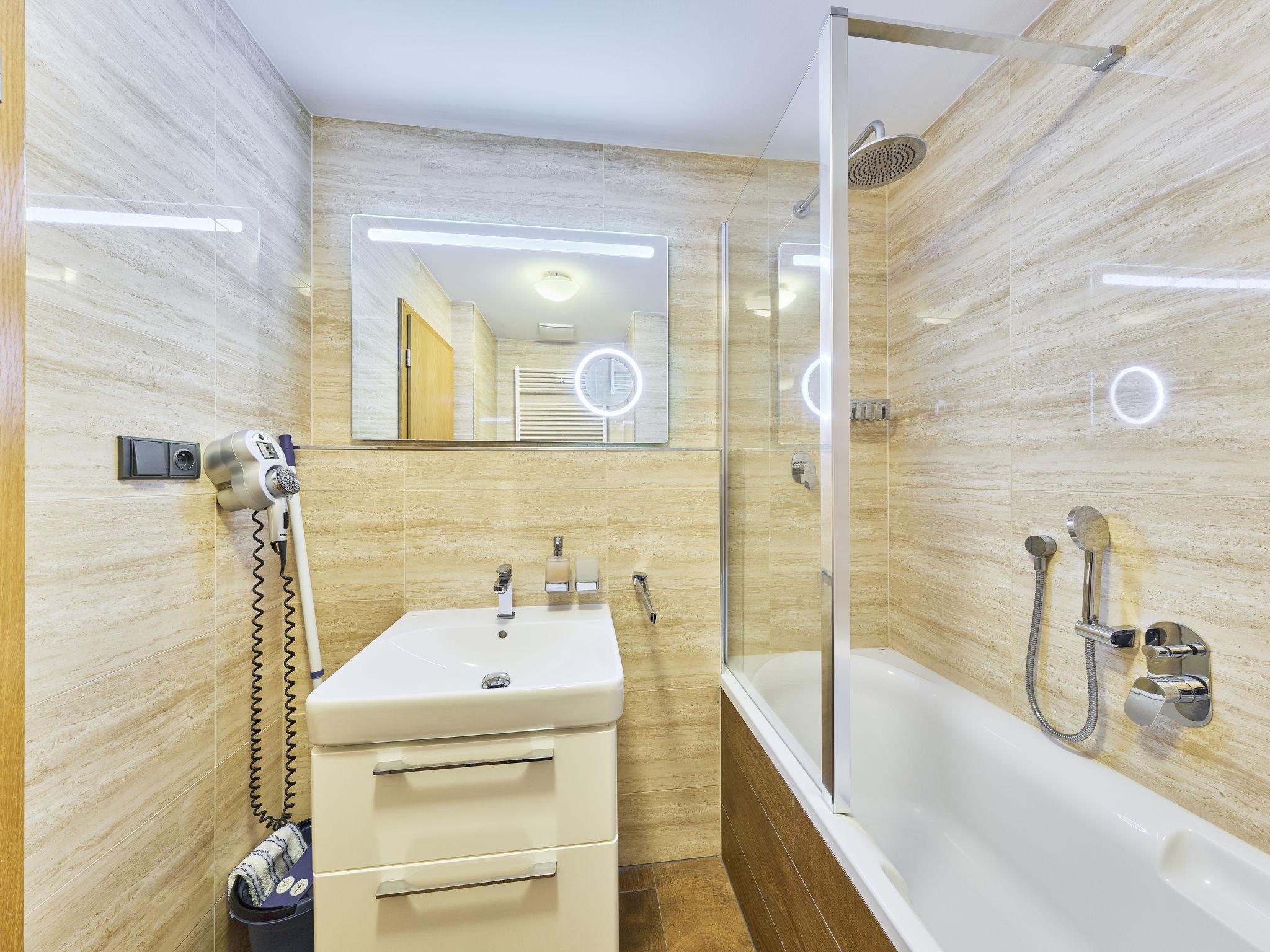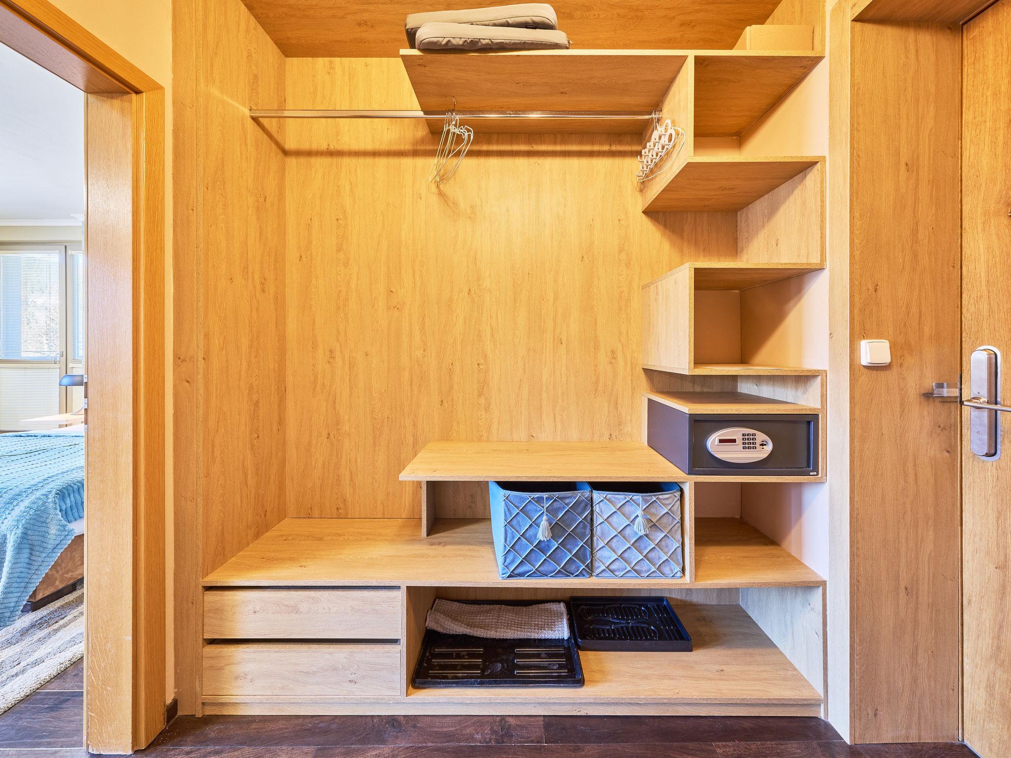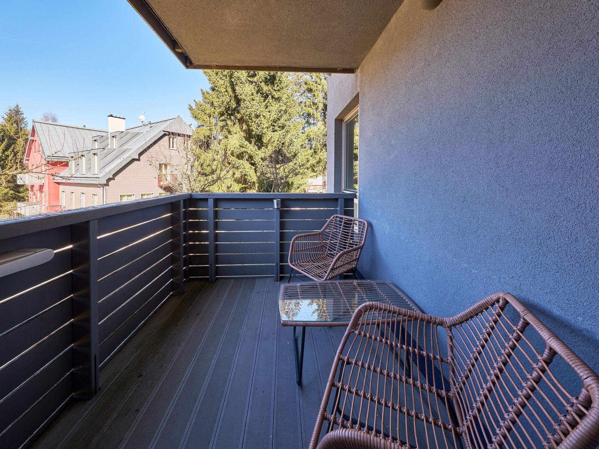 "Harrachov Resident", 1-Zimmer-Studio 40 m2, im Erdgeschoss. Modern und gemütlich eingerichtet: Wohn-/Schlafzimmer mit 1 Doppeldiwanbett, 1 Doppelbett und TV. Kochnische (2 Glaskeramikplatten, Wasserkocher, Mikrowelle, elektrische Kaffeemaschine) mit Esstisch. Bad/WC. Heizung. Grosser Balkon. Balkonmöbel, Abstellkammer. Sicht auf die Skipiste, den Garten und den Wald. Zur Verfügung: Haartrockner. Internet (WLAN, gratis). Parkplatz Nr. 102. Bitte beachten: geeignet für Familien. Nichtraucher-Unterkunft. Rauchmelder.