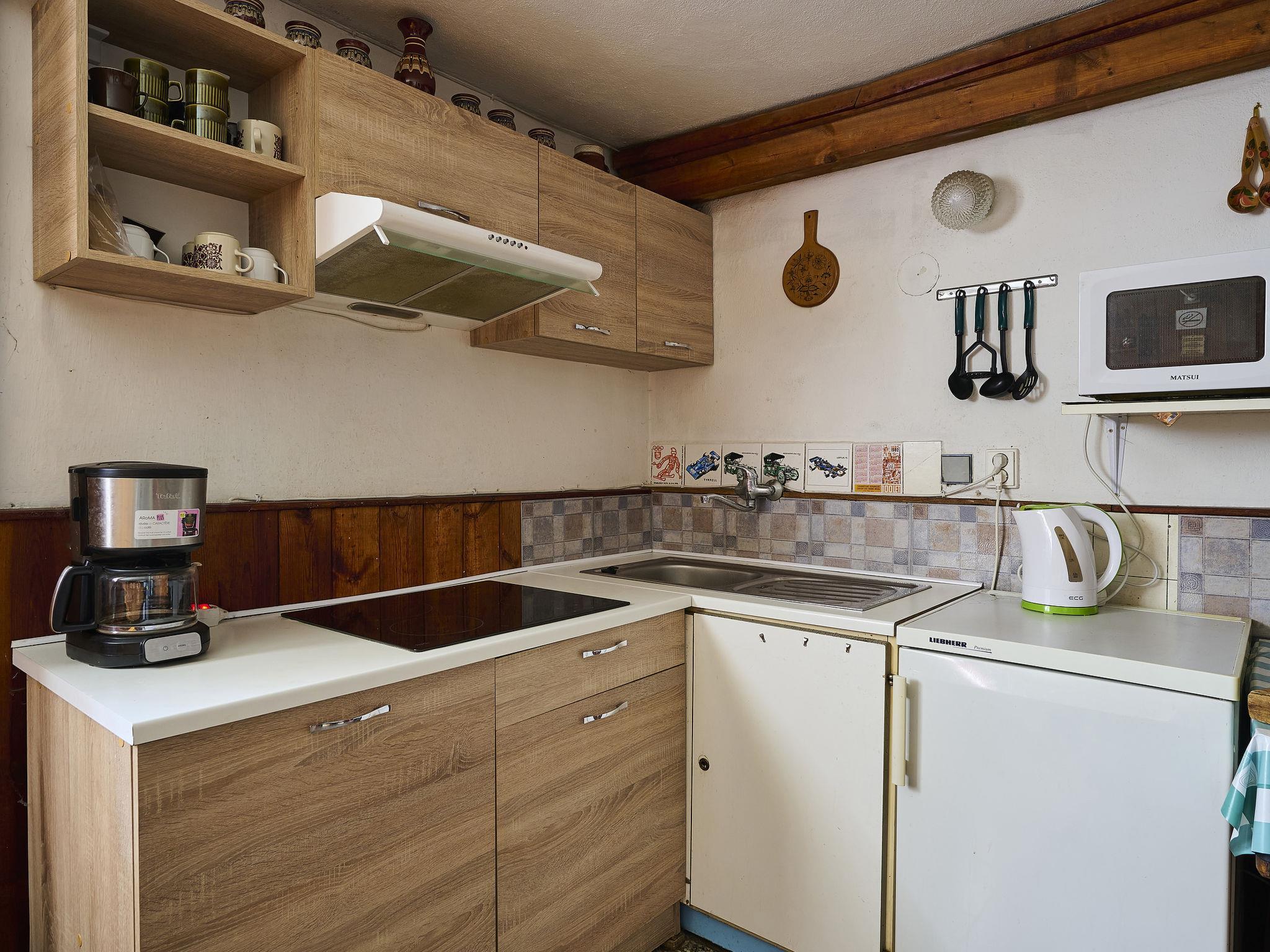 "Nový Svet", 4-Zimmer-Wohnung 120 m2 auf 2 Stockwerken. Renoviert im Jahre 2006, zweckmässig eingerichtet: unteres Geschoss: Wohnküche (4 Glaskeramikplatten, Toaster, Wasserkocher, Mikrowelle, elektrische Kaffeemaschine) mit offenem Kamin, Esstisch, Essecke und Sat-TV. Sep. WC. E-Heizung. Dachgeschoss: 1 abgeschrägtes Zimmer mit 1 Bett, 1 Doppelbett und Sat-TV. Ausgang zum Balkon. 1 abgeschrägtes Zimmer mit 1 Bett, 1 Doppelbett, Dusche/WC und Sat-TV. Ausgang zum Balkon. 1 abgeschrägtes Zimmer mit 1 Doppelbett, Dusche/WC und Sat-TV. Dusche/WC. E-Heizung. Balkon. Balkonmöbel. Sicht auf den Garten. Zur Verfügung: Internet (WLAN, gratis). Bitte beachten: geeignet für Familien. Nichtraucher-Unterkunft. Maximal 1 Haustier/Hund erlaubt.