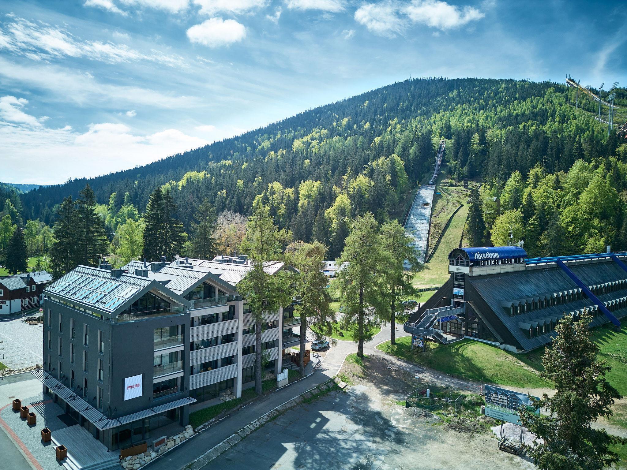 Moderne Residenz. 500 m vom Zentrum von Harrachov, ruhige, sonnige Lage, 600 m vom Waldrand, 600 m vom Skigebiet. Im Hause: Fahrstuhl. Lebensmittelgeschäft, Restaurant 70 m, Bushaltestelle "Harrachov, aut. Nádr." 300 m, Bahnstation "Harrachov" 3.5 km, Freibad 2 km, Thermalbad "Thermy Cieplickie PL" 30 km. Golfplatz (9 Loch) 4.5 km, Tennis 2 km, Tennishalle 2 km, Minigolf, Sessellift, Skipisten, Skiverleih, Skischule, Kinderskischule 600 m, Langlaufloipe 100 m. Nahe gelegene Sehenswürdigkeiten: Expozice Šindelka 400 m, Hornické muzeum 1 km, Mumlavský vodopád, Bobová dráha 1.7 km, Korenov 8 km, Jizerka 15 km, Jablonec nad Nisou 29 km, Termy Cieplickie (PL) 30 km, Liberec 35 km, Ješted 40 km. Bekannte Skigebiete sind gut erreichbar: Harrachov 600 m, Zákoutí 2 km, Rýžovište 3 km, Príchovice 10 km, Rokytnice nad Jizerou 15 km. Wandergebiete: Western City Karpacz(Pl) 40 km, Park miniatury Kowary44km,Karpacz (Pl) 39 km, Giganteria Piechowice(Pl) 23 km.