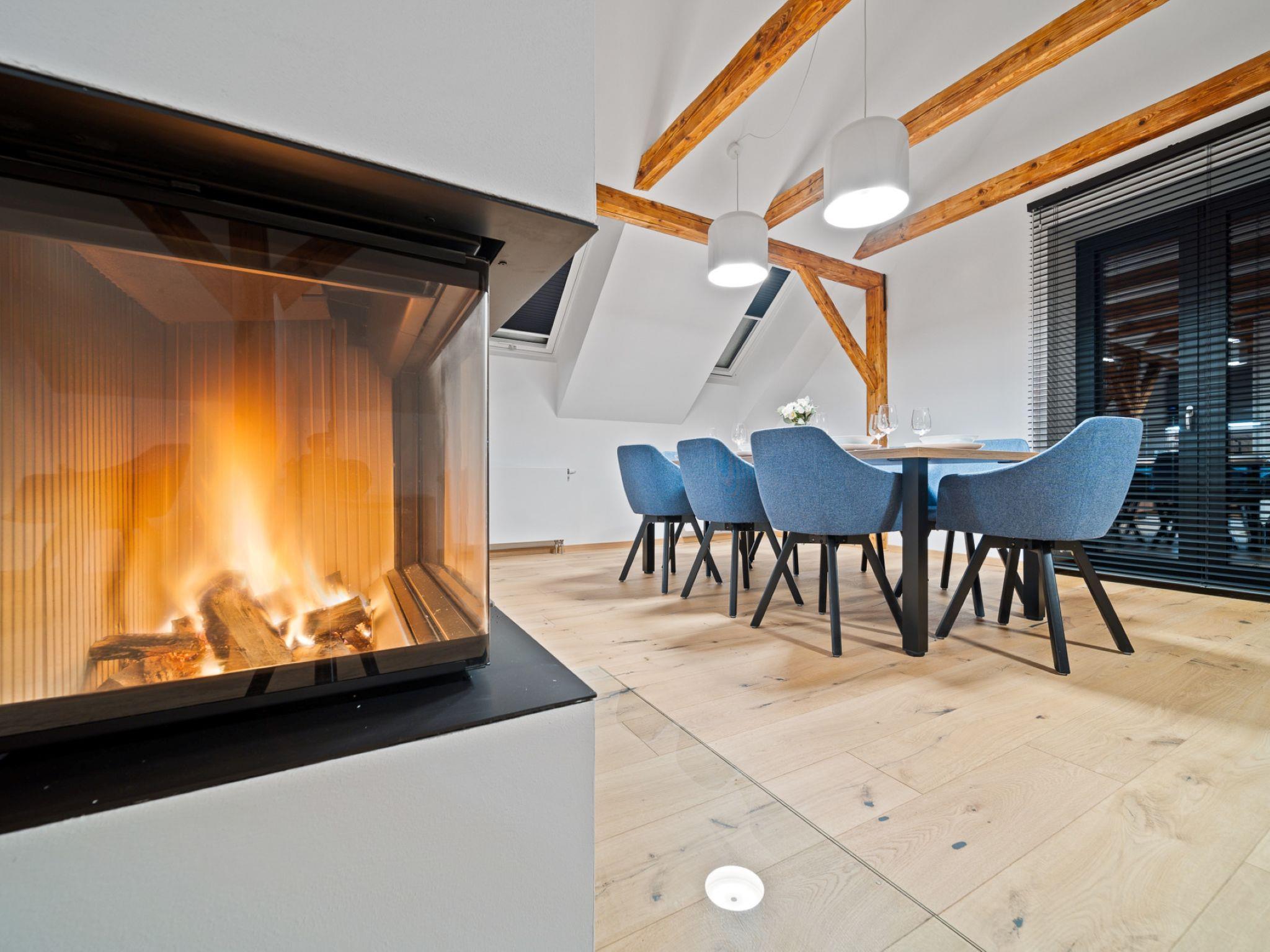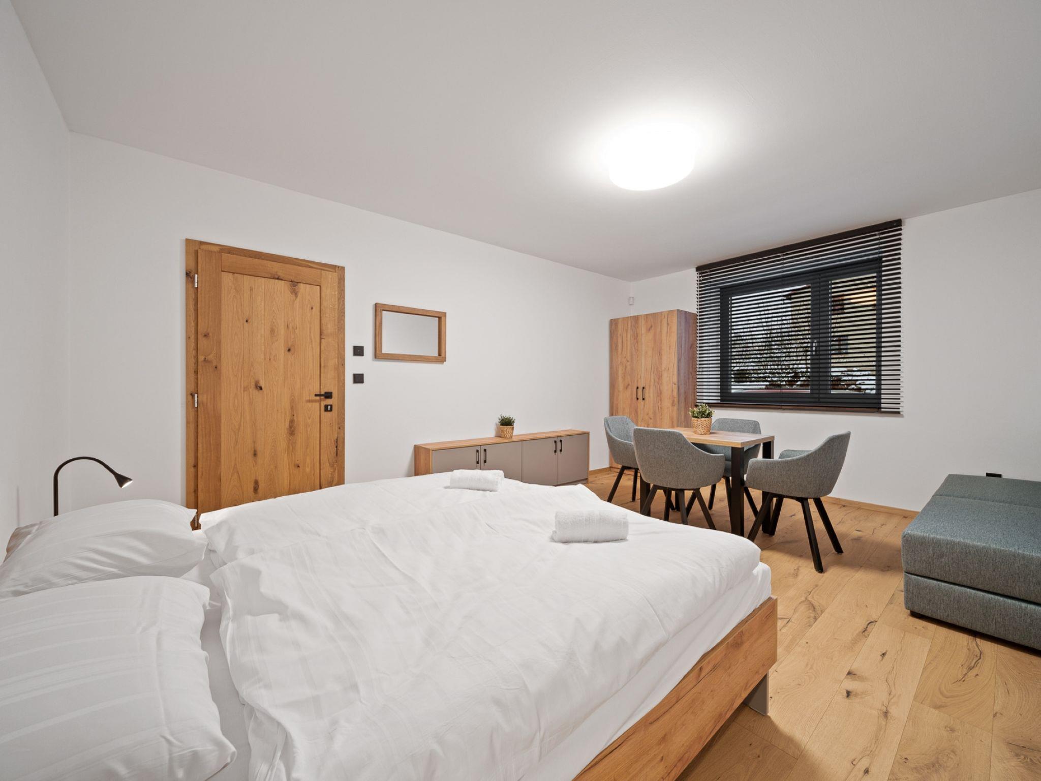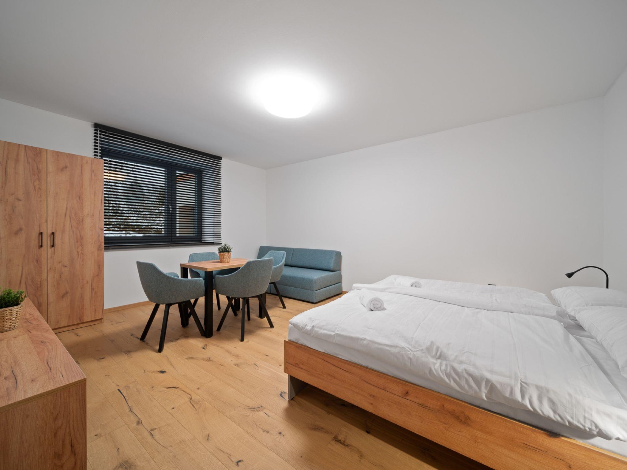 7-Zimmer-Haus auf 2 Stockwerken. Komfortabel und modern eingerichtet: Wohnzimmer mit Schwedenofen und TV. 3 Zimmer, jedes Zimmer mit 1 Bett und 1 Doppelbett. Kochnische (Backofen, 4 Glaskeramikplatten, Wasserkocher, Mikrowelle) mit Esstisch. 3 Duschen/WC. Obergeschoss: 2 Zimmer, jedes Zimmer mit 1 Doppelbett. 1 Zimmer mit 1 Bett und 1 x 2 Etagenbetten. Kochnische (Backofen, 4 Glaskeramikplatten, Wasserkocher, Mikrowelle, elektrische Kaffeemaschine). Dusche/WC, sep. WC. G-Heizung, Holzheizung, Bodenheizung. Terrasse. Terrassenmöbel. Zur Verfügung: Internet (WLAN, gratis). Geeignet für Familien. Maximal 2 Haustiere/Hunde erlaubt.