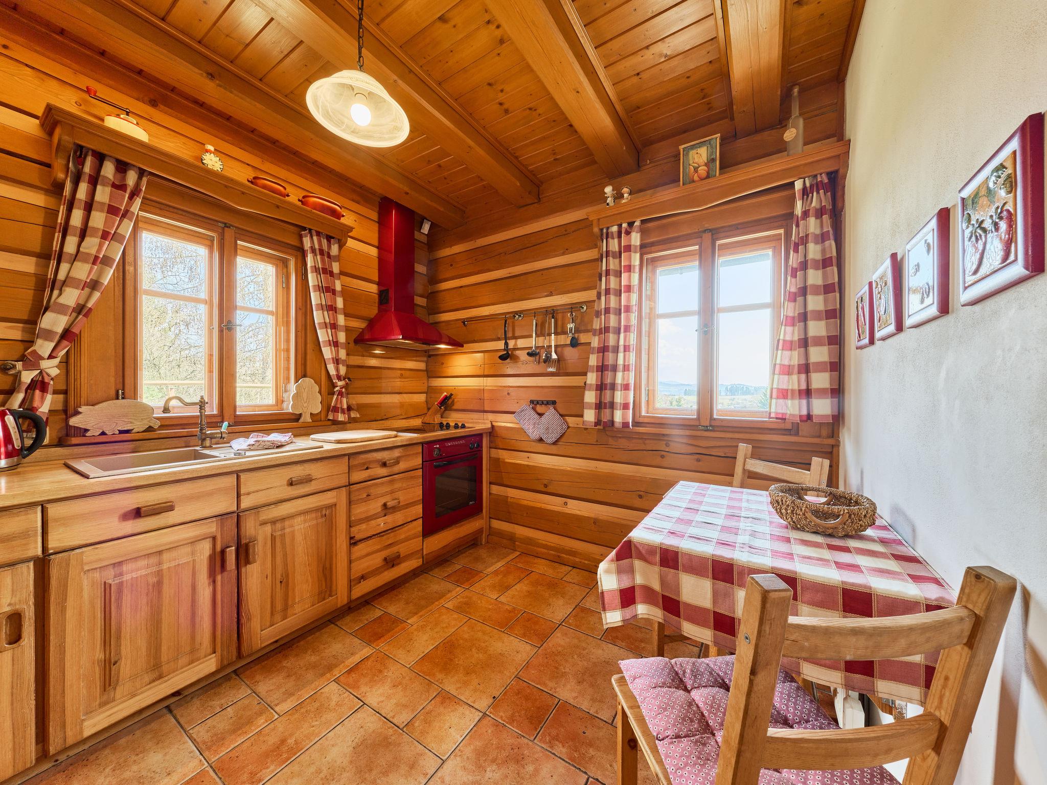 4-Zimmer-Landhaus 120 m2 auf 2 Stockwerken. Sehr komfortabel und mit viel Holz eingerichtet: Wohn-/Esszimmer mit 1 Diwanbett, Esstisch, Digital-TV, Radio und Kachelofen. Küche (Backofen, Geschirrspüler, 4 Glaskeramikplatten, Toaster, Wasserkocher, Mikrowelle, Tiefkühler, elektrische Kaffeemaschine) mit Esstisch. Bad/WC. E-Heizung. Obergeschoss: 1 Zimmer mit 2 Betten. 1 Zimmer mit 3 Betten und 1 Ausziehbett. 1 Zimmer mit 2 Betten. Dusche/WC, Hydromassage-Dusche. Terrassenmöbel. Sicht auf die Berge, den Garten und den Wald. Zur Verfügung: Waschmaschine, Sauna, Babybett, Haartrockner. Internet (WLAN, gratis). Bitte beachten: geeignet für Familien. Nichtraucher-Unterkunft. Maximal 2 Haustiere/Hunde erlaubt. Feuerlöscher. Kaffeemaschinen: Kapsel-, Espressomaschine (Hebelmaschine), Filterkaffeemaschine. Duschkabine (Dampfbad mit Radio). Whir.