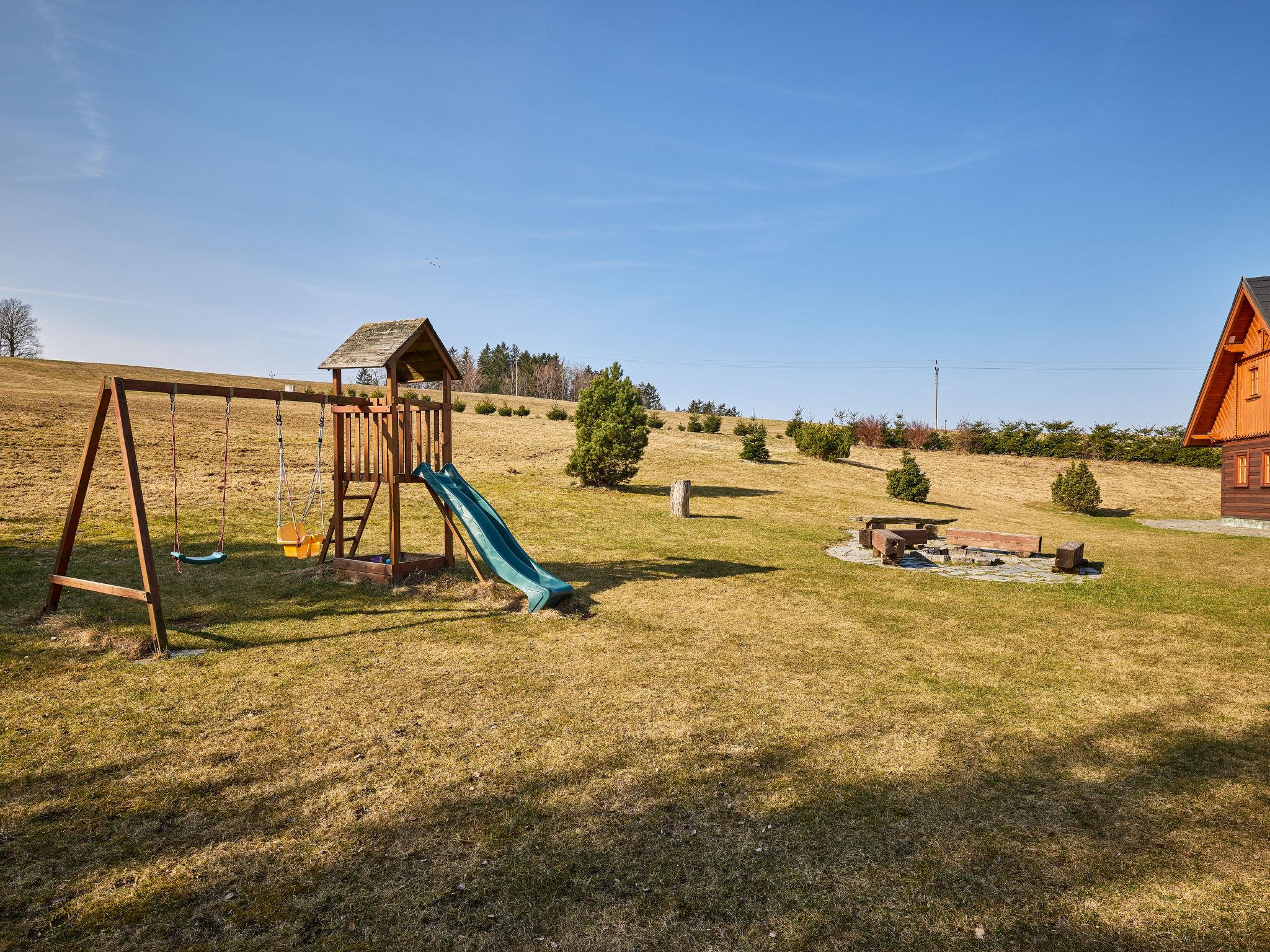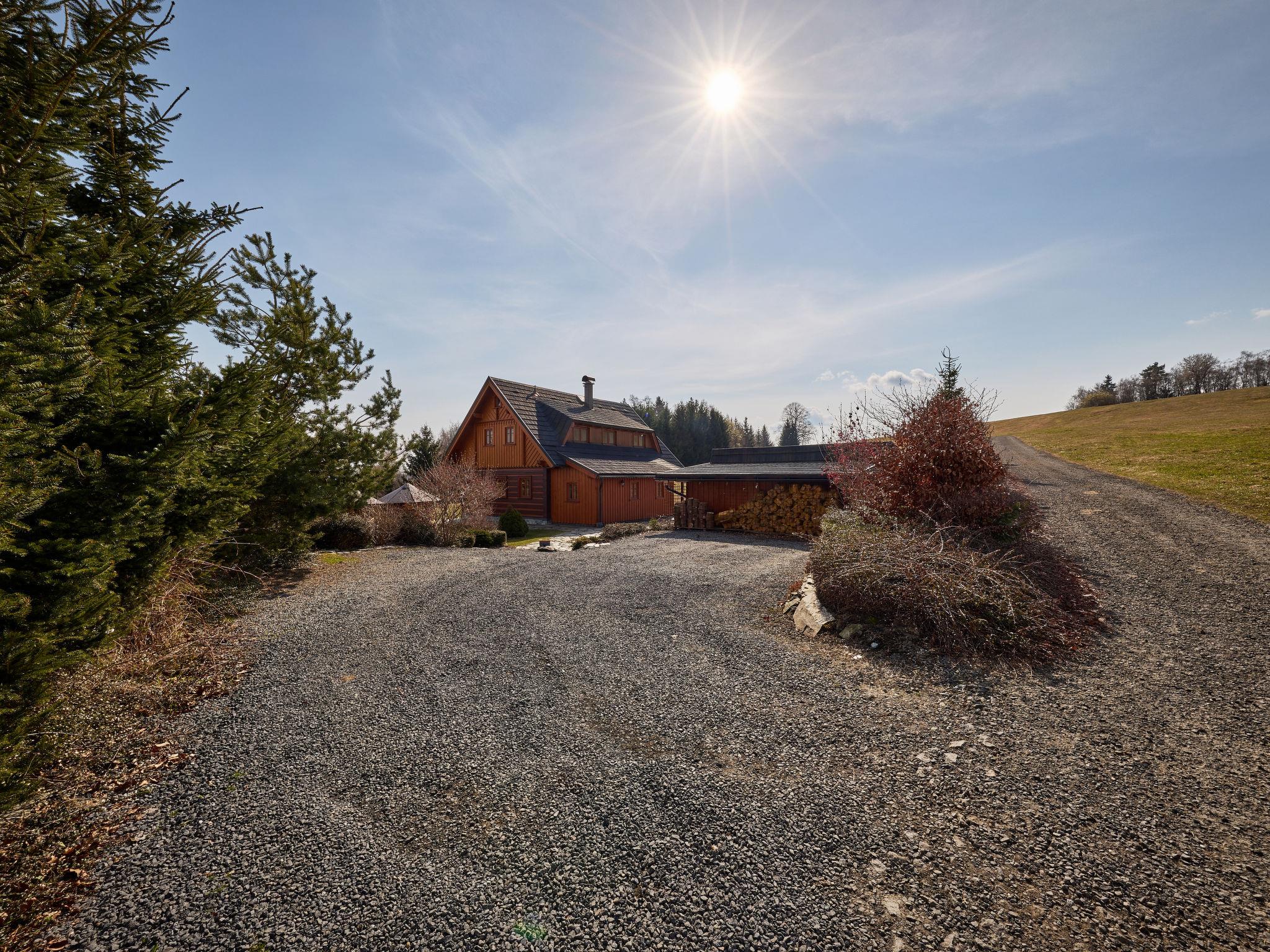 Grosses, schönes, luxuriöses Holzhaus "Timber Lodge with Hydromassage", Baujahr 2015. 500 m vom Zentrum von Jílové u Držkova, alleinstehende, ruhige, sonnige Lage auf einem Hügel. Bäumen. Zur Alleinbenutzung: grosser Garten (nicht eingezäunt) Bäumen, Naturgarten 2'000 m2, Liegewiese. Sprudelbad, Terrasse, Gartenmöbel, Grill, Feuerstelle, Kinderspielplatz. Im Winter bitte Schneeketten mitbringen. Parkplatz (für 5 Autos) beim Haus. Einkaufsgeschäft 3 km, Restaurant 600 m, Bushaltestelle "Jílové u Držkova" 400 m, Bahnstation "Návarov" 3.5 km, Thermalbad "Termy Cieplickie PL" 50 km, Naturbadeteich 300 m. Golfplatz (9 Loch) 20 km, Minigolf 14 km, Skilift 6 km, Skiverleih 6 km, Langlaufloipe 6 km. Nahe gelegene Sehenswürdigkeiten: Návarov 5 km, Šibenák 6 km, Železný Brod 8 km, Bozkovské jeskyne 10 km, Malá Skála 20 km, Pencín 6 km. Bekannte Skigebiete sind gut erreichbar: Kozákov 16 km, Zásada 6 km, Vysoké nad Jizerou 13 km. Bekannte Seen in der Umgebung sind gut erreichbar: lom Jílové 300 m. Wandergebiete: Návarov 5 km, Semily Riegrova stezka 12 km, Palackého stezka 5 km. Bitte beachten: geeignet für Familien. Der Besitzer akzeptiert keine Jugendgruppen.