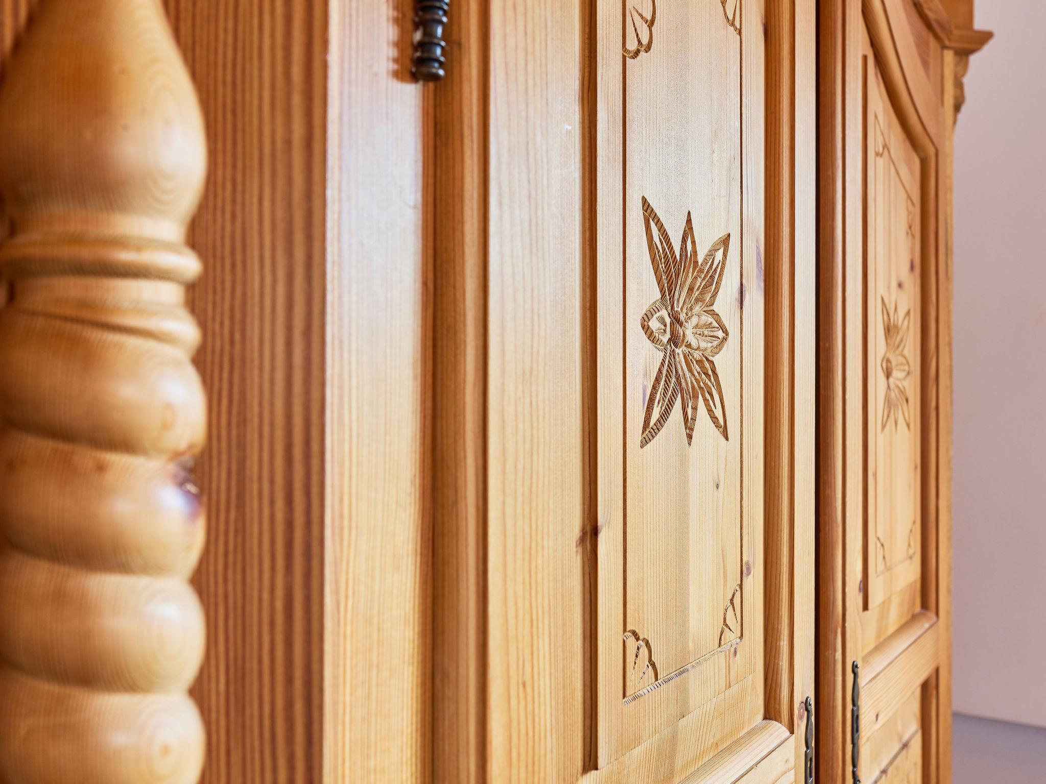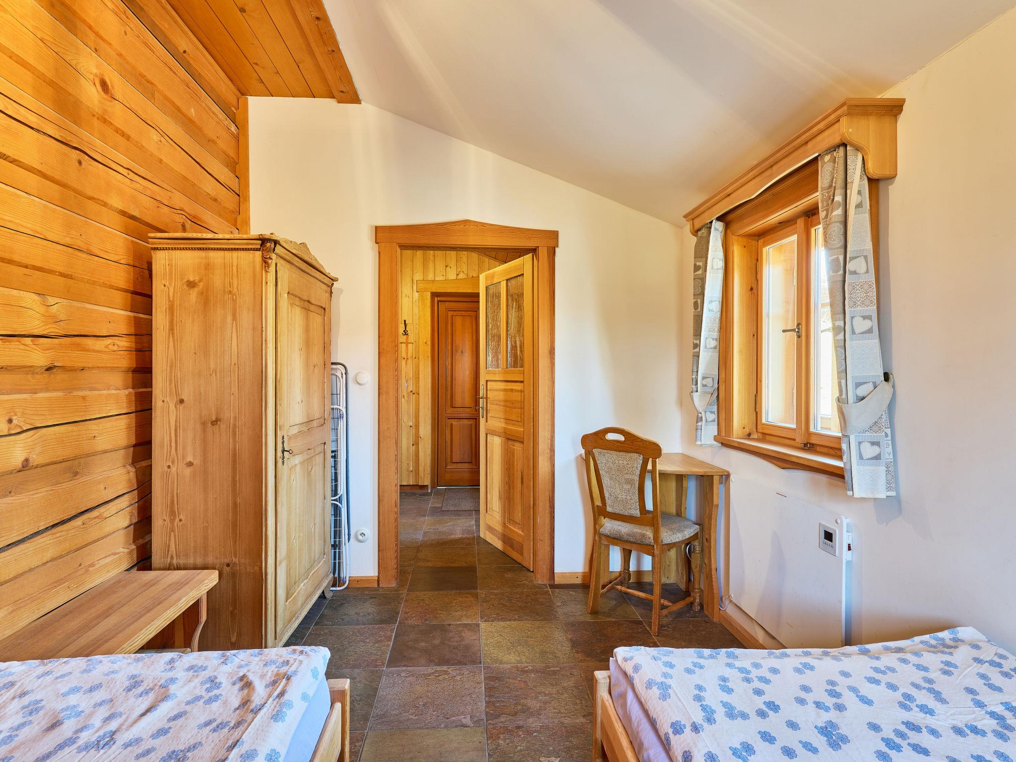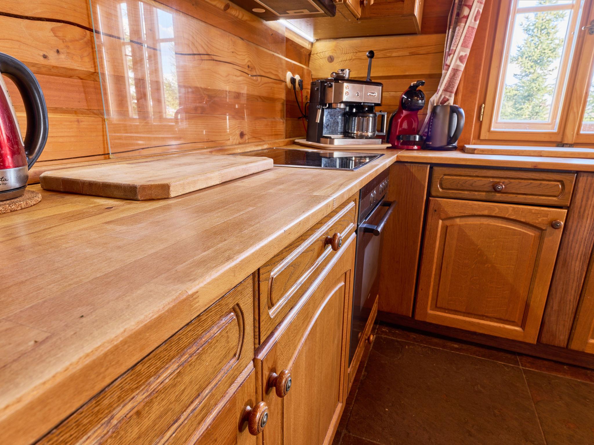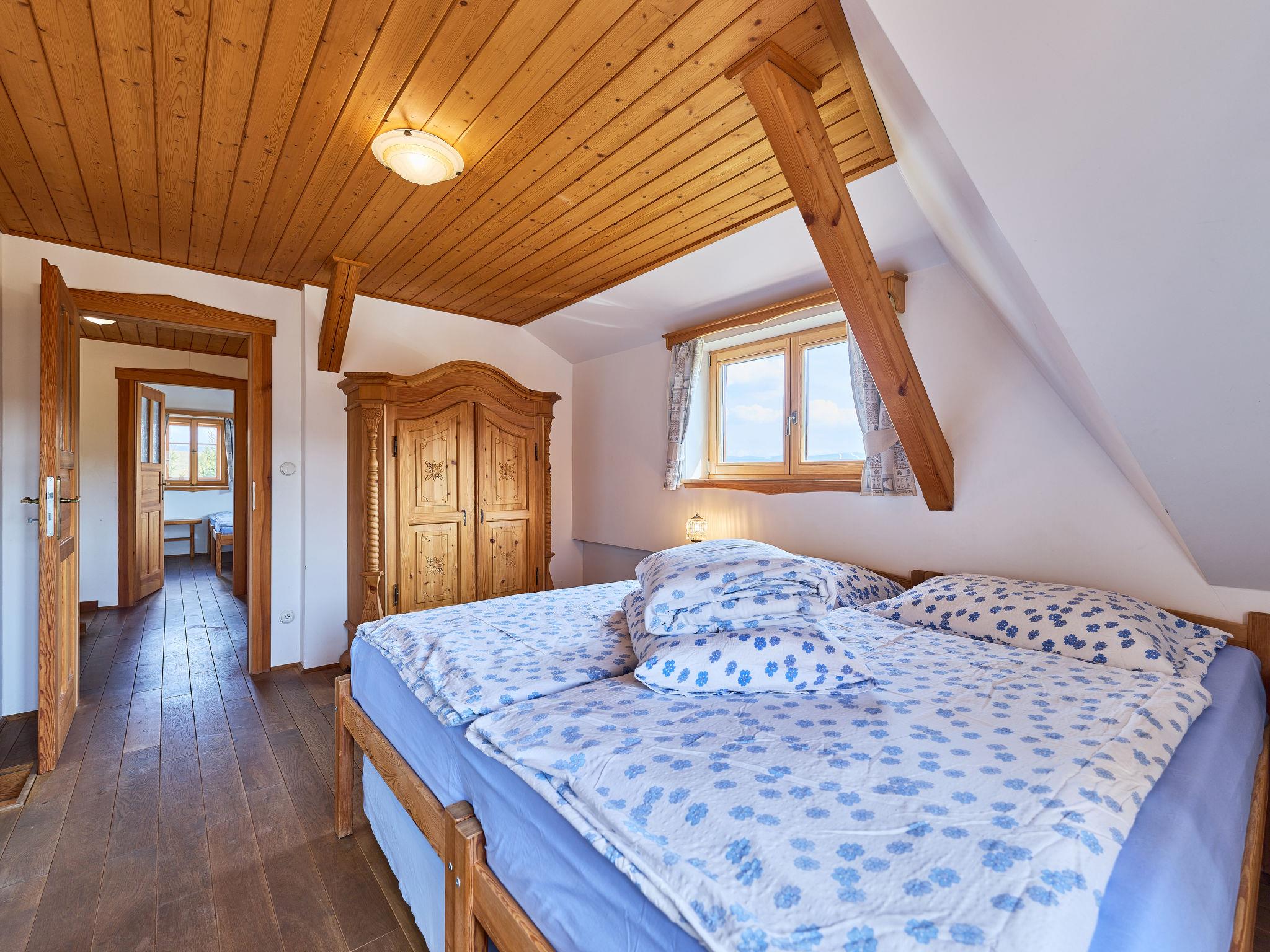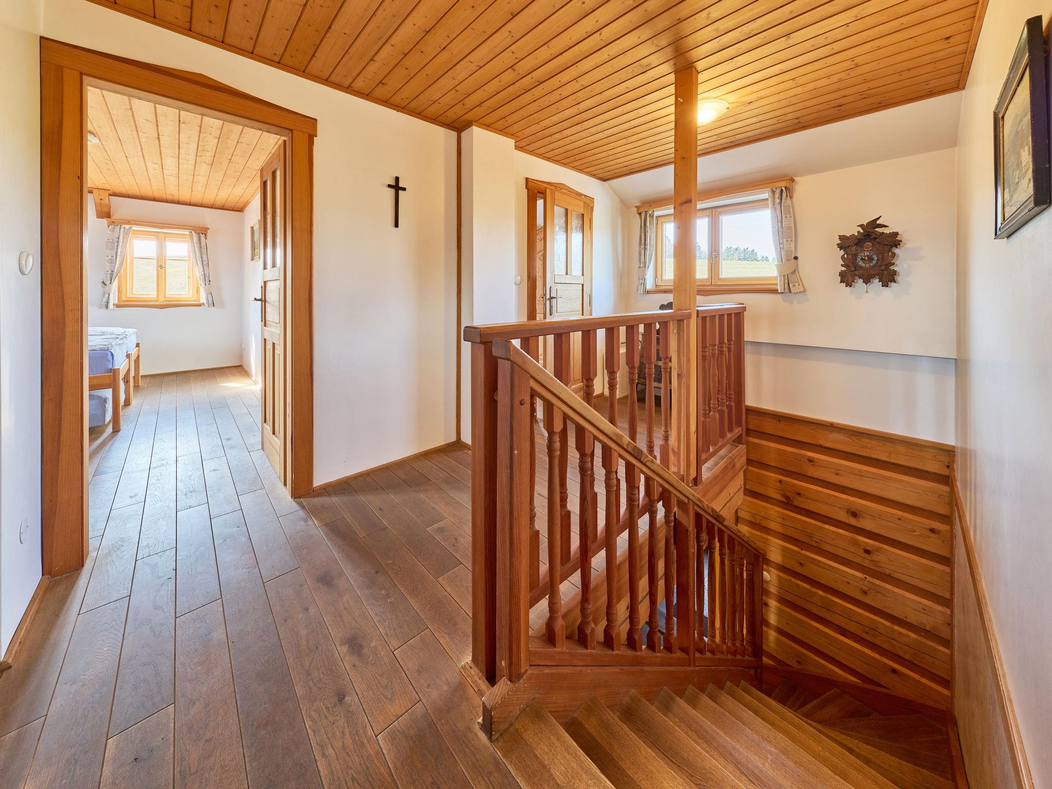 5-Zimmer-Landhaus 170 m2 auf 2 Stockwerken. Sehr komfortabel eingerichtet: grosses Wohnzimmer mit 1 Diwanbett, Digital-TV, Radio und Kachelofen. Ausgang zur Terrasse. 1 Zimmer 15 m2 mit 2 Betten. Grosse Küche 25 m2 (Backofen, Geschirrspüler, 4 Glaskeramikplatten, Toaster, Wasserkocher, Mikrowelle, Tiefkühler, elektrische Kaffeemaschine, Kapseln für die Kaffeemaschine (Dolce Gusto)) mit Esstisch. Dusche/WC, Hydromassage-Dusche. Fussbodenheizung. Obergeschoss: 1 Zimmer 15 m2 mit 3 Betten. 1 Zimmer 28 m2 mit 4 Betten und 1 Ausziehbett. (steile Treppe) abgeschrägte, offene Galerie mit 2 Schlafmöglichkeiten. 1 Zimmer 15 m2 mit 3 Diwanbetten und 1 Doppelbett. Bad/WC, Whirlbadewanne. Heizung. Panoramasicht auf die Berge, den Garten, den Wald und das Städtchen. Zur Verfügung: Waschmaschine, Babybett, Haartrockner. Internet (WLAN, gratis). Bitte beachten: geeignet für Familien. Nichtraucher-Unterkunft. Maximal 2 Haustiere/Hunde erlaubt. Feuerlöscher. Anstelle eines abgeschlossenen Schlafzimmers befinden sich manche Schlafplätze in einem offenen Bereich (Galerie, Nische etc.).