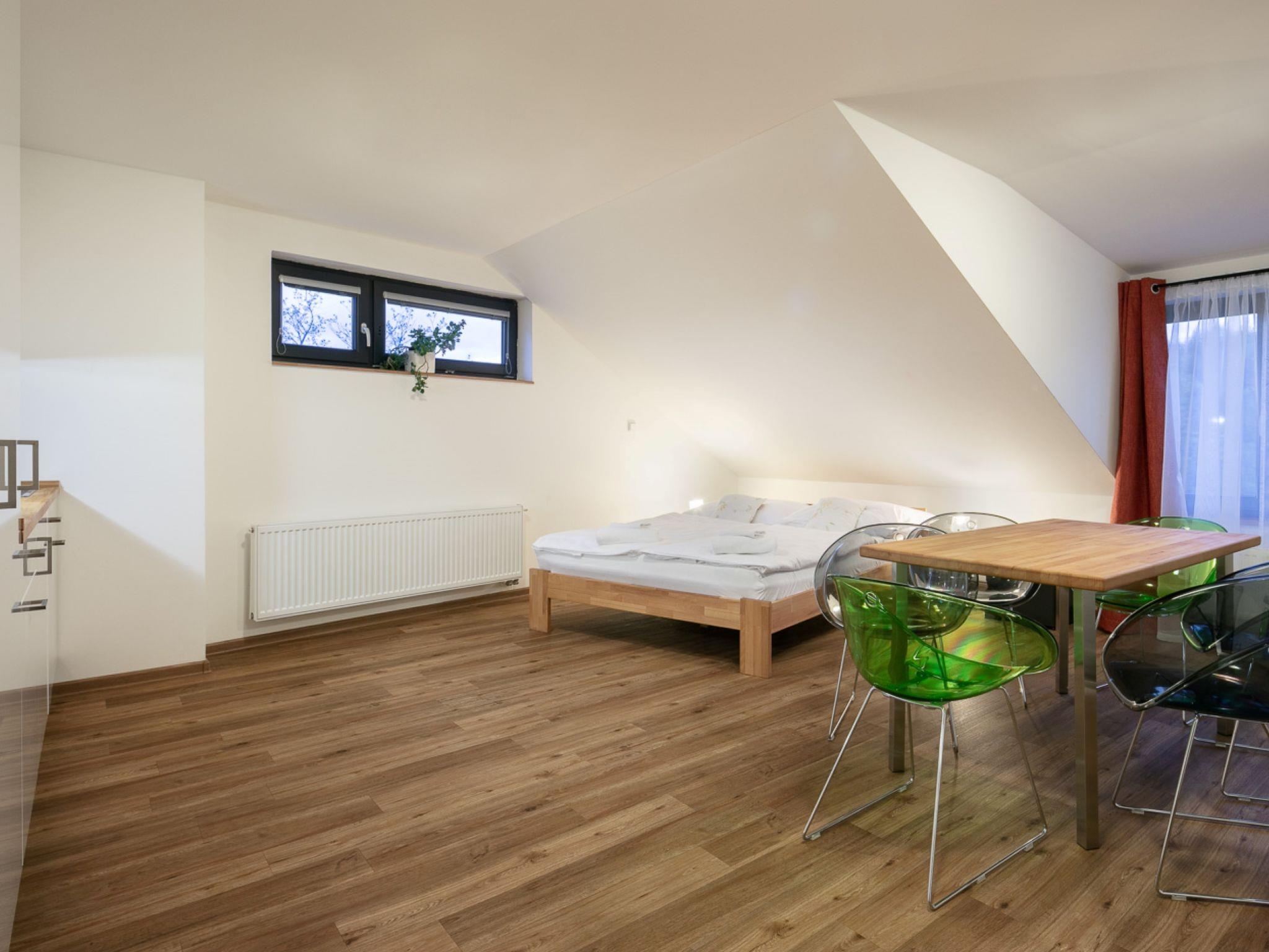 "U Kabinky 4+2", 2-Zimmer-Wohnung 55 m2 im 3. Stock. Wohnzimmer mit 1 Doppelbett und TV. 1 Zimmer mit 1 Doppeldiwanbett und 1 Doppelbett. Kochnische (2 Kochplatten, Wasserkocher, Mikrowelle) mit Esstisch. Dusche/WC. Schöne Sicht auf die Landschaft. Zur Verfügung: Internet (Wireless LAN, gratis). Bitte beachten: geeignet für Familien. Nichtraucher-Unterkunft.