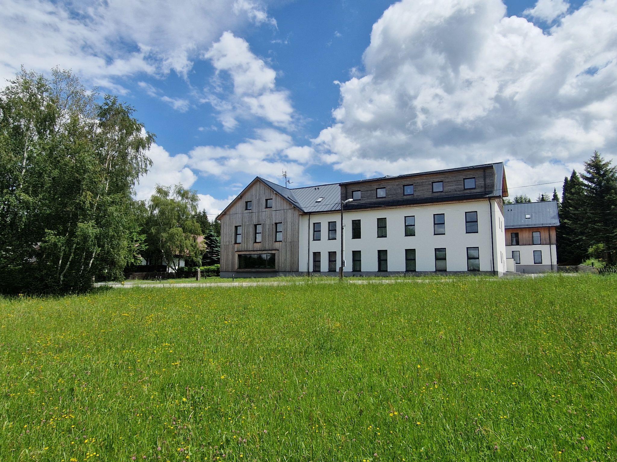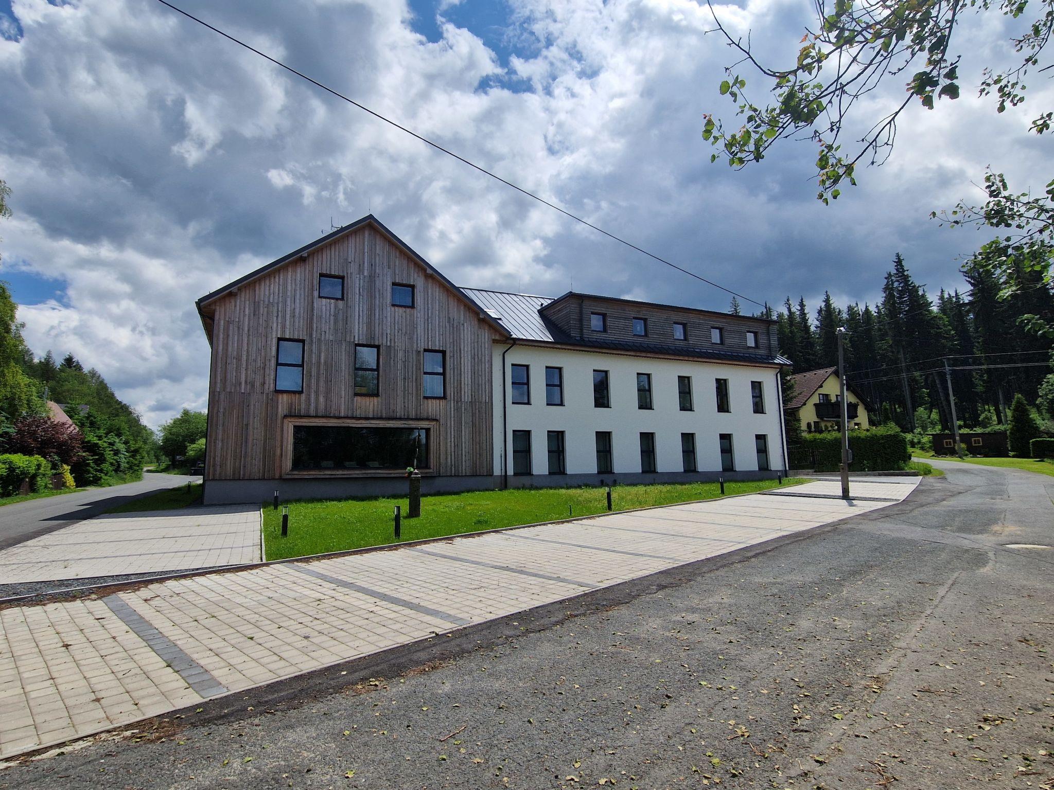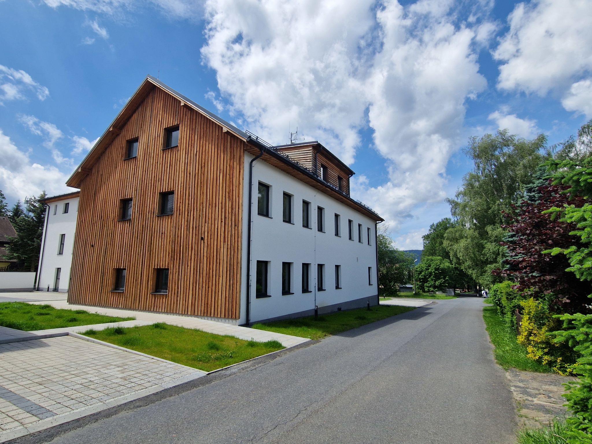 Javorná 7 km von Cachrov: Modernes Appartementhaus auf 3 Stockwerken, renoviert im Jahre 2022. 1.5 km vom Skigebiet. Zur Mitbenutzung: Grundstück. Im Hause: Einstellraum für Fahrräder, Skiraum, Zentralheizung. Parkplatz beim Haus. Lebensmittelgeschäft 500 m, Restaurant 1.5 km, Bushaltestelle "Cachrov, Javorná, prodejna" 1.3 km. Wanderwege ab Haus 100 m, Radweg 100 m, Skilift 1.5 km, Skipisten 1.5 km, Skiverleih 1.5 km, Skischule 1.5 km, Langlaufloipe 500 m, Kinderspielplatz 1.5 km. Nahe gelegene Sehenswürdigkeiten: Muzeum Šumavy, lanové centrum 15 km, Localbahnmuseum Bayerisch Eisenstein 18 km, Rozhledna Špicák 19 km, Hojsova Stráž 26 km, Prášily 25 km, Vodopád Bílá strž 27 km, Velhartice 15 km, Klatovy, Sušice, 28 km, hrady Kašperk 30 km, Kašperské Hory 35 km. Bekannte Skigebiete sind gut erreichbar: Javorná 1.5 km, areál Samoty, Belveder, Pancír, Špicák 14 km, Grosser Arber/Velký Javor (DE) 25 km. Bekannte Seen in der Umgebung sind gut erreichbar: Certovo jezero 18 km, Cerné jezero 18 km, Vodní nádrž Nýrsko 25 km. Wandergebiete: Národní park Šumava, Národní park Bavorský les (DE).