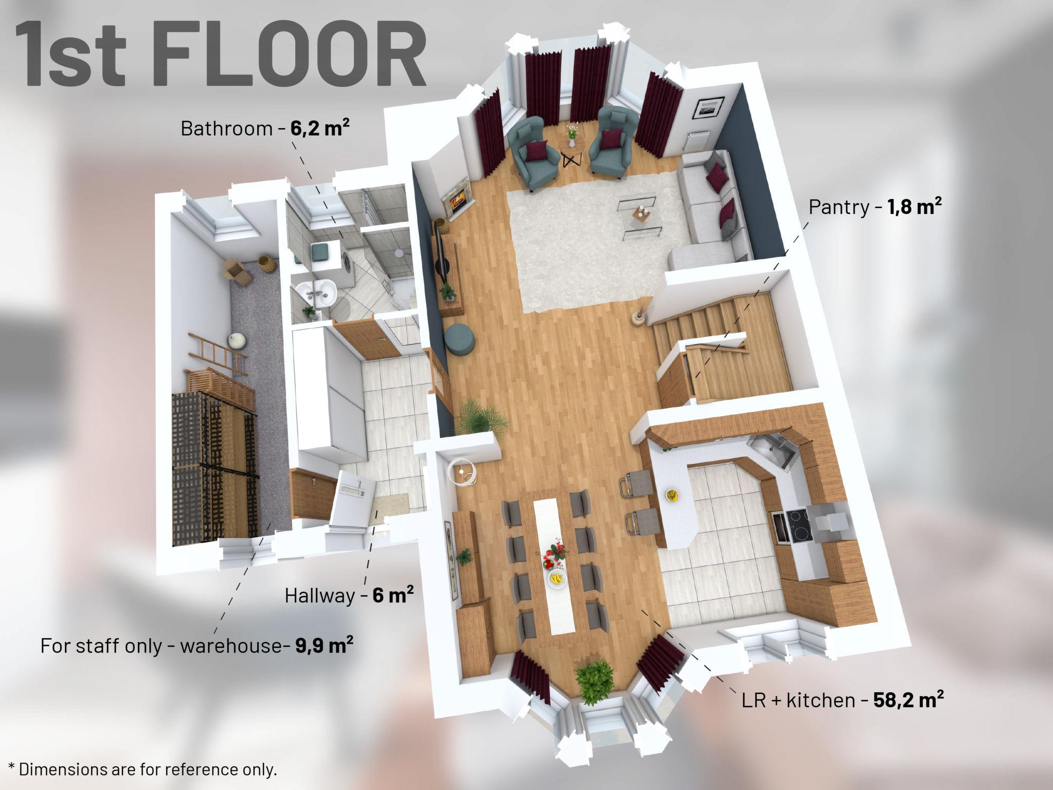 "Garden & Terrace Villa", 5-Zimmer-Villa 260 m2 auf 2 Stockwerken. Geräumig und hell, renoviert, sehr komfortabel und schön eingerichtet: Eingang. Offenes grosses Wohn-/Esszimmer mit 1 Doppeldiwanbett und offenem Kamin (nur Deko), Esstisch und TV. Ausgang zur Terrasse. Kochnische (Backofen, Geschirrspüler, 4 Glaskeramikplatten, Toaster, Wasserkocher, Mikrowelle). Dusche/WC. Obergeschoss: 1 Zimmer mit 1 Doppelbett (180 cm). Ausgang zum Balkon. 1 Zimmer mit 1 Doppelbett (180 cm). Ausgang zum Balkon. 1 Zimmer mit 1 franz. Bett (140 cm). Ausgang zum Balkon. 1 grosses Zimmer mit 1 Doppelbett (180 cm), TV. Bad/Bidet/WC, Doppelwaschbecken. 2 Balkone, Terrasse. Terrassenmöbel, Gartengrill (mobil). Zur Verfügung: Waschmaschine, Bügeleisen, Kinderhochstuhl, Babybett, Haartrockner. Internet (WLAN, gratis). Parkplatz (eingezäunt, 2 Autos), Garage. Bitte beachten: geeignet für Familien. Rauchmelder, Feuerlöscher.