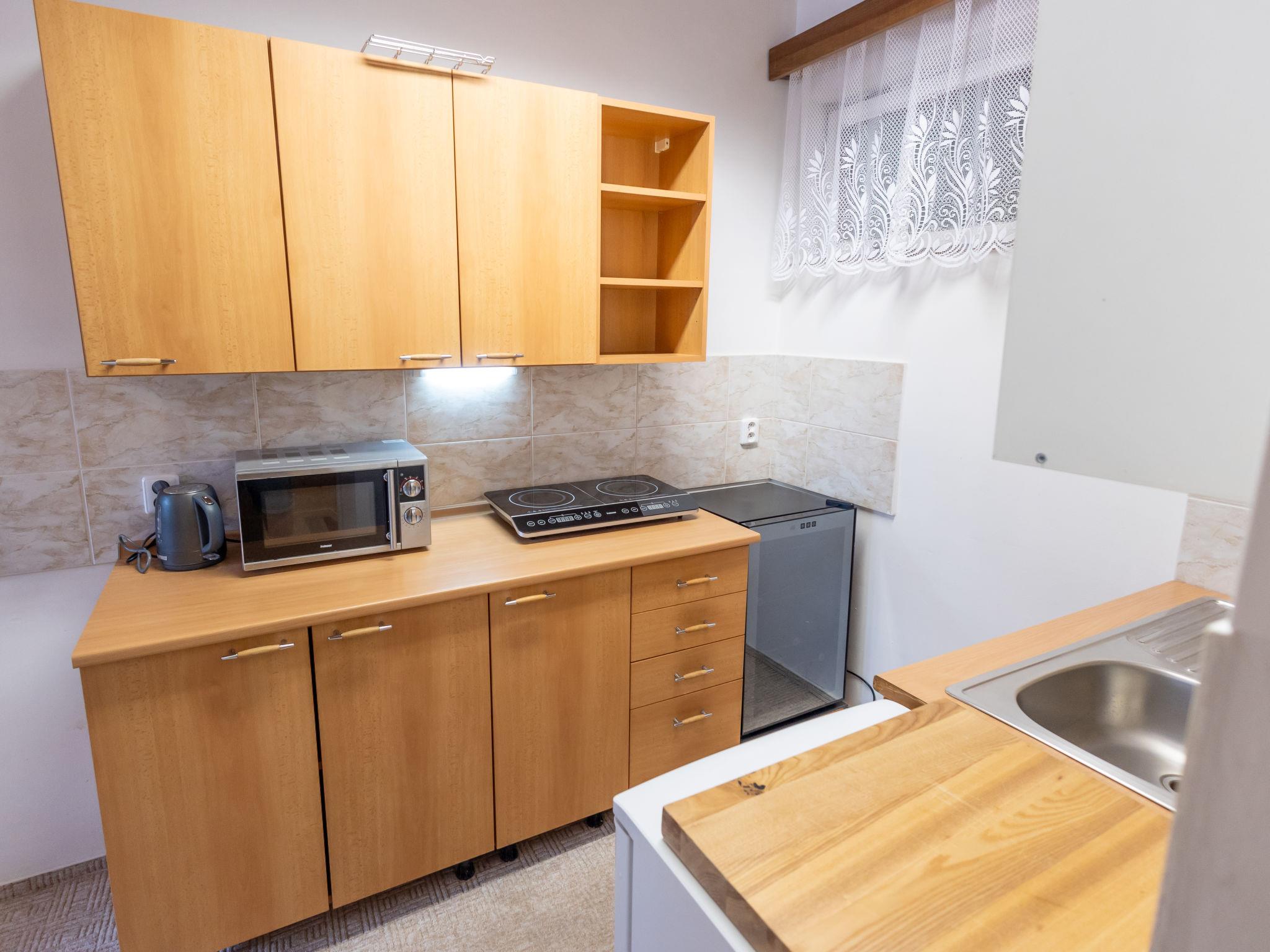 "Zimorský domek", 2-Zimmer-Haus auf 2 Stockwerken. Offenes Wohn-/Schlafzimmer mit 1 Doppelbett, Esstisch und TV. Kleine Küche (2 Kochplatten, Wasserkocher, Mikrowelle). Dusche/WC. Obergeschoss: Wohn-/Schlafzimmer mit 1 Doppelbett und TV. Kleine Küche (2 Kochplatten, Wasserkocher, Mikrowelle). Dusche/WC. E-Heizung. Zur Verfügung: Internet (WLAN). Geeignet für Familien.