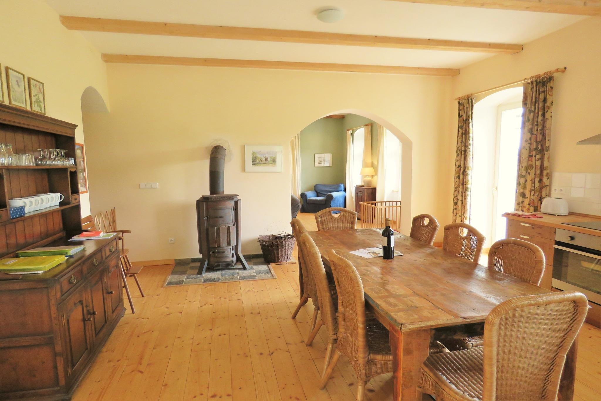 Willkommen in diesem charmanten Ferienhaus in der malerischen Region Milíre in Westböhmen. Dieses geräumige Refugium eignet sich perfekt für Familien oder Gruppen mit bis zu 8 Gästen und bietet ein gemütliches Wohnzimmer mit Kamin, DVD-Player und Sitzecke für entspannte Abende. Die offene Küche ist komplett mit modernen Geräten ausgestattet, darunter Kaffeemaschine, Geschirrspüler, Backofen, Mikrowelle und ein großer Esstisch für 8 Personen - ideal für gemeinsame Mahlzeiten. Gartentüren führen auf eine private Terrasse und in den Garten, wo Sie entspannen oder mit Freunden und Familie grillen können. Im Obergeschoss befinden sich vier komfortable Schlafzimmer mit jeweils zwei Einzelbetten - ideal für Gruppen, die Privatsphäre und Komfort suchen. Das Haus verfügt über zwei Badezimmer - eines mit Dusche und WC, das andere mit Badewanne - und ein zusätzliches separates WC für zusätzlichen Komfort. Familien mit Kindern freuen sich über den Sandkasten, das Kinderbett, den Hochstuhl und den Laufstall, die auf Anfrage zur Verfügung stehen. Nur 7 km vom Stadtzentrum von Tachov entfernt und umgeben von wunderschönen Wäldern und Seen bietet dieses Haus einfachen Zugang zu Restaurants, Geschäften und Outdoor-Aktivitäten. Öffentliche Verkehrsmittel sind in der Nähe und Parkplätze stehen vor Ort zur Verfügung, sodass ein komfortabler und unvergesslicher Aufenthalt im Herzen Westböhmens gewährleistet ist.
