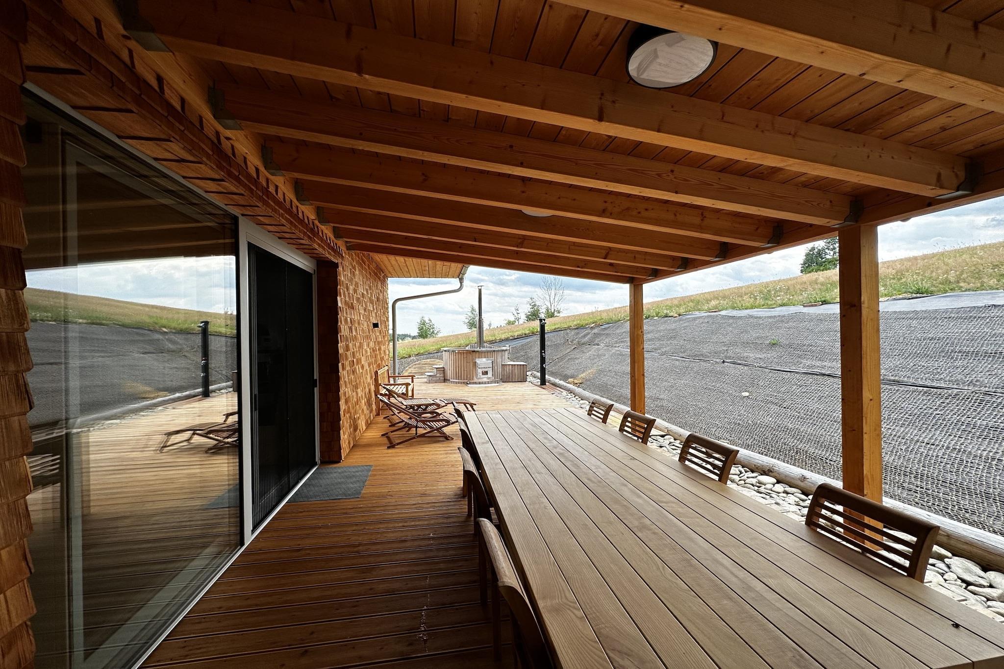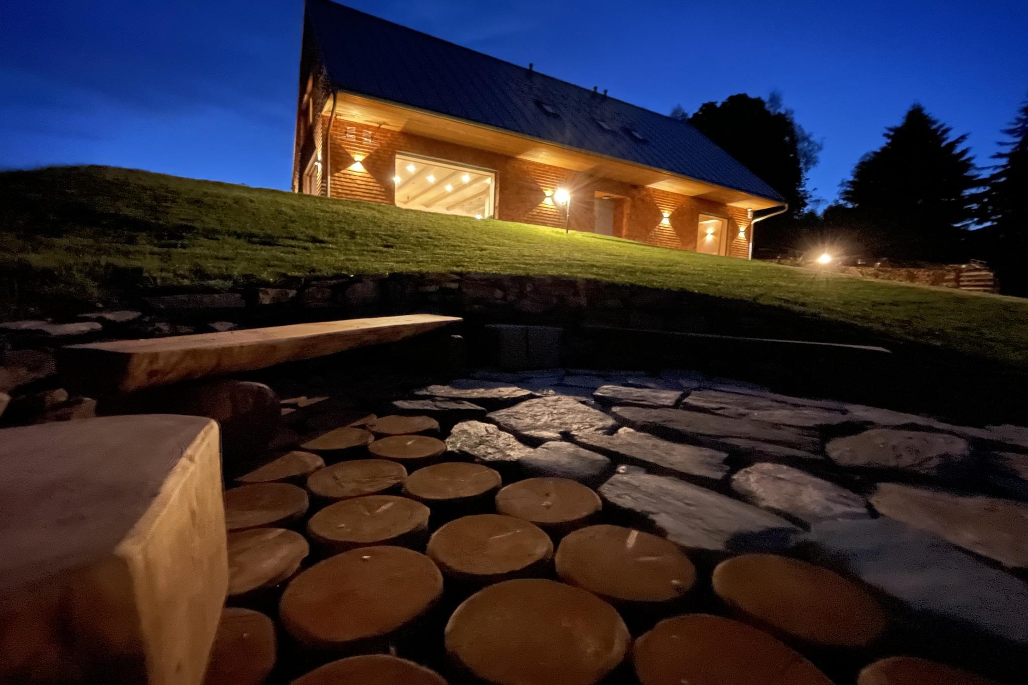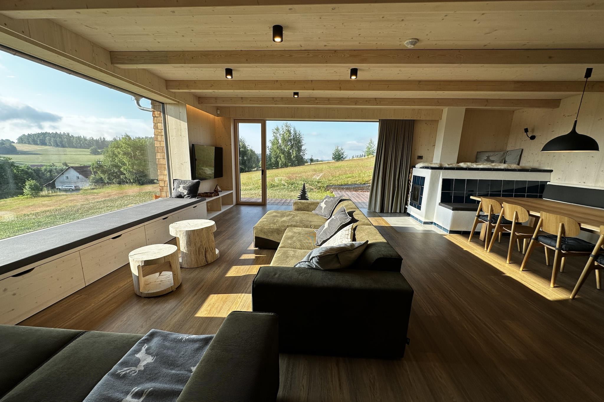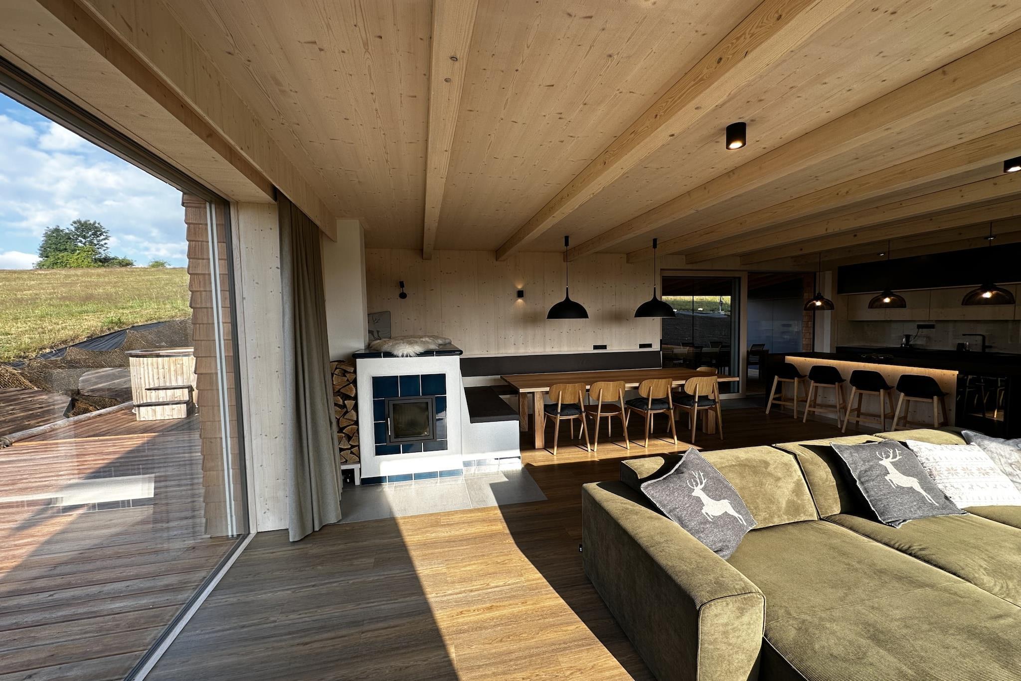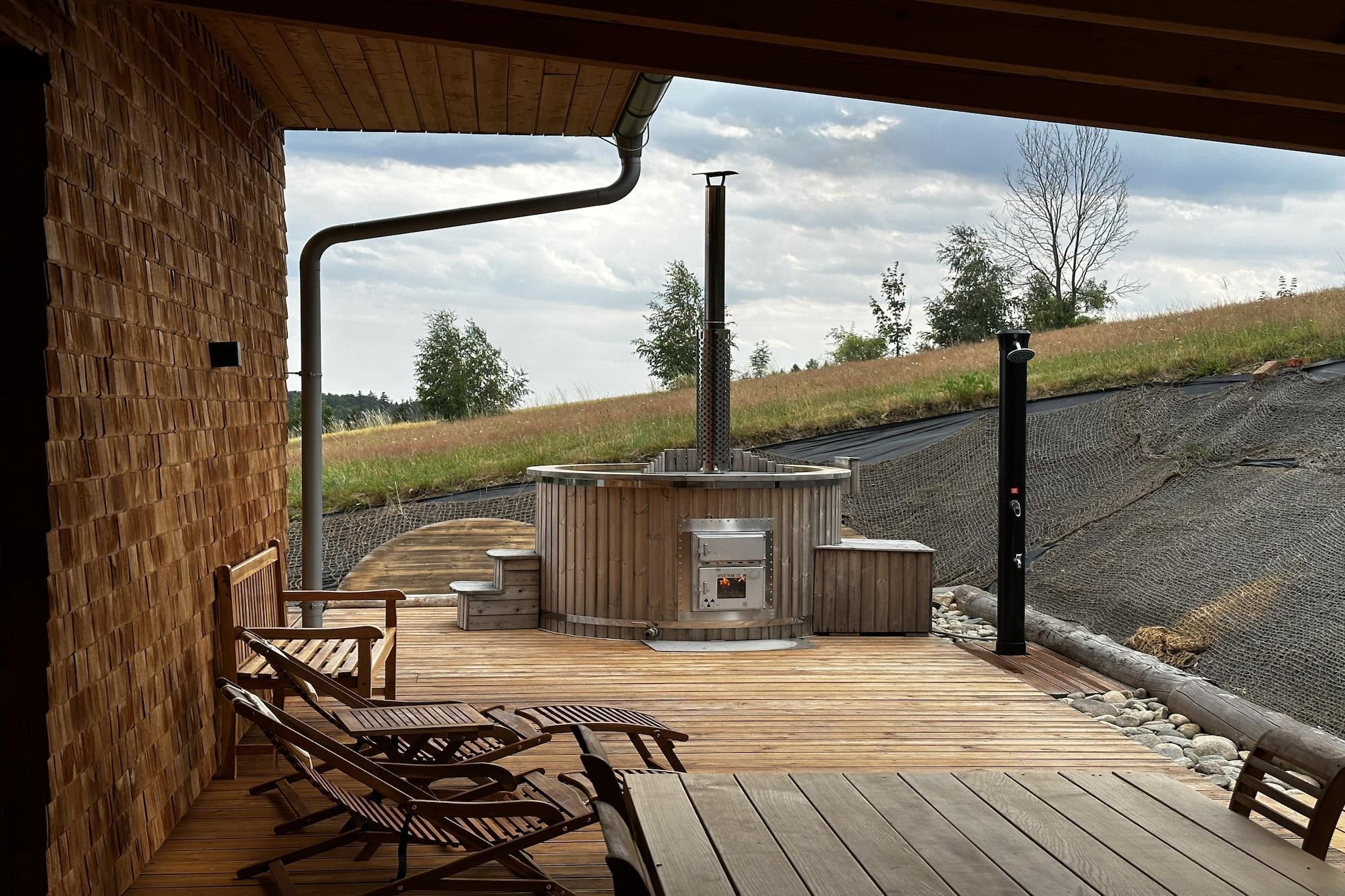 Im charmanten Dorf Roprachtice in der Region Liberec liegt ein wunderschönes Ferienhaus, das Natur und Handwerkskunst verbindet. Jedes Detail des Hauses, von den handgefertigten Möbeln bis zu den Wänden aus Fichtenholzpaneelen, spiegelt die Sorgfalt und Liebe wider, die die Eigentümer in seine Schaffung gesteckt haben. Die Fassade aus handgefertigten Lärchenholzschindeln trägt zur Authentizität und dem natürlichen Gefühl des Hauses bei und schafft eine ruhige Oase. Dieses gemütliche Anwesen bietet Platz für 14 Personen in fünf Schlafzimmern und drei Badezimmern. Das Wohnzimmer verfügt über ein Panoramafenster, durch das Sie die umliegende Naturschönheit genießen können. Jedes Zimmer ist mit einem Fernseher zur Unterhaltung ausgestattet, mit Zugang zu Satellitenkanälen oder Netflix. Die moderne Küche ist voll ausgestattet und ein großer Esstisch macht sie perfekt, um gemeinsam Mahlzeiten zu genießen. Ein kleiner Weinkeller ist ebenfalls vorhanden, perfekt für Weinliebhaber. Die Terrasse ist ein perfekter Ort zum Entspannen, mit bequemen Gartenmöbeln, ideal für den Morgenkaffee oder zum Beobachten des Sonnenuntergangs. Sie können auch unter den Sternen grillen oder am Kamin entspannen, wobei Holz kostenlos zur Verfügung gestellt wird. Für ultimative Entspannung stehen in der Unterkunft eine Sauna und ein Whirlpool zur Verfügung. Die Region Liberec bietet eine Vielzahl von Aktivitäten für jedermann. Golfer können sich auf nahegelegenen Golfplätzen in nur 17 km Entfernung vergnügen, während Geschichtsinteressierte die Traditionen der nahegelegenen Städte wie Jilemnice (10 km), Semily (15 km), Benecko (16 km) und Ponikla (6 km) erkunden können.