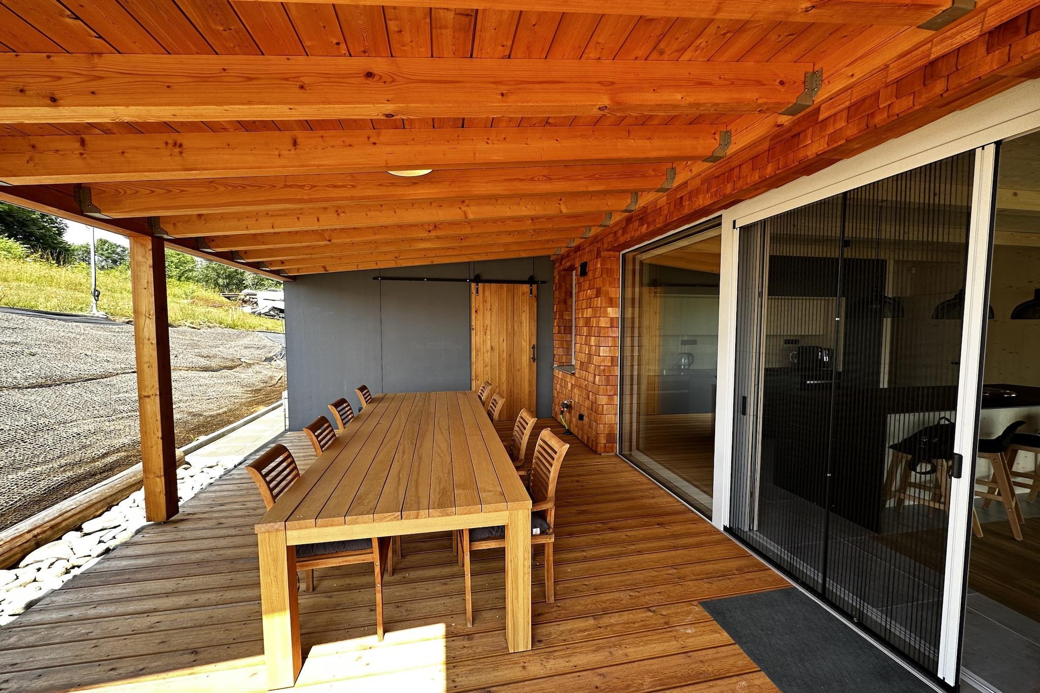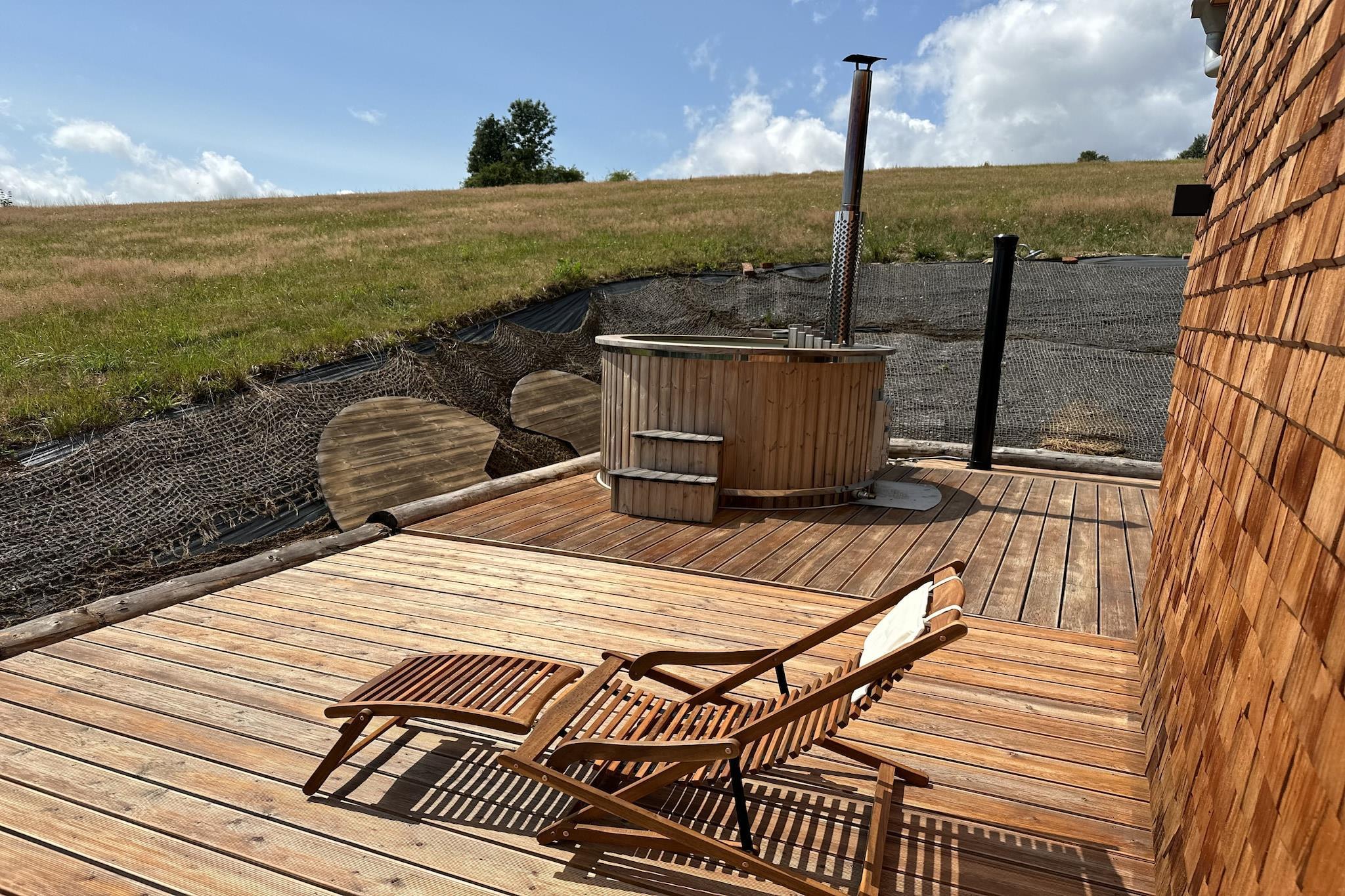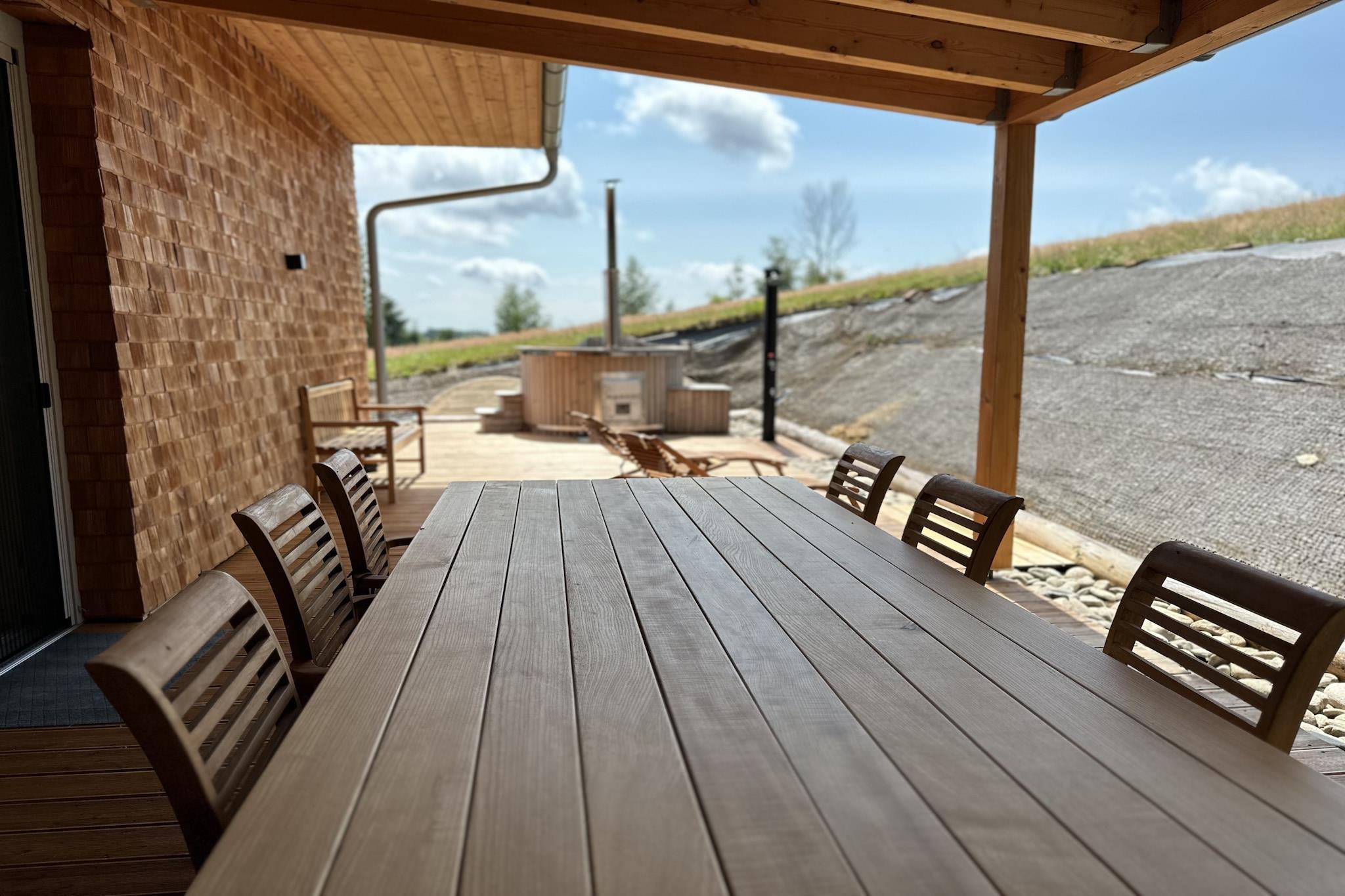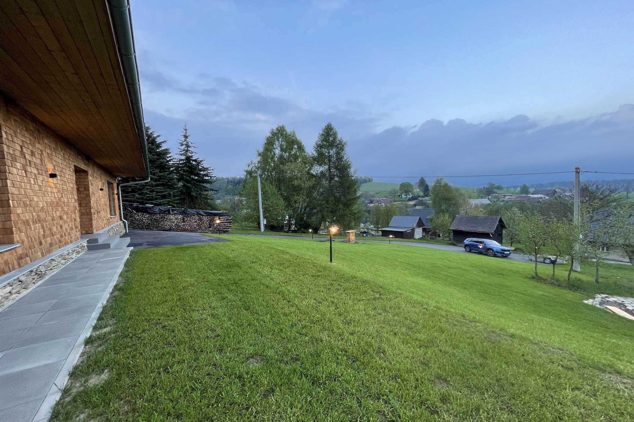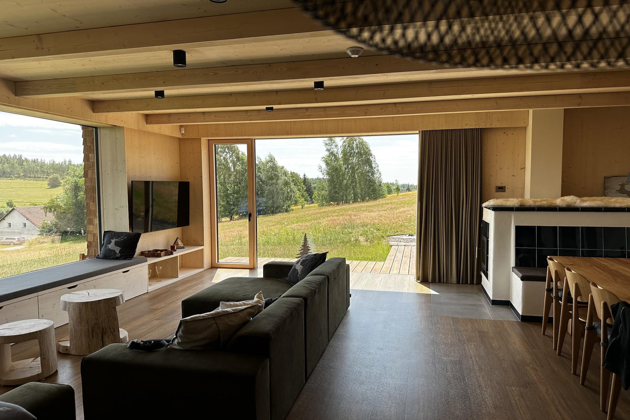 Im charmanten Dorf Roprachtice in der Region Liberec liegt ein wunderschönes Ferienhaus, das Natur und Handwerkskunst verbindet. Jedes Detail des Hauses, von den handgefertigten Möbeln bis zu den Wänden aus Fichtenholzpaneelen, spiegelt die Sorgfalt und Liebe wider, die die Eigentümer in seine Schaffung gesteckt haben. Die Fassade aus handgefertigten Lärchenholzschindeln trägt zur Authentizität und dem natürlichen Gefühl des Hauses bei und schafft eine ruhige Oase. Dieses gemütliche Anwesen bietet Platz für 14 Personen in fünf Schlafzimmern und drei Badezimmern. Das Wohnzimmer verfügt über ein Panoramafenster, durch das Sie die umliegende Naturschönheit genießen können. Jedes Zimmer ist mit einem Fernseher zur Unterhaltung ausgestattet, mit Zugang zu Satellitenkanälen oder Netflix. Die moderne Küche ist voll ausgestattet und ein großer Esstisch macht sie perfekt, um gemeinsam Mahlzeiten zu genießen. Ein kleiner Weinkeller ist ebenfalls vorhanden, perfekt für Weinliebhaber. Die Terrasse ist ein perfekter Ort zum Entspannen, mit bequemen Gartenmöbeln, ideal für den Morgenkaffee oder zum Beobachten des Sonnenuntergangs. Sie können auch unter den Sternen grillen oder am Kamin entspannen, wobei Holz kostenlos zur Verfügung gestellt wird. Für ultimative Entspannung stehen in der Unterkunft eine Sauna und ein Whirlpool zur Verfügung. Die Region Liberec bietet eine Vielzahl von Aktivitäten für jedermann. Golfer können sich auf nahegelegenen Golfplätzen in nur 17 km Entfernung vergnügen, während Geschichtsinteressierte die Traditionen der nahegelegenen Städte wie Jilemnice (10 km), Semily (15 km), Benecko (16 km) und Ponikla (6 km) erkunden können.