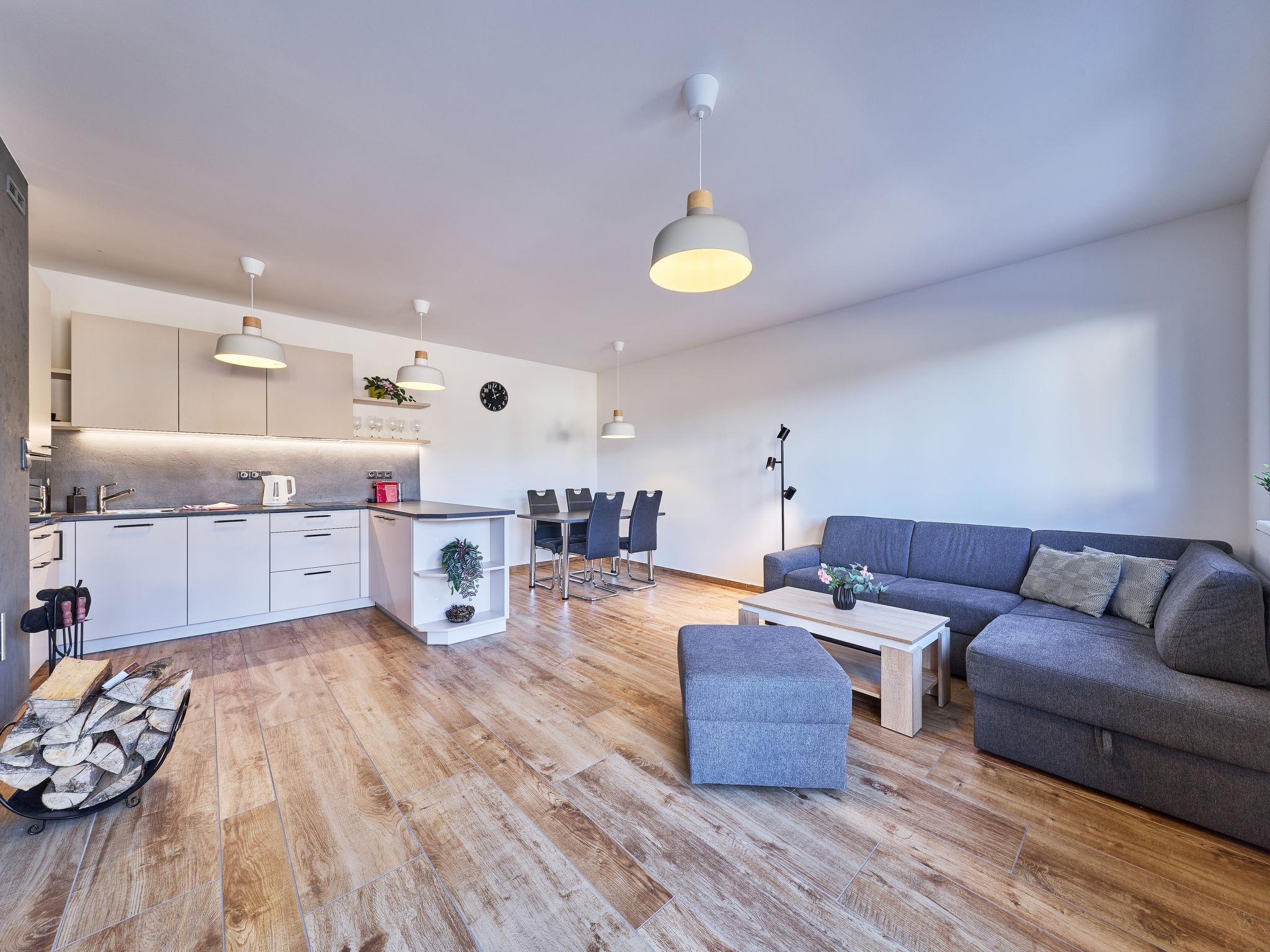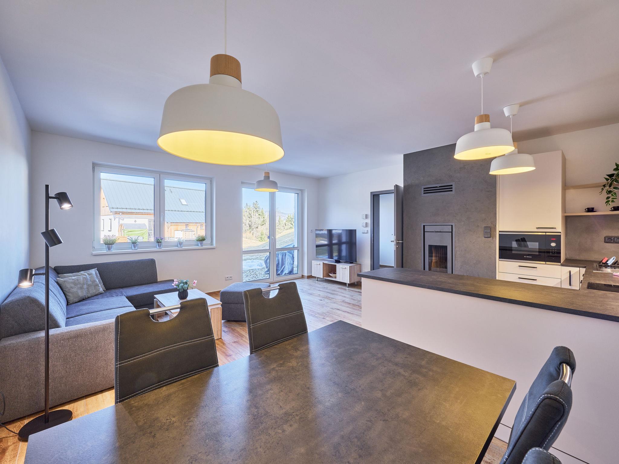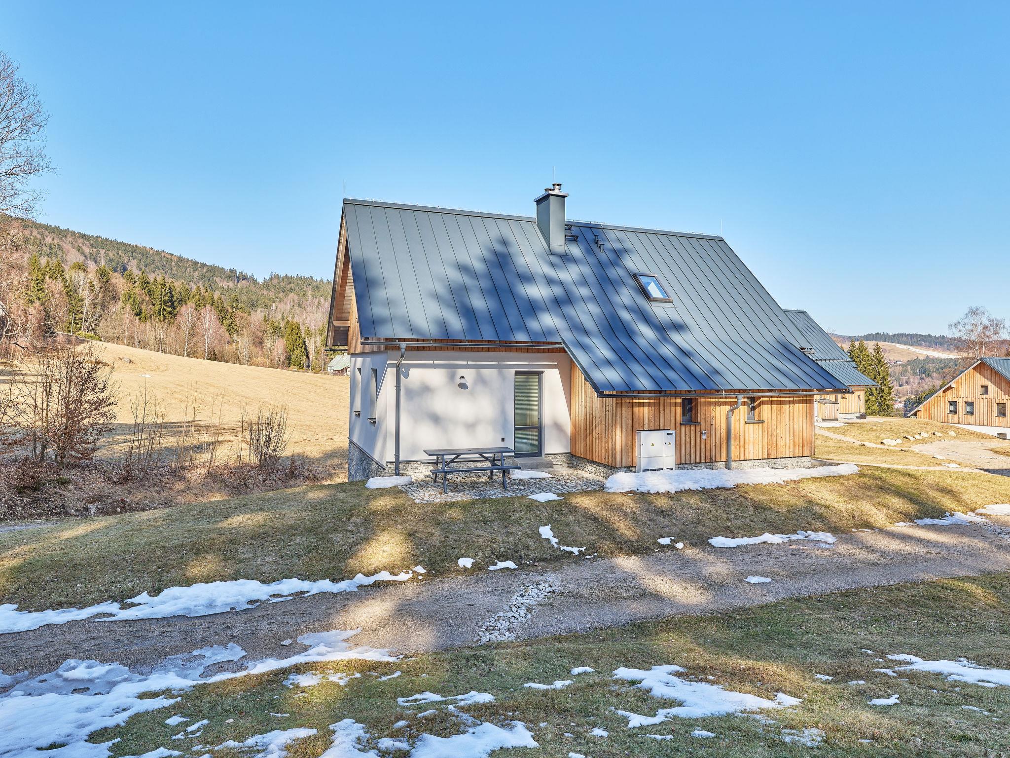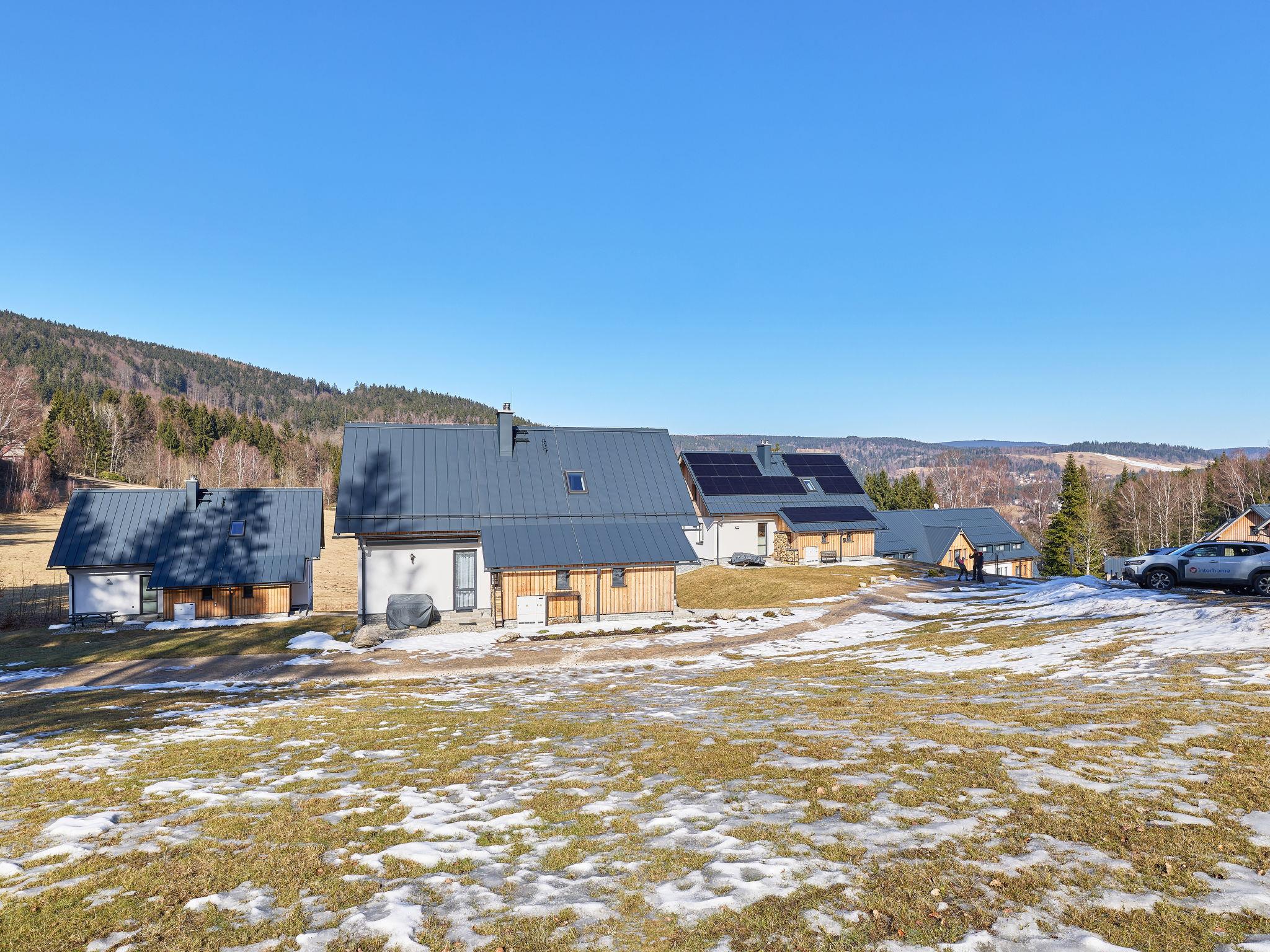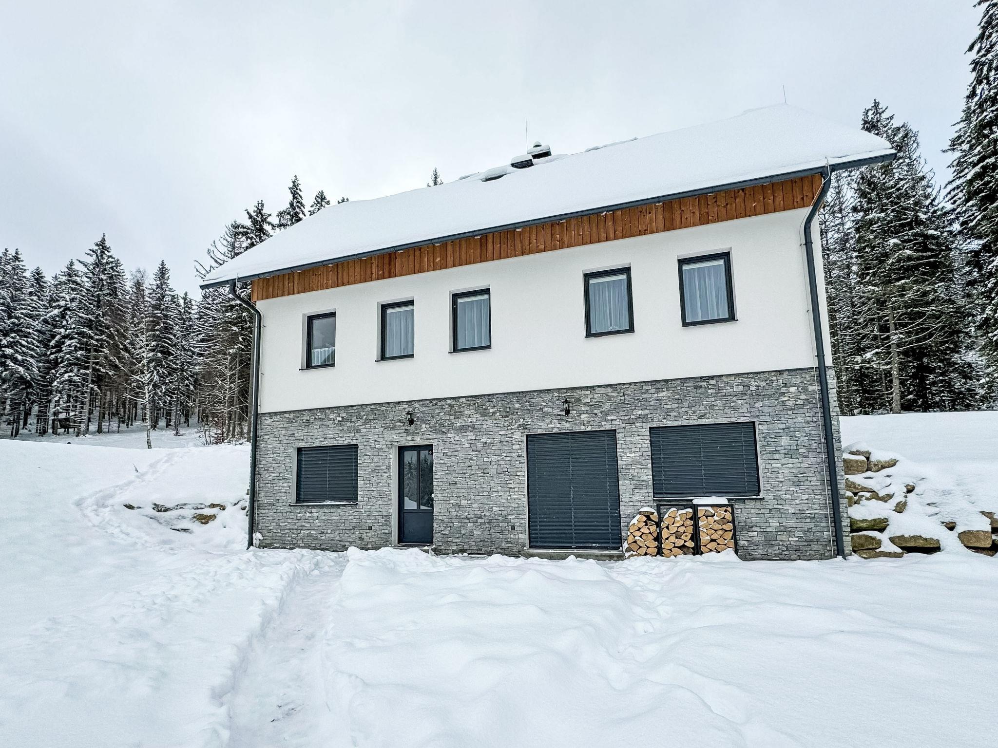 Smržovka: Freistehendes, komfortables Landhaus "U lesa", auf 2 Stockwerken, Baujahr 2023. Ausserhalb des Ortes, direkt am Waldrand, 2 km vom Skigebiet. Zur Mitbenutzung: Naturgarten. Zur Alleinbenutzung: Grundstück. Terrasse. Im Winter bitte Schneeketten mitbringen. Parkplatz (für 2 Autos). Einkaufsgeschäft 2 km, Lebensmittelgeschäft 2.5 km, Supermarkt 6 km, Einkaufszentrum 20 km, Restaurant 2 km, Bushaltestelle "Jiretín pod Bukovou" 1.4 km, Bahnstation "Jiretín pod Bukovou" 1.3 km, Freibad 7 km, Hallenbad 20 km. Golfplatz (9 Loch) 17 km, Wanderwege ab Haus 10 m, Radweg 100 m, Skilift 2 km, Skipisten 2 km, Skiverleih 2 km, Skischule 2 km, Langlaufloipe 100 m, Kinderspielplatz 3 km. Nahe gelegene Sehenswürdigkeiten: Rozhledna Cerná Studnice 6 km, Muzeum obrnené techniky Smržovka 6 km, Vodopády Jedlové 7 km, Kittelovo muzeum v Krásné 12 km, Aquapark Babylon, IQLandia, ZOO Liberec 22 km, Bozkovské jeskyne 22 km. Bekannte Skigebiete sind gut erreichbar: Tanvaldský Špicák 2 km, Filip Smržovka 4 km, Svetlý Vrch Albrechtice 4 km, Josefuv Dul 7 km, Severák, Bedrichov 12 km. Wandergebiete: Hrebenovka.