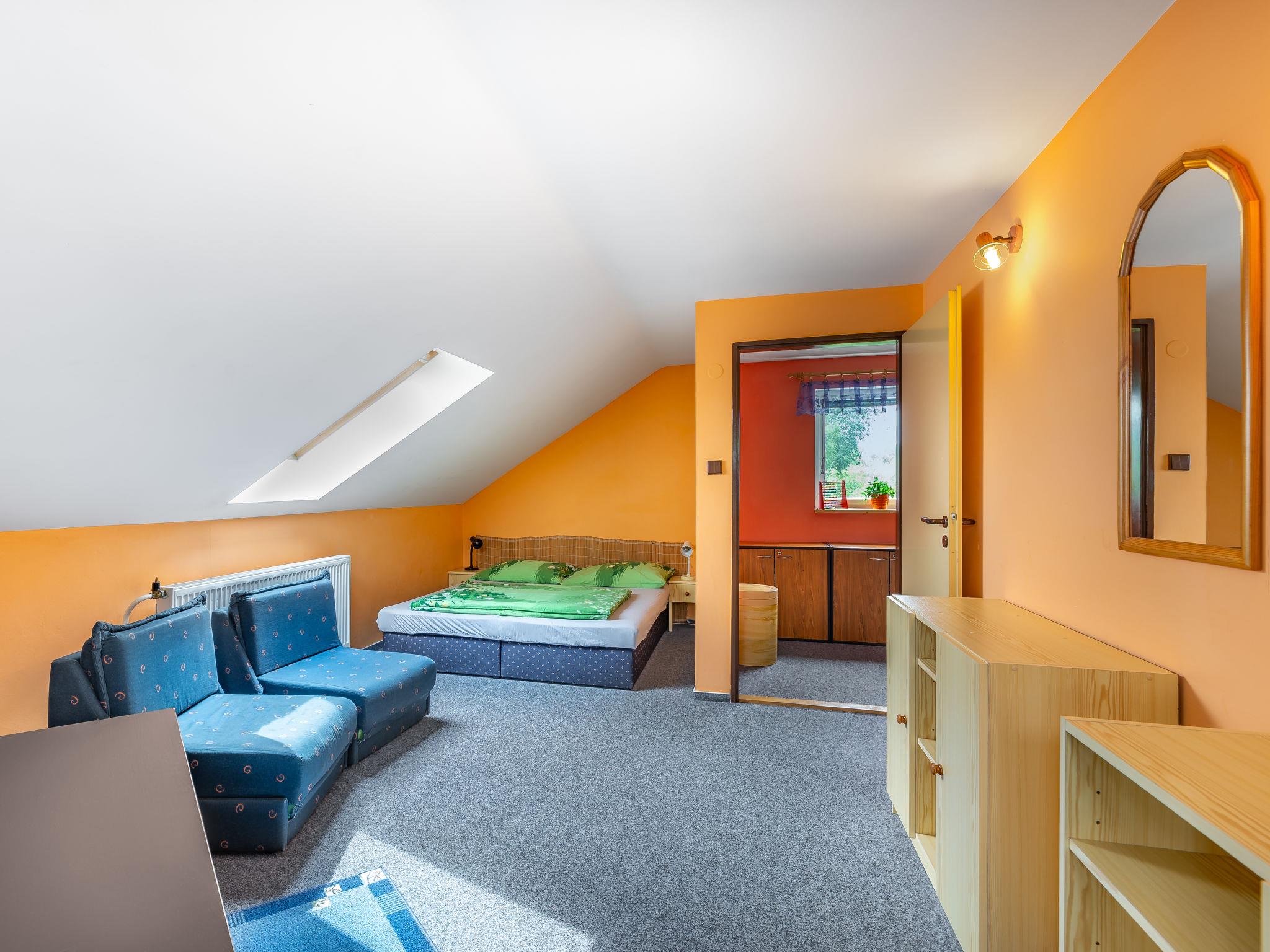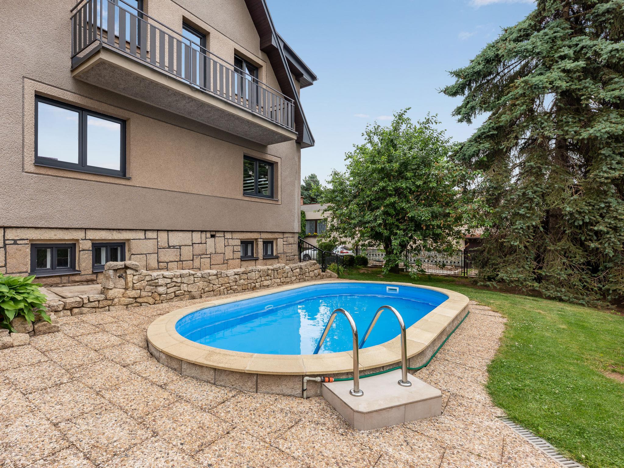 Dieses schöne Ferienhaus, mit Infinity-Pool, befindet sich in dem kleinen Dorf «Tatobity», nur 10 km vom berühmten Ort «Hrubá Skála» entfernt, wo das Schutzgebiet des Böhmischen Paradieses beginnt. Freistehendes, komfortables Haus "Penzion Jindriška", auf 2 Stockwerken, Baujahr 1997. Im Ort, sonnige Lage, in einer Sackgasse, im Grünen. Zur Alleinbenutzung: Grundstück (eingezäunt), Garten 200 m2, Schwimmbad (6 x 3 m, saisonale Verfügbarkeit: 01.Jun. - 31.Aug.). Grill, Kinderspielplatz (Sandkasten), Parkplatz beim Haus. Lebensmittelgeschäft, Restaurant, Bushaltestelle 300 m, Freibad 12 km. Golfplatz (9 Loch) 9 km, Tennis 200 m, Skilift 4 km, Kinderspielplatz 50 m. Nahe gelegene Sehenswürdigkeiten: Hora/Rozhledna Kozákov 6 km, Hrubá Skála/CHKO Ceský ráj 10 km, Semily, Turnov 10 km, Hrad trosky 13 km, Jicín 20 km. Bekannte Skigebiete sind gut erreichbar: Vysoké nad Jizerou 25 km.