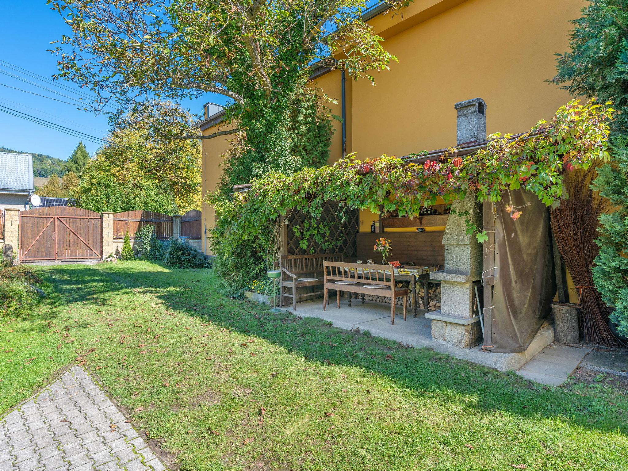 Gemütliches Haus "Tatobity", auf 2 Stockwerken, einseitig angebaut. Im Ort, sonnige Lage, 50 m vom Waldrand, im Grünen. Zur Alleinbenutzung: Garten (eingezäunt). Pergola, Gartenmöbel, Grill, Feuerstelle. Im Hause: Einstellraum für Fahrräder, Skiraum. Parkplatz beim Haus. Lebensmittelgeschäft 200 m, Einkaufszentrum 11 km, Restaurant 50 m, Bushaltestelle "Tatobity U Studnicku" 50 m, Bahnstation "Rovensko p. Troskami" 9 km, Freibad 8 km. Golfplatz (9 Loch) 9 km, Tennis 500 m, Skilift 4 km, Kinderspielplatz 500 m. Nahe gelegene Sehenswürdigkeiten: Rozhledna Kozákov 6 km, Lázne Sedmihorky 8 km, Hrubá Skála/CHKO Ceský ráj 10 km, Semily, Turnov 10 km, Hrad Valdštejn, Zbiroh 11 km, Hrad Trosky 13 km, Prachovské skály 20 km, Hrad Kost 24 km. Bekannte Skigebiete sind gut erreichbar: Kozákov 4 km, Vysoké nad Jizerou 25 km.