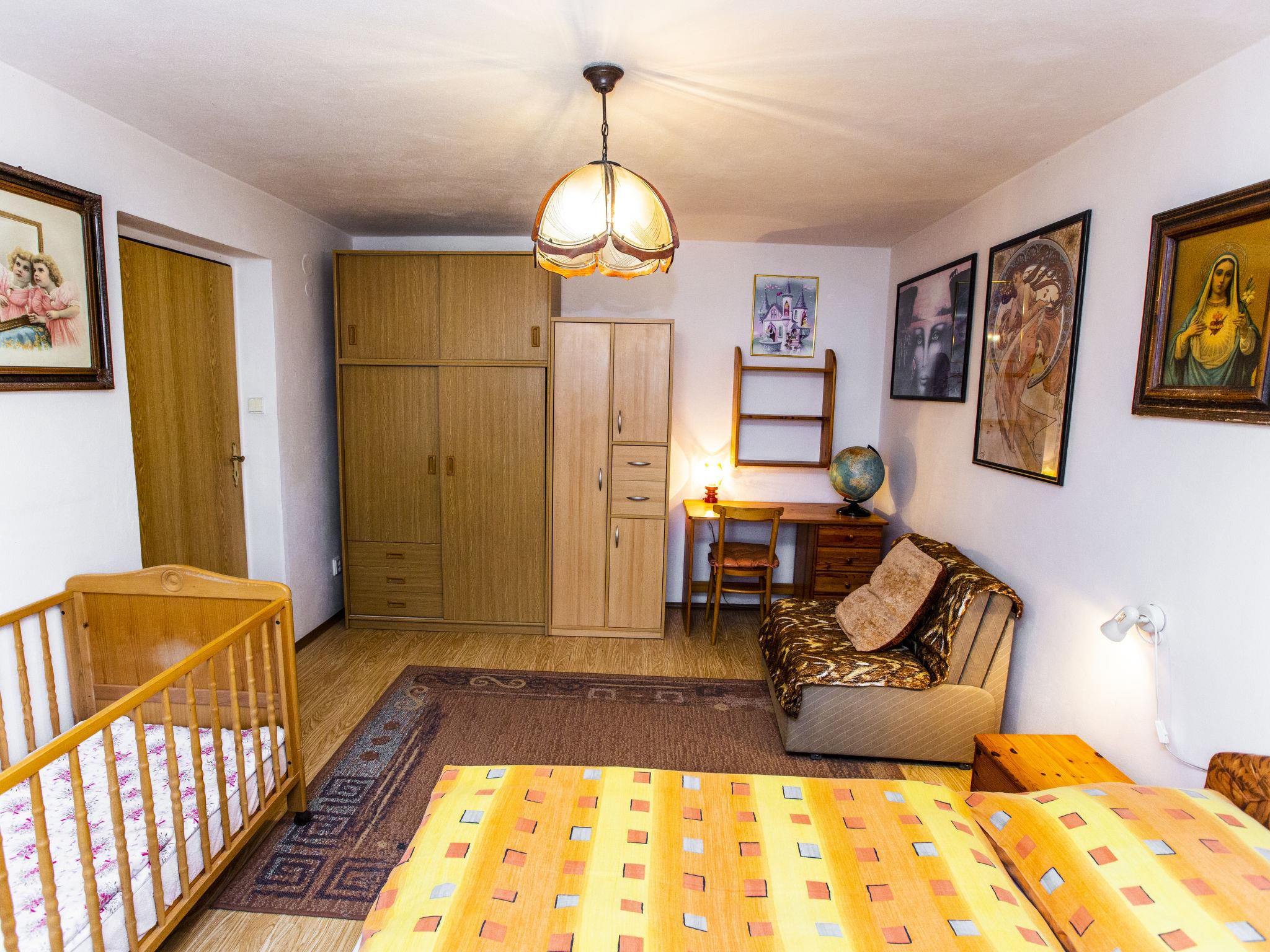 4-Zimmer-Doppelhaushälfte auf 2 Stockwerken. Durchgangszimmer mit 2 Betten. 1 Zimmer mit 2 Betten. Kleine Küche (Backofen, 4 Glaskeramikplatten, Wasserkocher, Mikrowelle, Tiefkühler) mit Küchenblock. Obergeschoss: Wohnzimmer mit Schwedenofen und TV. 1 Zimmer mit 1 Doppelbett. Bad/WC mit Eckbadewanne. E-Heizung, Holzheizung. Terrassenmöbel. Zur Verfügung: Waschmaschine. Internet (Wireless LAN, gratis). Bitte beachten: geeignet für Familien. Eigener Eingang.