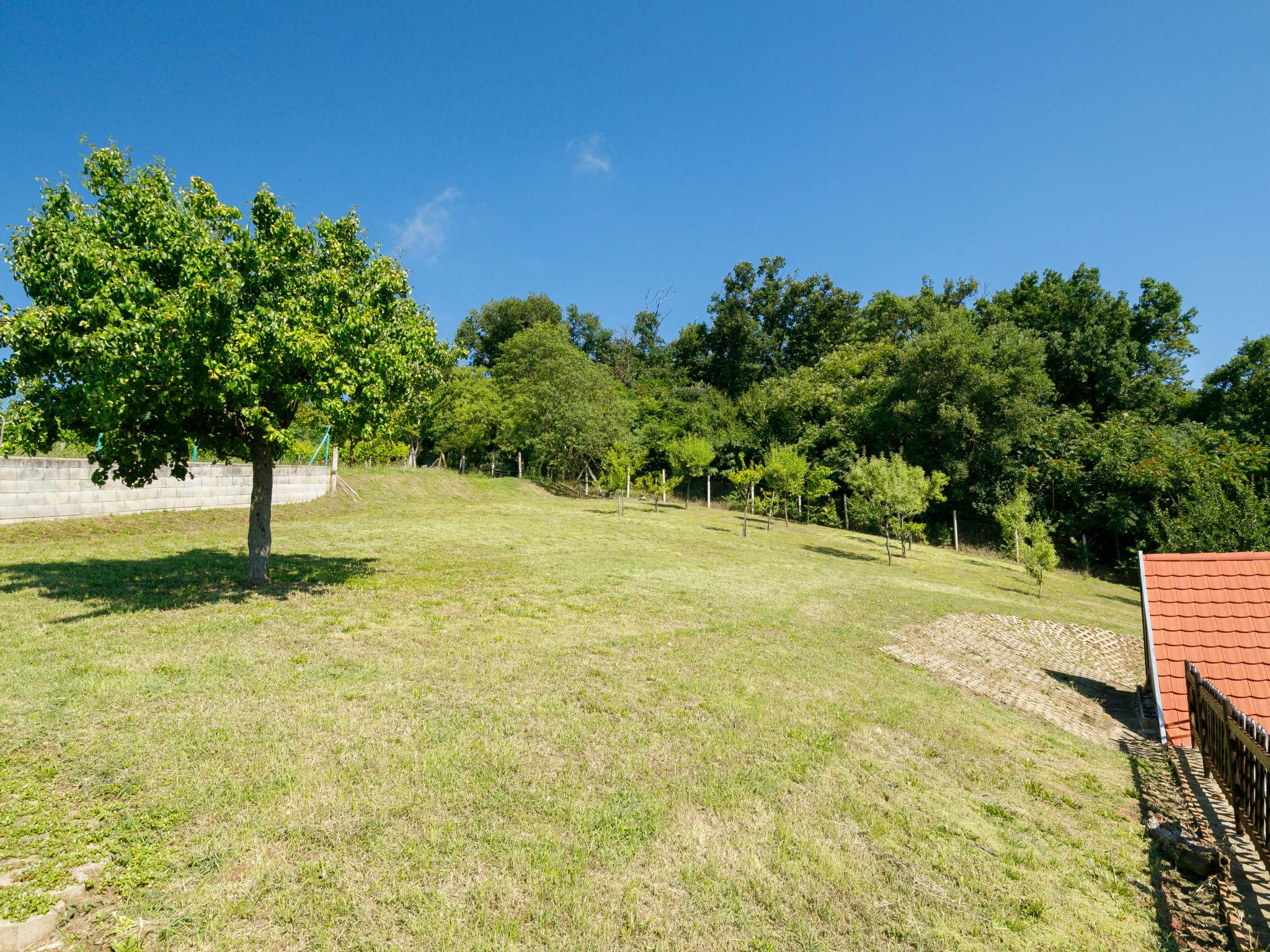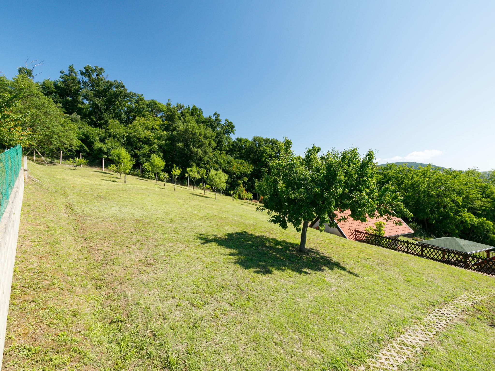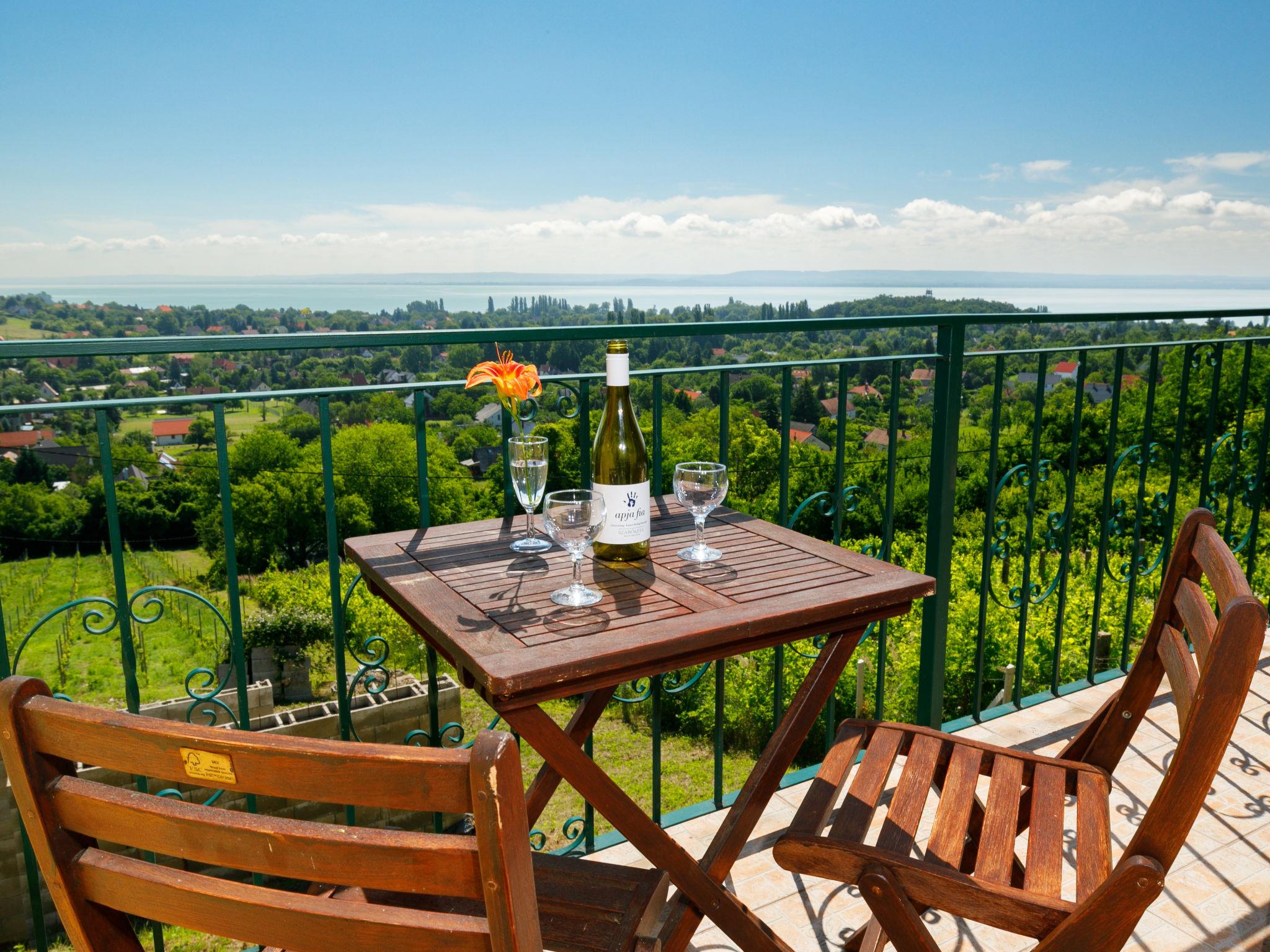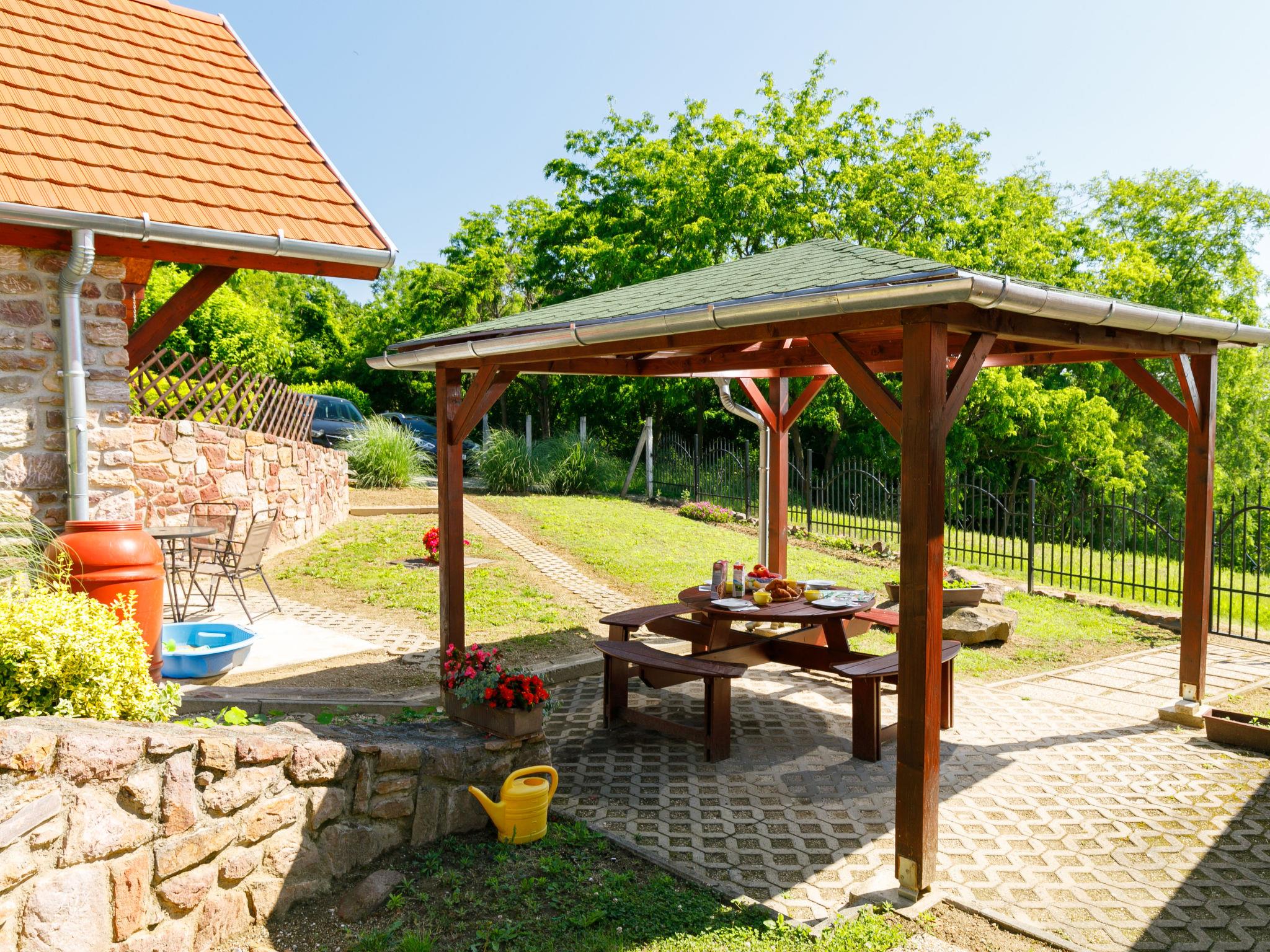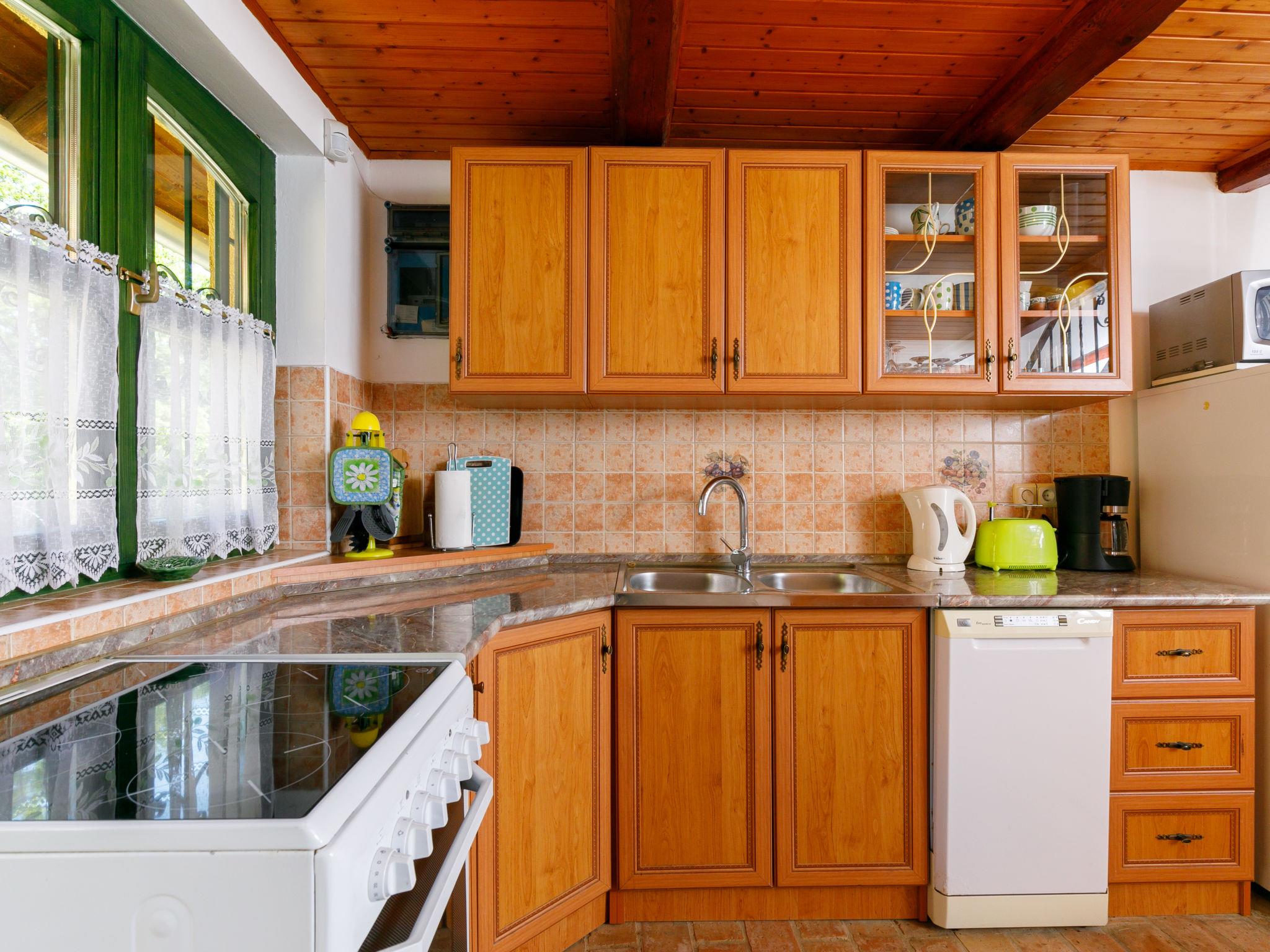 Ábrahámhegy 30 km von Keszthely: Freistehendes Haus "Fokas", umgeben von Bäumen, Wiesen und Weinbergen. 1.6 km vom Zentrum von Abrahamhegy, am Ortsrand, 15 km vom Zentrum von Tapolca, 33 km vom Zentrum von Keszthely, sonnige Lage am Hang, 2 km vom See, 2 km vom Strand. Zur Alleinbenutzung: Grundstück 300 m2 (eingezäunt) mit Bäumen, Wiese. Kinderspielplatz (Rutschbahn, Schaukel). 1 km lange holprige, schmale Zufahrt (200 m Naturweg). Parkplatz (für 2 Autos) auf dem Grundstück. Lebensmittelgeschäft 1.6 km, Supermarkt 13 km, Restaurant 1.6 km, Fahrradverleih 8 km, Grasstrand 2 km, Thermalbad "Hévíz" 39 km. Tennis 2.5 km, Radweg 800 m, Kinderspielplatz 1 km. Nahe gelegene Sehenswürdigkeiten: Festetics Castle 34 km, Tihany 33 km, Balatonfüred Annagora Aquapark 33 km, Tapolca Lake Cave Visitor Centre 14 km, Szigliget Castle 16 km, Festetics Zoo 32 km.