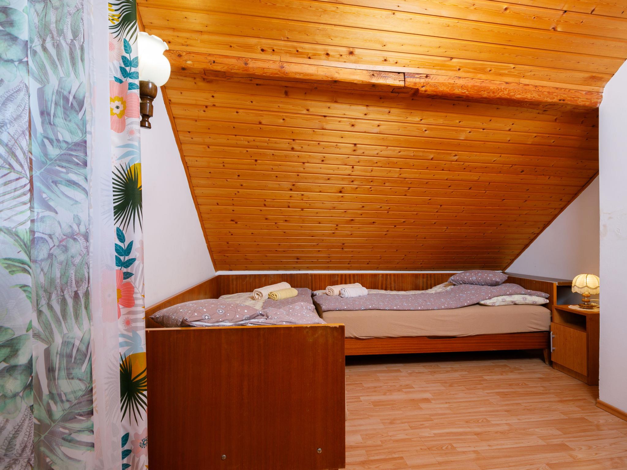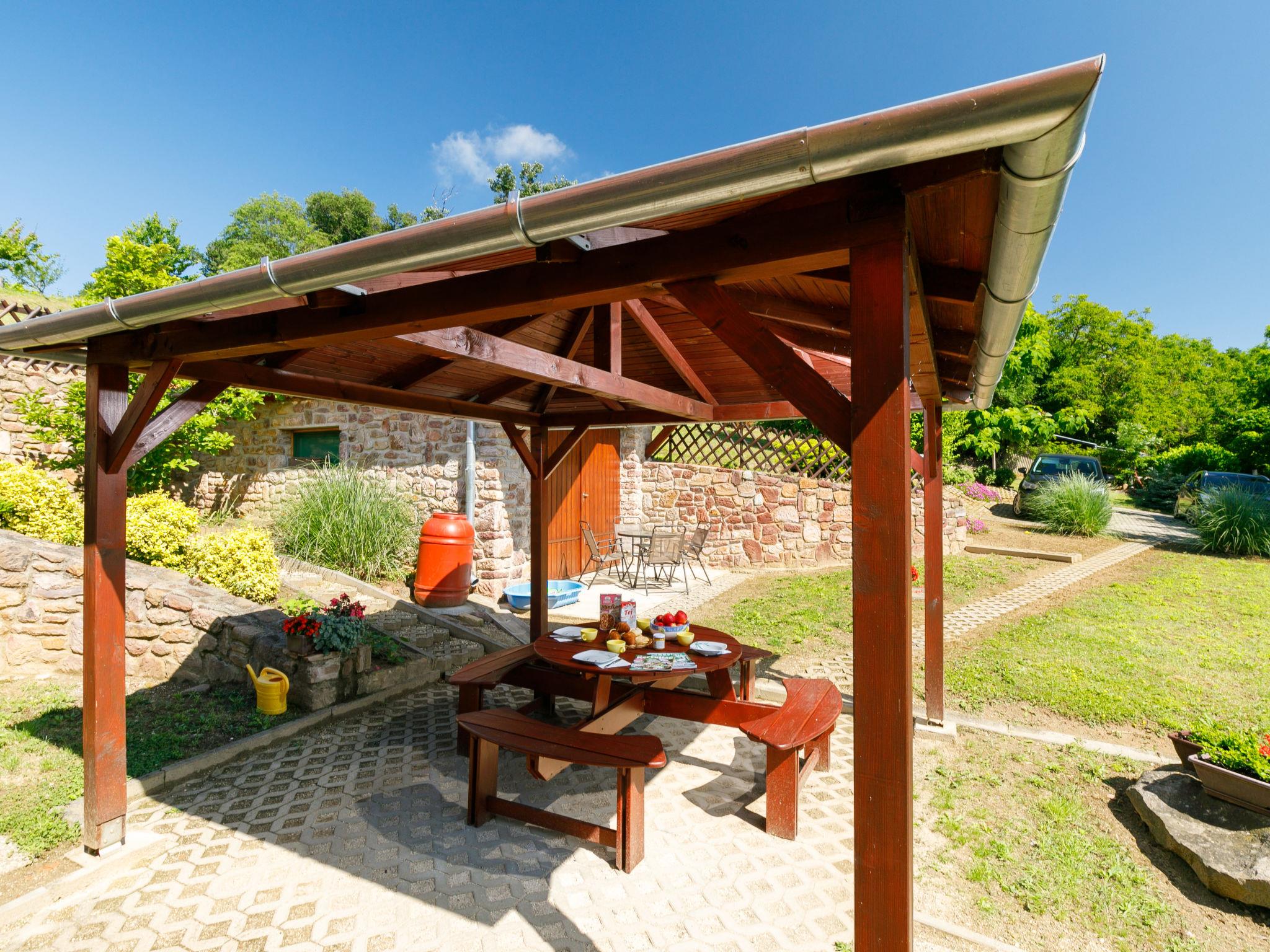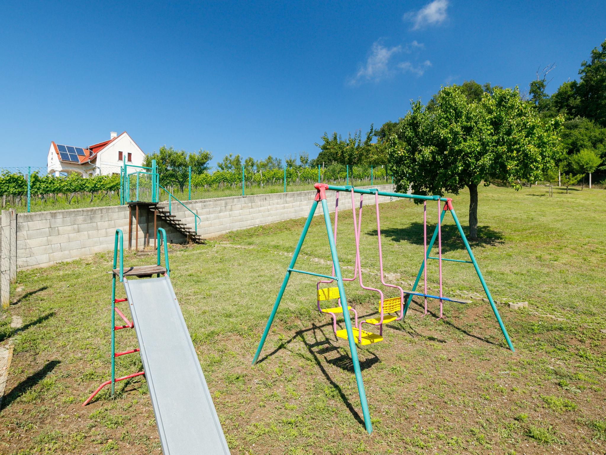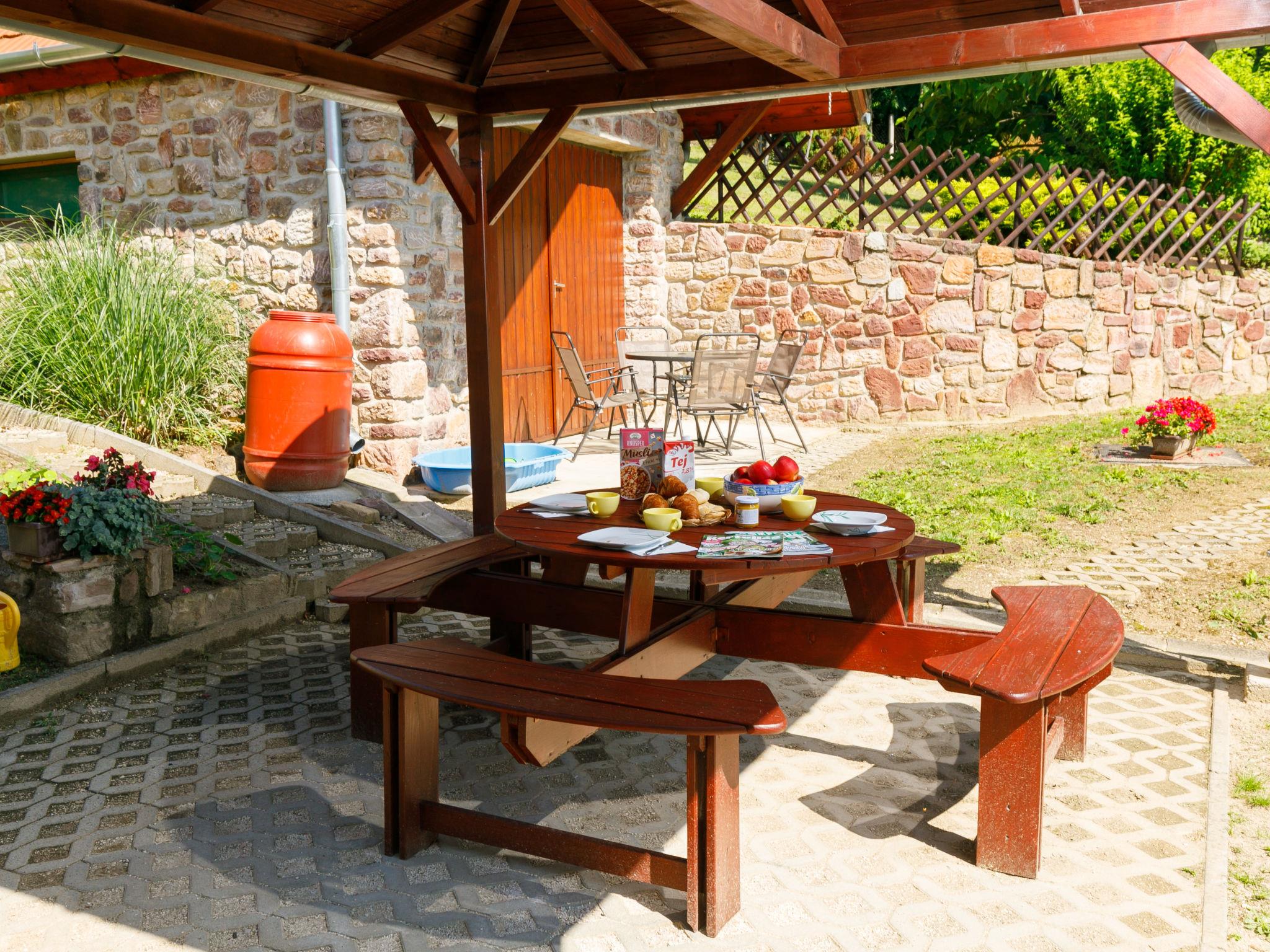 Ábrahámhegy 30 km von Keszthely: Freistehendes Haus "Fokas", umgeben von Bäumen, Wiesen und Weinbergen. 1.6 km vom Zentrum von Abrahamhegy, am Ortsrand, 15 km vom Zentrum von Tapolca, 33 km vom Zentrum von Keszthely, sonnige Lage am Hang, 2 km vom See, 2 km vom Strand. Zur Alleinbenutzung: Grundstück 300 m2 (eingezäunt) mit Bäumen, Wiese. Kinderspielplatz (Rutschbahn, Schaukel). 1 km lange holprige, schmale Zufahrt (200 m Naturweg). Parkplatz (für 2 Autos) auf dem Grundstück. Lebensmittelgeschäft 1.6 km, Supermarkt 13 km, Restaurant 1.6 km, Fahrradverleih 8 km, Grasstrand 2 km, Thermalbad "Hévíz" 39 km. Tennis 2.5 km, Radweg 800 m, Kinderspielplatz 1 km. Nahe gelegene Sehenswürdigkeiten: Festetics Castle 34 km, Tihany 33 km, Balatonfüred Annagora Aquapark 33 km, Tapolca Lake Cave Visitor Centre 14 km, Szigliget Castle 16 km, Festetics Zoo 32 km.